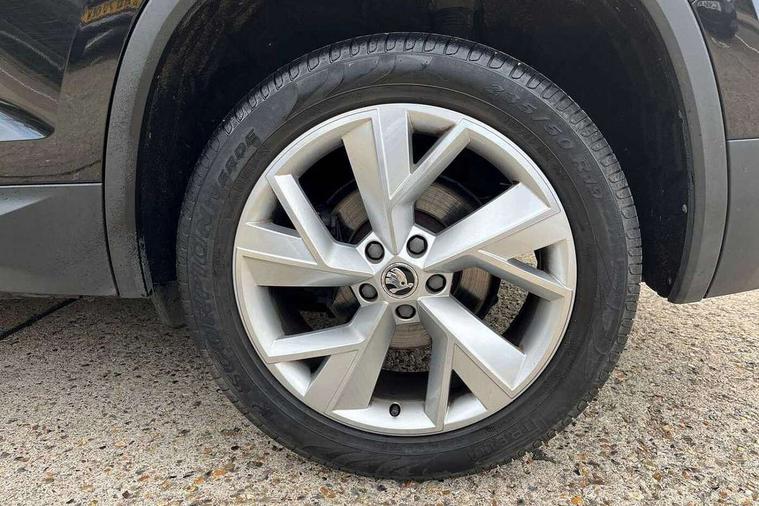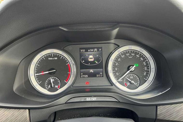 Bluetooth system, E-call, ECO Stop/start function, Exterior temperature indicator, Smartlink wireless for apple carplay and wired for android auto, Speed limiter, Tailgate unlocking from outside, USB C Port x 2 in front centre console, Wireless charging, DAB Digital radio, Aero front windscreen wipers with intermittent function, Aero rear window wiper, Auto dimming rear view mirror, Black wheel arch surrounds, Body colour bumpers, Body colour door mirrors and handles, Chrome front grille, Chrome roof rails with chrome window surround, Electric front and rear windows, Extended rear spoiler with finlets in gloss black, Front fog lights, Full LED matrix headlights with AFS (adaptive front light system), cornering function and AWL (all weather lighting system), Headlight washers, Heated rear window, Invisible tailpipe, LED daytime running lights, LED rear fog light, LED third brake light in rear spoiler, Light assistant (coming/leaving home/tunnel light), Off-road style lower front bumper element, Privacy glass, Rain and light sensors, Rear LED lights (high functionality) with welcome effect and dynamic indicators, Safety reflectors on front and rear doors, Window control switches with black trim, 12V socket in boot, 2 rails with 2 hooks, 4 foldable roof handles with rear coat hooks, 60:40 foldable rear seat with sliding adjustment and backrest angle adjustment, Bottle holders in door panel in the 1.5 litre front and 1 litre rear, Cargo storage compartments, Chrome headlight control button, Chrome interior door handles, Coat hooks on B pillar, Covered storage compartment on driver side, Decorative door sills in the front and rear, Front centre armrest with storage compartment, cup holder and 12V socket, Front courtesy lights, Gear shift lever with chrome frame and black gloss insert, Grey stitching in front and rear armrests and door armrests + door inserts, Height adjustable front headrests, Illuminated and cooled glovebox, Illuminated luggage compartment, Isofix child seat fittings in outer rear seats with top tether, Manually adjustable steering column, Net programme in boot (1x horizontal Net, 2x vertical Nets), Overhead glasses storage compartment, Pollen filter, Rear centre armrest with cupholders, Sliding trunk cover, Small Bags on the inner sides of the front backrests, Sunvisors with illuminated vanity mirrors, Three rear height adjustable headrests, Ticket holder on A Pillar, Umbrella in door panel, Variable boot floor, Auto door release and activation of warning lights in the event of an accident, Driver and front passenger airbag with knee airbag and front passenger airbag deactivation, Electronic parking brake with hill start assist, Emergency rear braking signal, ESC (incl. ABS+MSR+ASR+EDS+HBA+DSR+RBS+MKB), Front assist with autonomous emergency braking, Front side airbags with curtain airbags, Fuel cut off safety device, Height adjustable front 3 point seatbelts + pretensioners, Hill hold control, Rear disc brakes, Safety vest holder in door, Seat belt reminder for all seats, Three point rear seat belts, Two tone horn, Tyre pressure monitor, Alarm with interior monitoring and tilt sensor with safe function, Anti-theft wheel bolts, Immobiliser, Keyless entry and start system (KESSY), Remote central locking with 2 keys, Grey stitching in dashboard, Linear diamonds decorative inserts, Temporary spare wheel (space saver),