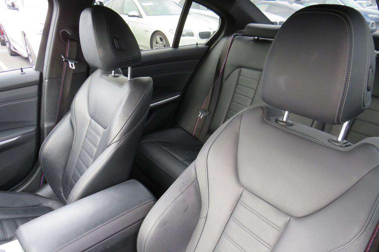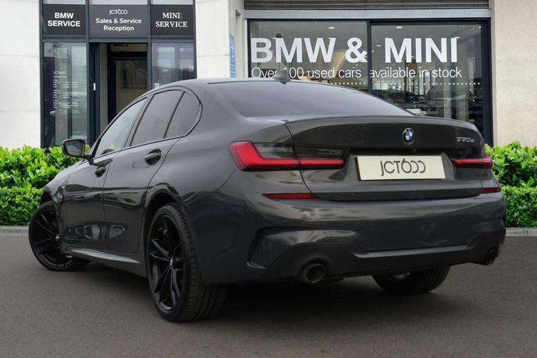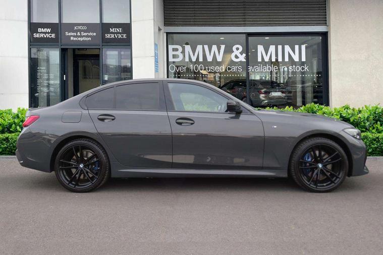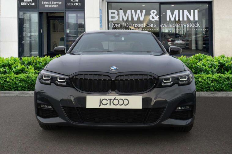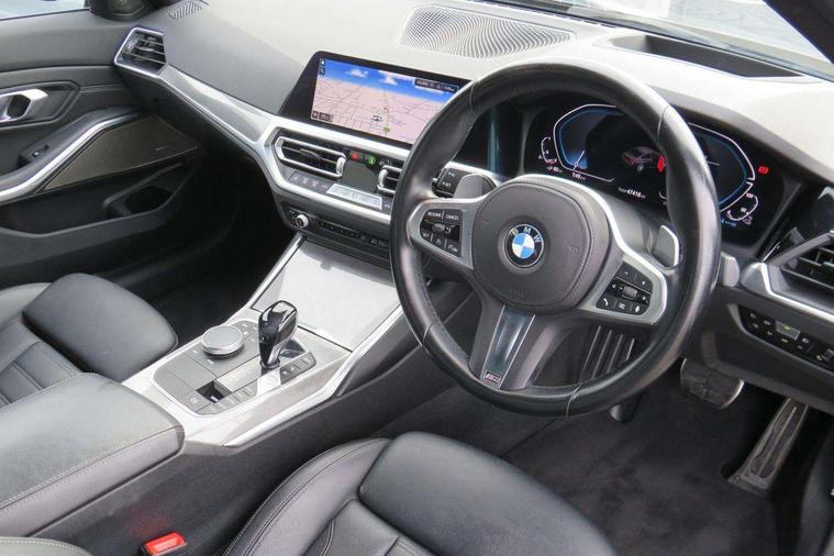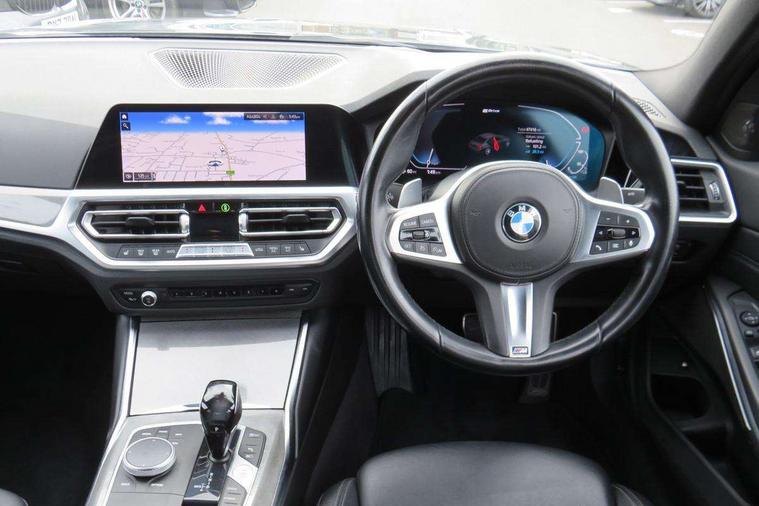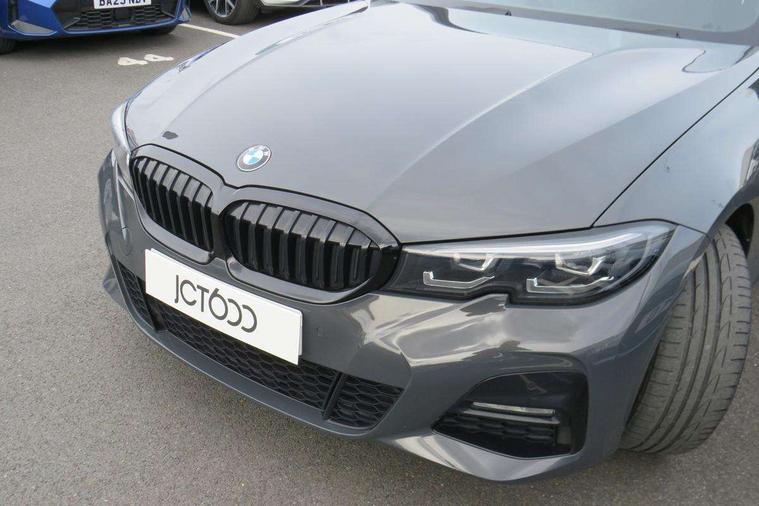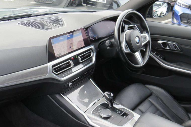 Active guard plus, Attentiveness assist, Auto start-stop, BMW iDrive controller on centre console, BMW Live Cockpit Professional Nav with 12.3" instrument display + 10.25" display, Intelligent Voice Assist, BMW OS 7, HDD, 2USB, 4G LTE connect, BMW service history, BMW Teleservices, Brake pad wear indicator in front and rear, Check Control warning system for monitoring of lights and door/luggage compartment open warning, Condition based service, Electric power steering with Servotronic steering optimised at all speed ranges, Instrument cluster with speedometer with mph readout, tachometer, fuel gauge and oil temperature gauge, Integrated owners handbook, Oil sensor for level and grade, warning by check control system, On board computer - average speed+fuel consumption, service interval, clock/date, odometer/trip meter, outside temperature display and ice warning, Optimum shift indicator, Personal Profile - automatic lock when driving away selectable, Variable sport steering, Adaptive M suspension, Balanced 50/50 weight distribution, Battery cut-out switch, Drive performance control - ECO PRO, comfort and sport modes, Petrol Particulate Filter, Stroke dependent dampers, DAB tuner, Electronic service booklet, Acoustic glazing, Active airstream chrome frame kidney grille with 8 high gloss black vertical slats, Automatic headlight beam throw control with load dependent regulating reaction, dynamic compensation of braking dive and acceleration squat, Black mirror caps, Black roof mouldings, BMW Individual high gloss shadow line with extended contents, BMW individual lights shadow line, BMW Unique paint, Body colour door handles, Body colour front and rear bumpers, Body colour fuel filler flap, Dynamic brake lights, Electric windows - front and rear, with open/close fingertip control, anti-trap facility and comfort closing, Exhaust tailpipe - split left and right, Exterior mirrors - electrically folding with anti-dazzle, Fading support, Front and rear bumper system with replaceable deformation elements, Front black door sill finishers with BMW designation, Green tinted heat protection glazing, High gloss shadow line exterior trim, Interior rear view electrochromatic mirror with automatic anti dazzle function, LED daytime running lights, LED front fog lights, Lightweight engineering, M designation on front side panels, left and right, M Sport spoiler, Matt black exterior B pillar, Model designation on right side of tailgate, Rain sensor with automatic headlight activation, Shark fin antenna, Sun protection glass, Two part LED tailights in L-shape with components in smoked glass, brake light, LED turn indicator and rear fog light, Visible VIN plate, Welcome lights in interior and door handle area, Windscreen wipers with integrated washing jets, 12V power socket in front storage compartment, 2 front cupholder in centre console with clamping elements and matt black inlay, 3 rear seats with non folding headrests with 3 point seat belts, 3 zone automatic air conditioning, 4 pieces lashing eyelets in luggage compartment, 40:20:40 split folding rear seat with loading system, Ambient lighting with welcome carpet light, Anthracite headlining, Armrest integrated in front and rear door trim + front centre console armrest, Centred top Luggage compartment lights, Four grab handles integrated in roof lining, Front and rear door exit lighting (left / right), Front and rear door pockets, Front and rear reading lights, Front and rear velour floor mats, Front head restraints, Front sport seats, Heated driver and front passenger seats, Height adjustable mechanically and infinitely variable steering column, Illuminated armrest storage compartment, Illuminated glove compartment with separate small compartment, Interior lighting - front centre over interior mirror with soft light, rear centre and front and rear footwell lighting, M sport leather steering wheel, Make-up mirror lights, Rear centre armrest with 2 cupholders, Rear centre console with storage compartment and ventilation grille, Sunvisors with vanity mirrors and ticket pocket, Toolkit located in luggage compartment, Connected pack professional - 3 Series Saloon/Touring, M sport exterior styling pack - 3 Series Saloon/Touring, 2 tone horn, BMW emergency call, Brake energy regeneration, Braking pre-tensioning, Child proof locking system in rear door, Child seat ISOFIX attachment rear outer seats, Coasting in idle in ECO PRO mode, Crash sensor activating of airbags, Unlocking doors, hazard warning lights, fuel cut off, interior lighting+activation of safety battery terminal clamp, Driver and front passenger side airbags, integrated in the door side seat backrest bolsters for all seat variants, Driver/Front Passenger airbags, Dry braking, Dynamic brake control, Dynamic stability control + (DSC+) - Anti-lock Braking System (ABS) with brake assist and cornering brake control + Automatic Stability Control (ASC), Dynamic Traction Control - DTC, Electric parking brake including automatic hold function and automatic release of the parking brake when driving off, Electronic differential lock control (EDLC), Front passenger manual airbag deactivation, Head airbags for all 4 outer seats, Hill start assist, M sport seatbelt, Seat belt security check for driver and front passenger, Side impact protection, Three 3 point seat belts on all seats including front belt stopper, pyrotechnic belt tensioners and belt force limiters, Tyre pressure monitoring with three level warning strategy, Ventilated front and rear disc brakes, Warning triangle and first aid kit, Alarm system (Thatcham 1) with remote control and electronic engine immobiliser, Central locking switch for all doors, fuel filler cap and luggage compartment, Remote control with integrated key one button open/close vehicle and windows, sole opening of the luggage compartment lid and panic mode, Start/stop button with Comfort Go keyless engine start and auto Start/stop deactivation button, Vehicle key with M specific 