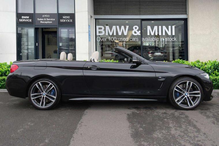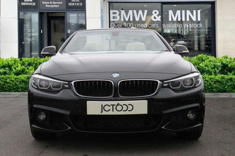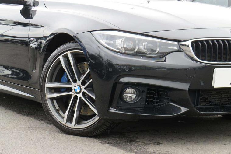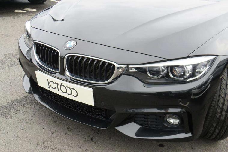 BMW Online services, BMW remote services, BMW Teleservices, Brake pad wear indicator warning light, Check control system, Door/boot open warning, Front/rear Parking distance control, iDrive controller and display with 6.5" monitor, Lights on warning, Oil temperature gauge, On board computer, Outside temperature display, Real time traffic information, Run flat indicator, Service interval indicator, Stop/start button, Diesel particulate filter, Drive Performance Control, Electronic differential lock, Sports function on gearbox with steering wheel mounted gearshift paddles, Bluetooth audio streaming, BMW professional radio/CD/MP3, DAB Digital radio, 2 speed adjustable intermittent wipers with wash/wipe function, Auto dimming rear view mirror, Body colour bumpers, Body colour door handles, Body colour door mirrors, Body colour roof mouldings, Chrome kidney grille with black vertical slats, Door sill finishers, Dual chrome exhaust, Electric adjustable heated door mirrors, Electric front windows/one touch facility, Follow me home headlights, Heat insulating tinted glass, Heated windscreen washer jets, High gloss shadow line, LED daytime running lights, LED front fog lights, M aerodynamic bodystyling, Rain sensor including auto headlights activation, Welcome lighting, Windscreen with grey shadeband, 12V sockets in front centre console and passenger footwell, 3 spoke leather M sport multifunction sports steering wheel, Anthracite Velour floor mats, Dual zone climate control, Folding front centre armrest with storage compartment, Folding storage compartment with glasses holder + coin tray, Front cupholders x 2, Front door storage with bottle holder, Front head restraints, Front sports seats with electric side bolster adjustment, Front/rear armrests within door panels, Glovebox with lid, Heated front seats, Integrated rear head restraints, ISOFIX child seat preparation+airbag deactivation, Lashing eyelets in boot, Leather handbrake grip, Reach + rake adjustable steering column, Rear centre armrest, Storage compartment behind rear seat, Storage compartment in centre rear seat base, Storage compartment in rear centre console, Toolkit located in luggage compartment, Extended lights package - 4 Series, 3 point seatbelts on all seats, ABS/EBD, Automatic Stability Control (ASC), BMW emergency call, Brake energy regeneration, Cornering brake control (CBC), Crash Sensor - activates hazard/interior lighting + unlocks doors, Driver seatbelt warning indicator, Driver/Front Passenger airbags, DSC+, Dynamic brake control, Dynamic Traction Control - DTC, Front passenger airbag deactivation, Front seatbelt force limiters, Front seatbelt pretensioner, Front side airbags, Hill start assist, Roll over protection, Side impact protection, Tyre pressure monitor, Warning triangle and first aid kit, Central locking including fuel filler and boot, Drive away door locking, Electronic immobiliser, Remote control Thatcham category 1 alarm,