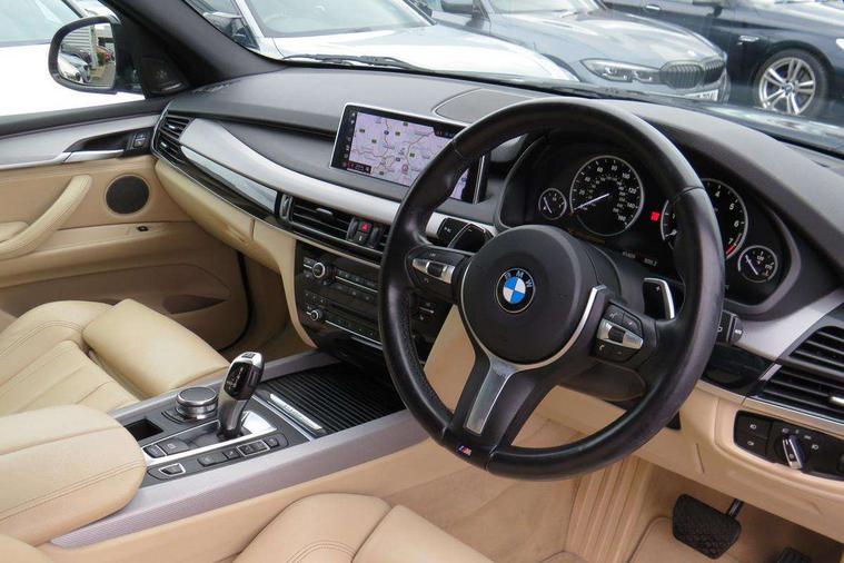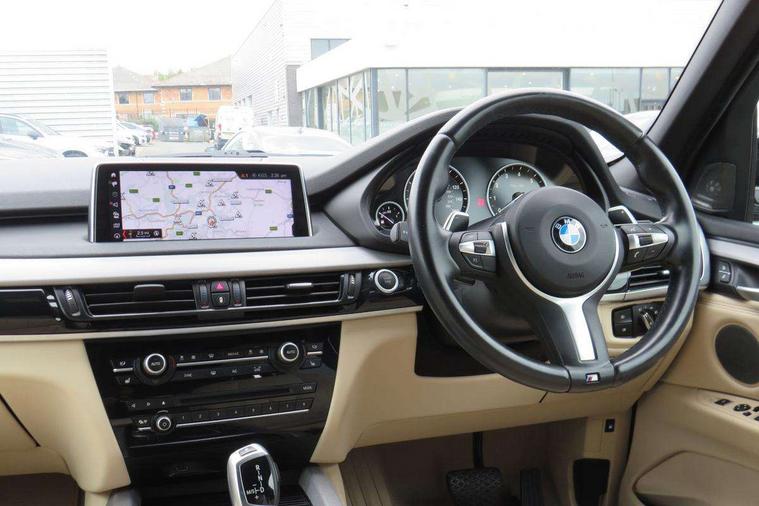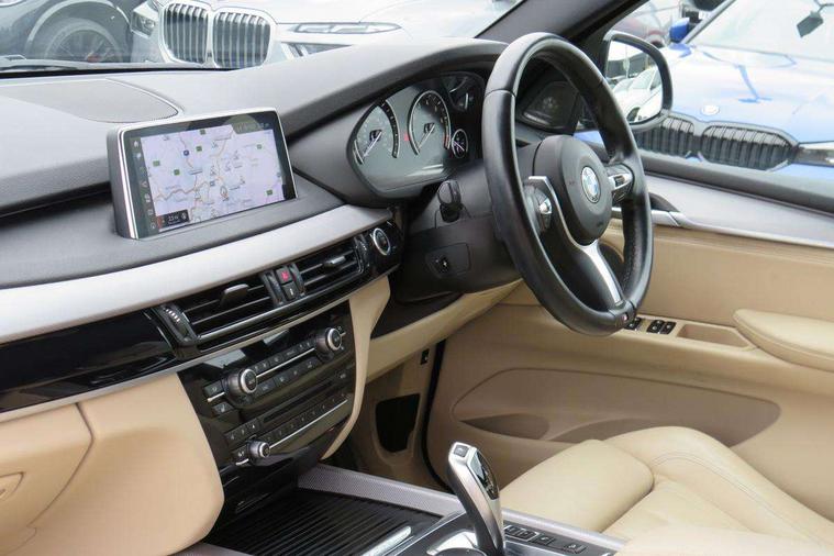 20GB Hard drive, 6.5" colour display screen, BMW online + Apps interface, BMW Teleservices, Brake force display, Check control system, eDrive Services, iDrive controller and display with 10.2" colour display monitor, Lights on warning, On board computer, Outside temperature gauge, Park distance control, Professional multimedia navigation system, Real time traffic information, Remote tailgate release, Service interval indicator, Servotronic PAS, Stop/start button, Voice control system, Adaptive M suspension, Auxiliary point for auxiliary devices, BMW professional twin tuner radio with single CD player and MP3 CD playback facility, DAB Digital radio, Auto dimming rear view mirror, Auto upper tailgate release, Body colour bumpers, Body colour door handles, Body colour door mirrors, Clear indicator lenses, Door mirror integrated indicators, Double kidney grille with chrome surround and black slats, Downlights in exterior door handles, Electric folding/heated door mirrors + electrochromic on drivers side, Electric front/rear windows with anti-trap, Electric headlight adjustment, Follow me home headlights, Green tinted glass, Headlight washer jets, Heat insulated glass, Heated washer nozzles, Individual door sill finishers, Intermittent rear wash/wipe, M aerodynamic body kit, Rain sensor with auto light activation system, Two piece tailgate, 12V accessory power point in centre console, 12V socket in luggage compartment, 2 x 12V socket in rear centre console, 40:20:40 split folding rear seats, Ambient interior lighting, Anthracite Velour floor mats, Boot lashing points, Electric front seats + driver memory, Front and rear cupholders, Front armrest with storage bin, Front/rear courtesy lights with soft on/off dimming, Front/rear reading lights, Gearshift paddles on steering wheel, Heated front seats, Height adj rear head restraints, Illuminated glovebox with lock, Isofix child seat preparation, LED footwell lights, Luggage compartment cover, M leather steering wheel, Reach + rake adjustable steering column, Securing rings in luggage compartment, Storage bins on all doors, Sunvisors with illuminated vanity mirrors, Tilt/height adjustable front head restraints, Toolkit located in luggage compartment, Extended storage pack - X5, 3 rear 3 point seatbelts, ABS, ADB - Automatic Differential Brake, Automatic Stability Control (ASC), BMW emergency call, Child locks on rear doors, Cornering brake control (CBC), Crash Sensor - activates hazard/interior lighting + unlocks doors, Driver/Front Passenger airbags, DSC - Dynamic Stability Control, Dynamic brake control, Dynamic Traction Control - DTC, Electronic brake force distribution, Electronic parking brake, Front and rear head airbags, Front passenger airbag deactivation, Front passenger seat occupancy sensor, Front side airbags, Height adjustable front seatbelts, Hill start assist, Pyrotechnically pre-tensioned front seatbelts, Tyre pressure monitor, Warning triangle and first aid kit, Locking wheel nuts, Remote central locking, Thatcham cat 1 remote alarm/immobiliser, Run flat tyres,