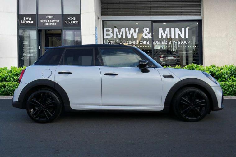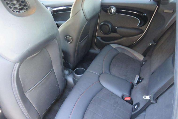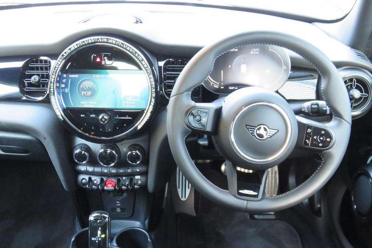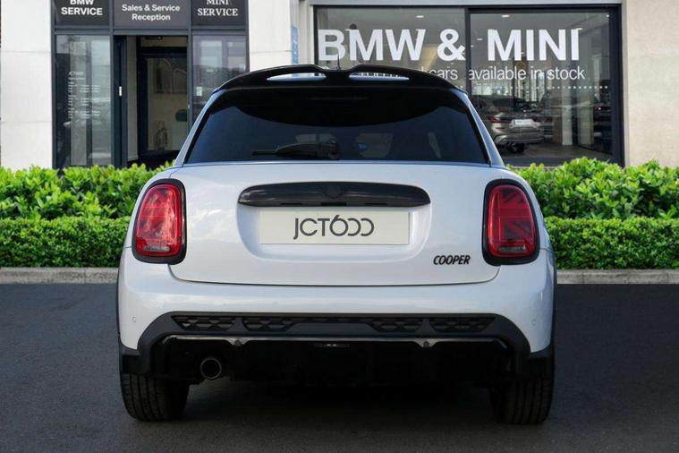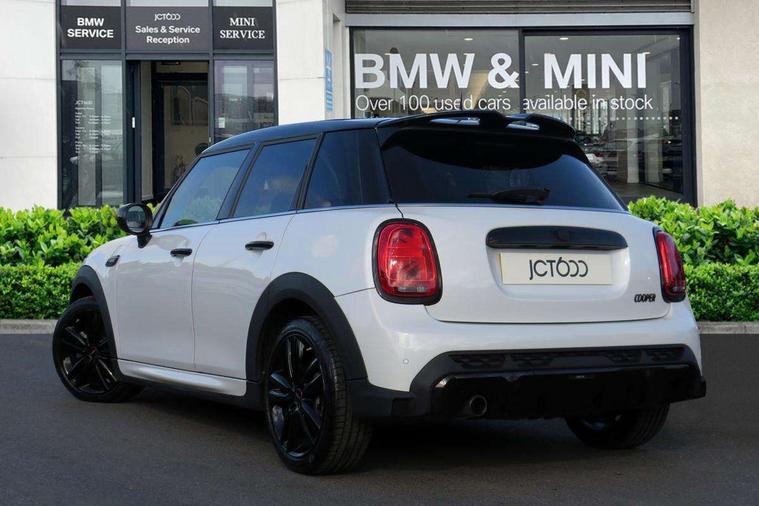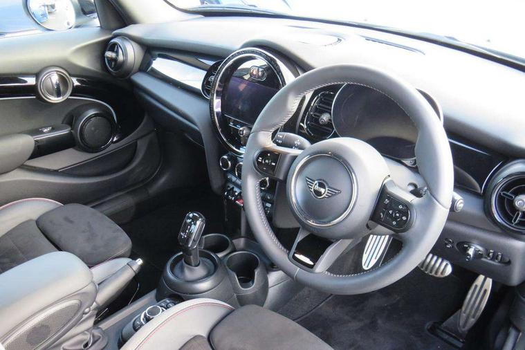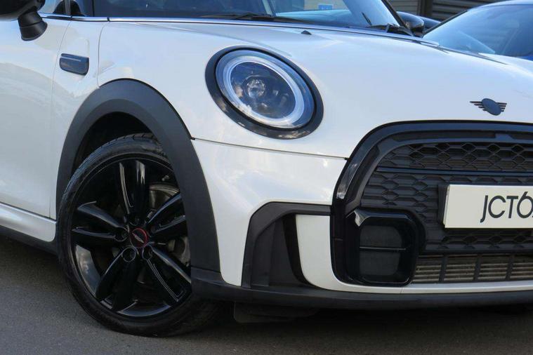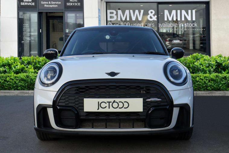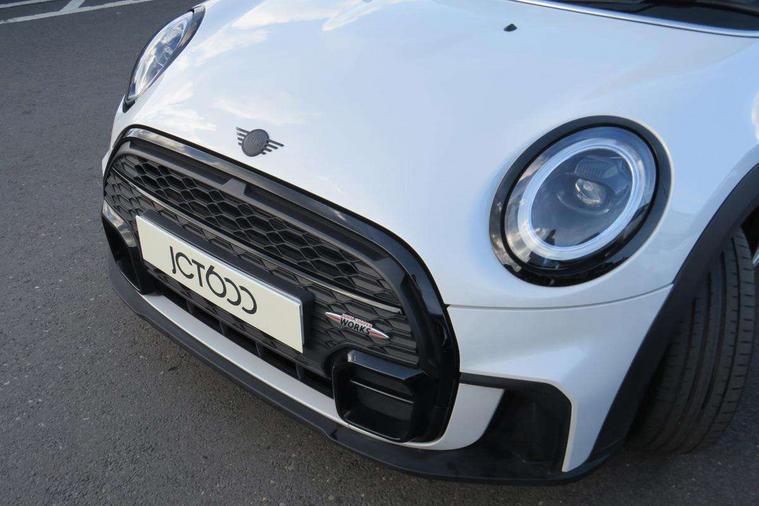 Apple CarPlay, Automatic start/stop function with brake energy recuperation, Compatible mobile phone bluetooth with audio streaming, Electro-mechanical speed dependant steering assistance, Flexible car sharing preparation, MINI Driving Modes - centre toggle switch to control driving setting (sport, mid and green), Mini E-call, MINI TeleServices, On board computer, Rear park distance control, Service interval indicator, Adaptive suspension, Double Vanos system, Fully variable valve control, Gear change indicator display, High precision injection, Performance Control, Steptronic transmission with double clutch, 8.8" touchscreen with LED ring, FM tuner and DAB digital radio, 3rd brake light, Automatic headlight activation switch, Body colour fuel filler cap, Chrome border high gloss black slats radiator grille, Dynamic brake lights, Electric front+rear windows, Exhaust tailpipe on left with chrome finisher, Heated rear window, Heated windscreen washer jets, JCW Aerodynamic kit - Front and rear bumpers with sporty JCW styling and part-painted side sills with MINI John Cooper Works door sill finishers, John Cooper Works rear spoiler, Metal door sill strips with MINI imprint, Model logo Cooper on right of tailgate, Rain sensor window wipers, Rear fog lights, Rear LED lights with union jack design, Rear side wing doors, Rear window wiper, Side scuttle panel with integrated indicator, Sun/heat protection glass, White indicator lenses, 12V Accessory socket in centre console, 3 seat bench in 2nd row, 4 lashing eyes in luggage compartment, 60/40 split folding rear seat, Anthracite headliner including grab handles and clothes hooks, Carbon black colour line - Knee roll and door armrest, Chrome interior highlights, Cupholders, Front and rear isofix with front passenger airbag deactivation, Front and rear velour floor mats, Glove compartment, Height and length steering column adjustment, Interior lighting with 12 different colours across the dashboard, underneath door bezel with illuminated laser-engraved design on central display, JCW Sport seats with integrated headrests, adjustable thigh support and John Cooper Works logo, Leatherette gearshift lever and handbrake gaiters, LED reading lights, vanity mirror lights, front foot well light and spotlight on front seats, Mechanical seat adjustment - forward/back & backrest for front seats and driver seat height adjust, Multifunction steering wheel, Single front passenger seat, Storage compartments in doors, Sunvisors with vanity mirrors, Walknappa leather steering wheel with grey seam and John Cooper Works badge on Piano Black lower steering wheel spoke, Piano black exterior pack - Mini Hatchback Cooper, 3 point seatbelts on all five seats, 6 Airbags - front, side, head and seat belt tensioners, Anti-lock braking system (ABS), Child locks on rear doors, DSC - Dynamic Stability Control, Front and rear disc brakes, Hill start assist, Single tone fanfare horn, Tyre pressure monitoring system, Alarm system with tilt sensor, monitoring doors, bonnet interior and tailgate, Electronic vehicle immobiliser, Start/stop toggle with keyless go, Piano black interior trim, Tool kit,