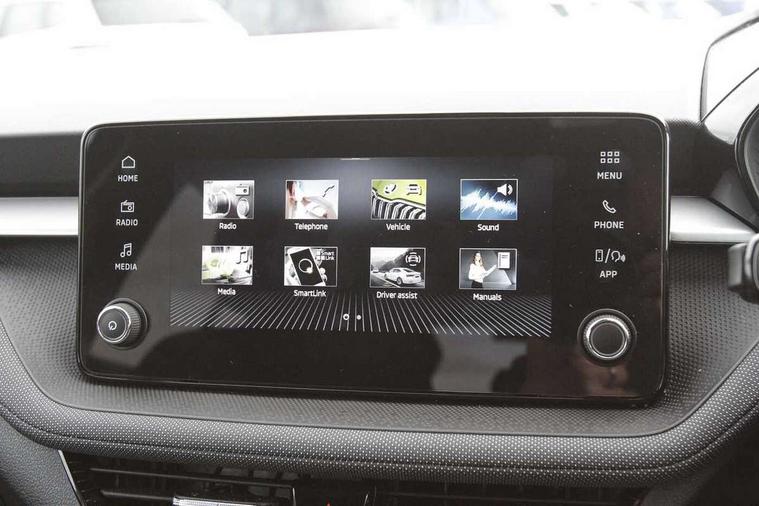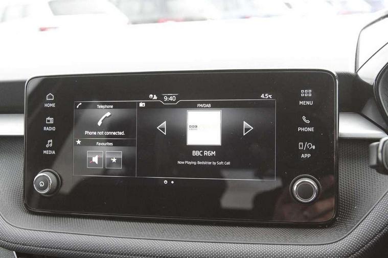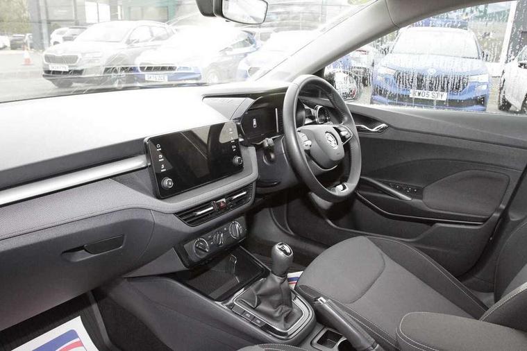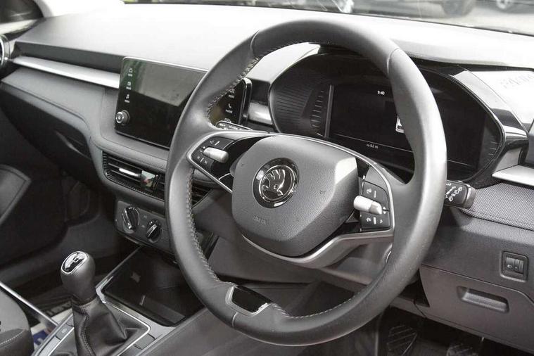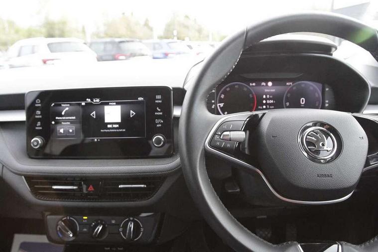Advanced driver attention and drowsiness monitor, Bluetooth connection, Electromechanical power steering, Exterior temperature gauge, Service interval indicator, Traffic sign recognition, Virtual cockpit with 10.25" colour display, Wireless SmartLink for Apple CarPlay and Android Auto, 6 Speakers (4 in front and 2 in rear), Auxiliary socket for external MP3 player, DAB digital radio reception, Body coloured bumpers, Dimming rear view mirror with black frame, Door mirror integrated indicators, Front and rear electric windows, Front window wiper intermittent control, Headlight range control - Automatic, Ice scraper in fuel cap, LED daytime running lights with coming and leaving home feature, LED rear lights, Privacy glass, Rear LED fog light, Rear side wing doors, Rear window wiper with washing nozzles, Roof mounted spoiler, SKODA tailgate lettering in chrome, Third brake light, 2 reading lights in front and 2 reading lights in rear, 3 rear headrests, Backrest split and folding, Central console with removable cup holder and storage box, Chrome handbrake release button, Fabric upholstery, Front centre armrest, Gearshift knob/handle in leather, Grain satin black interior door handles, Hand brake lever handle in leather, Height adjustable front headrests, Height adjustable front seats, Height adjustable steering wheel, ISOFIX and TopTether anchorage points to the outer rear seats, ISOFIX and TopTether on the front passenger seat, Luggage compartment lighting, Manually adjustable lumbar support in front seats, Pollen filter, Rear seat bench unsplit, Single front passenger seat, Storm grey headlining, Sun visors with mirror and airbag label on passenger side, Textile floor mats, Ticket holder, Umbrella in drivers door, 3-point height adjustable front seats belts with pretensioner and force limiter, Automatic warning lights in case of crash, Driver and passengers airbag with switch off function, e-Call+, ESC including ABS, MSR, ASR, EDS, HBA and XDS, Front and rear seat belt warning, FRONT ASSIST (AEB City and AEB Inter Urban), Front side airbags, Head airbags, One tone horn, Pedestrian protection, Three rear 3-points safety seat belts with pretensioner and force limiter including stop function for outer rear seat belts, Tyre pressure monitoring system, Anti-theft alarm system including immobiliser, interior monitoring, backup horn, and towing protection, Central locking with radio remote control, interior controls, SAFE function and 2 foldable keys, Colour Edition air vents, Grain satin black central console cover, Metallic grey upper decorative trim, Satin black door and side trim panel in front, Textile Kota grey lower decorative inserts, Anti-theft wheel bolts protection, Super-low rolling resistance tyres,