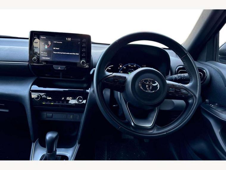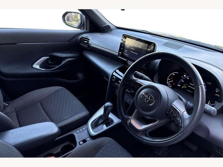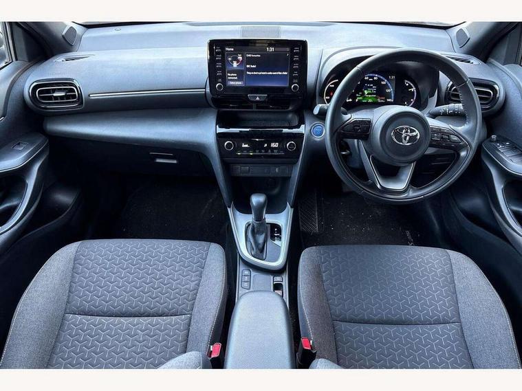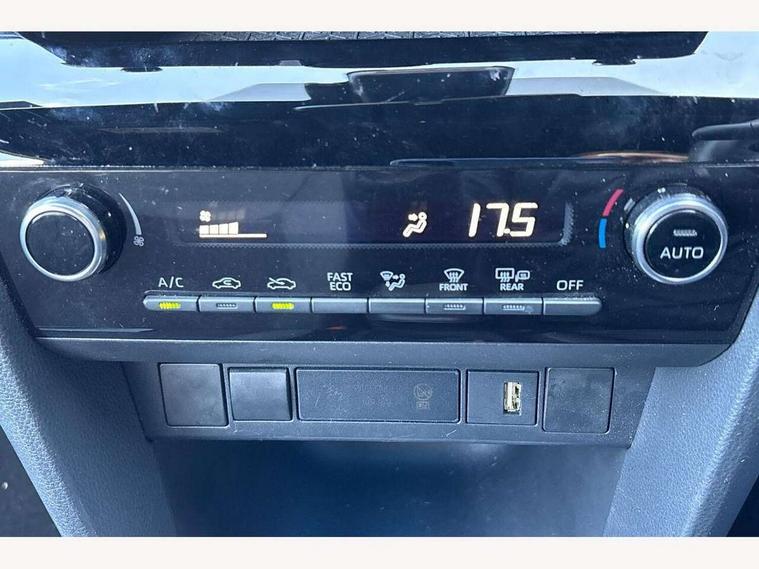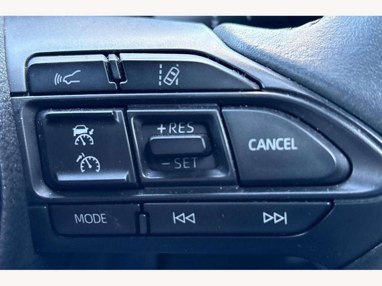7" Multi information display screen, 8" Toyota touch 2 multimedia system with Smartphone integration with Apple CarPlay and Android auto, Adjustable speed limiter, Bluetooth connectivity, Driver attention alert system, eCall emergency system, Electric power steering, Full range intelligent adaptive cruise control, Hybrid system indicator, Key reminder warning, Lane trace assist, Multimedia, audio, telephone and voice recognition switches on steering wheel, My T Connected services, Pre-collision system enhanced with emergency steering assist, Reversing camera, Road sign assist - RSA, Steering assisted vehicle stability control, 6 speakers, DAB Digital radio, USB connection, 3rd brake light, Acoustic windscreen glass, Aluminium roof rails, Anti-jam protection on power windows, Auto high beam [AHB] with on/off switch, Automatic headlights, Black lower front grille, Black Shark-fin antenna, Black upper front grille, Black wheel arch mouldings, Body colour door handles, Body colour front bumper, Body colour rear bumper, Electric adjustable heated door mirrors, Follow me home headlights, Front and rear electric windows with auto up/down function, Front intermittent wipers, Headlight cut off reminder, Indicators integrated on door mirrors, Intermittent rear wiper, LED daytime running lights guide, LED front fog lights, LED front light guide, LED Indicators, LED projector headlights, LED rear light guide, Manual headlight levelling, Manually retractable door mirrors, Noise reduction layer on windscreen, Privacy glass, Rain sensor, Rear LED lights with sequential indicators, Rear side wing doors, Rear spoiler, Rear window defogger, 12v power outlet - front, 2x Rear coat hooks, 3 seat bench in 2nd row, 3 spoke leather steering wheel, 40:20:40 split folding rear bench seat, Adjustable speed limiter switch on steering wheel, Auto air conditioning, Black roof lining, Boot light, Central armrest, Centre console in light blue ambent lighting, Driver and front passenger personal lights, Fabric door trim, Fabric upholstery, Footwell in light blue ambient lighting, Front console box, Front cup holders, Front head restraints, Glovebox, Height adjustable driver's seat, Height adjustable front passenger seat, Hooks for luggage holding belts, ISOFIX child restraint system, Lane departure alert switch on steering control, Leather gearshift, Light blue ambient lighting on front doors, Manual telescopic and tilting steering wheel, Mirror on driver and passenger sun visor, Pollen air filter, Rear cup holders, Rear head restraints, Single front passenger seat, Soft tonneau cover, 3x3 point rear seat belts, ABS+EBD+Brake assist, Driver and passenger central airbags, Driver and passenger front airbags, Driver and passenger side airbags, Electronic parking brake, Emergency brake light system (EBS), Front seat belt reminder, Hill start assist control (HAC), Passenger airbag on/off switch, Pre-collision system with pedestrian and cyclist detection, Rear door child safety locks, Rear passenger side airbags, Rear seat belt reminder, Traction control, Tyre pressure warning system, Immobiliser, Intrusion alarm, Keyless smart entry with push button start, Power door locks, Power passenger window lock, Remote door lock, Tyre repair kit,