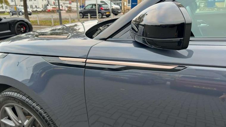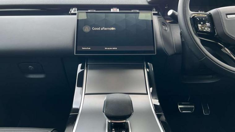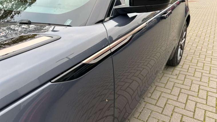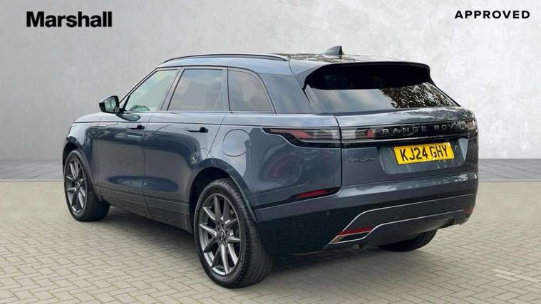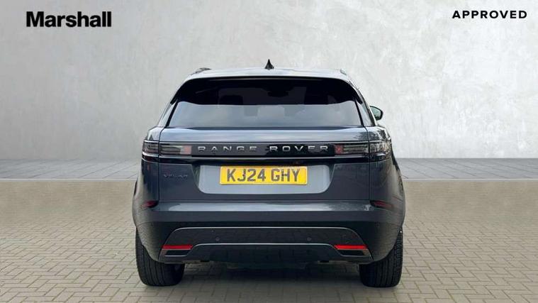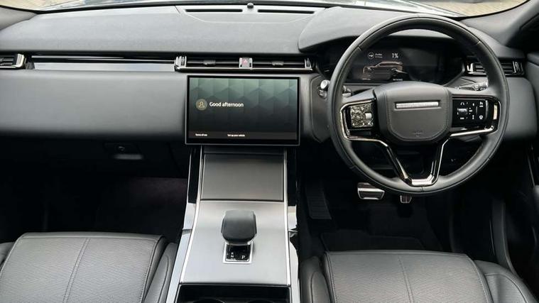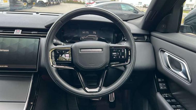 Adaptive cruise control with steering assist, Android Auto, Apple CarPlay, Blind spot assist, Bluetooth connectivity, Brake pad wear indicator warning light, Driver condition monitor, eCall emergency call system, Front and rear parking aid, InControl remote, Land Rover InControl apps, Lane keep assist, Pivi pro with connected navigation, Rear collision monitor, Rear traffic monitor, Service indicator, Speed proportional electronic power assisted steering (EPAS), Traffic sign recognition with adaptive speed limiter, Trip computer, Voice control system, Wireless device charging, 7kw on board charger, 8 speed automatic transmission, AC/DC charging, Adaptive dynamics, All terrain progress control, Coil suspension system, Home charging cable, Open differential with torque vectoring by braking, Public charging cable, Single speed transfer box, DAB radio, Steering wheel mounted controls, 3rd brake light, Acoustic laminated windscreen, Auto dimming interior rear view mirror, Automatic headlamp levelling, Automatic headlights, Body coloured bumpers, Boot protection plate, Electric windows with one touch open/close and anti trap, Flush deployable exterior door handles, Follow me home headlights, Heated rear window with timer, Heated washer jets, Heated windscreen, Metal front tread plates, Metal load space scuff plates, Pixel LED headlights with signature DRL, Power fold, auto-dimming, heated door mirrors with memory and approach lights, Rain sensor windscreen wipers, Rear animated directional indicators, Rear fog lights, Rear side wing doors, Rear wash/wipe, Tailgate/boot lid spoiler, Trailer stability assist, Velar badge, 3 seat bench in 2nd row, Ambient lighting, Bright metal pedals, Carpet mats, Driver/passenger sunvisors with illuminated vanity mirrors, Ebony morzine headlining, Electrically adjustable steering column, Extended leather upgrade, Heated steering wheel, Isofix system on outer rear seats, Loadspace cover, Overhead lighting console, Overhead stowage for sunglasses, Passive front headrests, Rear air vents, Rear centre headrest, Single front passenger seat, Twin front cupholders, Twin sliding front centre armrest, Online pack with data plan - Velar, Power socket pack 2 - Velar, 380mm front brakes and 325mm rear brakes, 3x3 point rear seatbelts, Anti-lock braking system (ABS), Cornering brake control, Curtain airbags, Customer configurable autolock, Door side intrusion beams, Driver airbag, DSC - Dynamic Stability Control, Electronic brake force distribution, Electronic parking brake, Electronic traction control, Emergency braking, Front and rear seatbelt reminder, Hill descent control, Hill launch assist, Low traction launch, Passenger airbag, Power operated child locks, Rear airbags, Roll stability control, Side airbags, Tyre pressure monitoring system (TPMS), Unpainted brake calipers, Global lock and unlock switch on driver door, Immobiliser, Intrusion sensor, Keyless entry, Lock only switch on front passenger door, Locking wheel nuts, Perimetric alarm, Remote central locking, All season tyres,