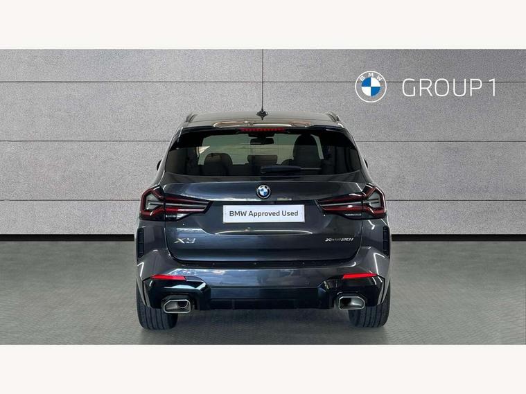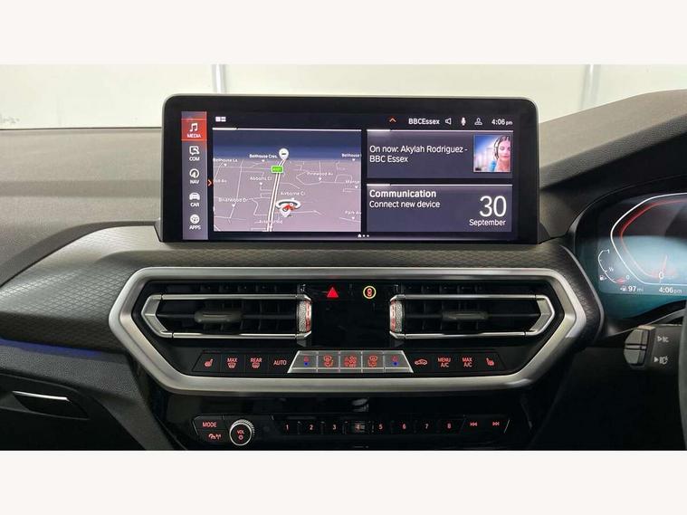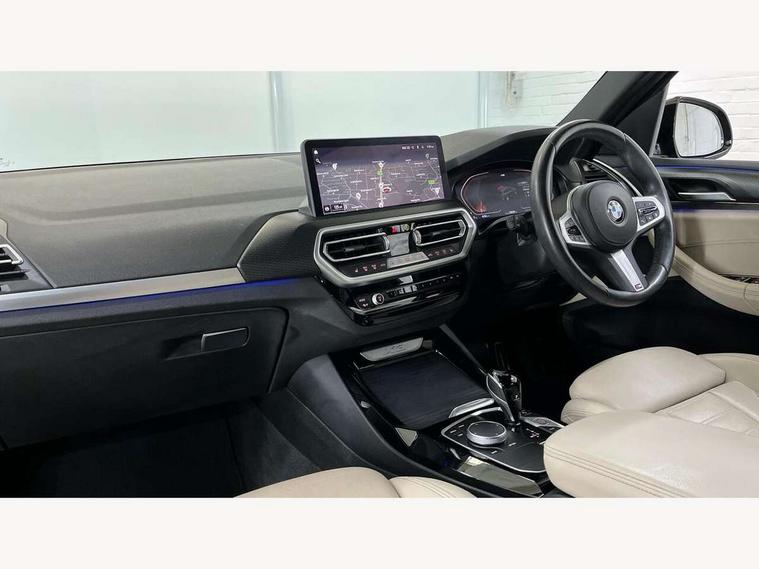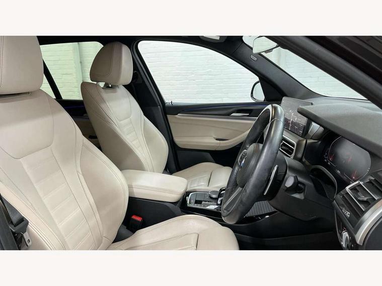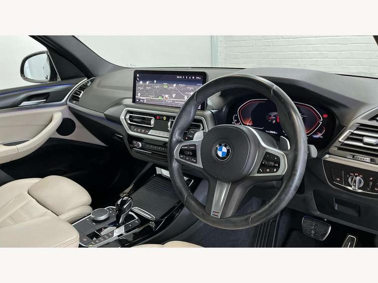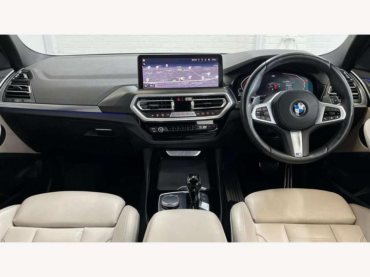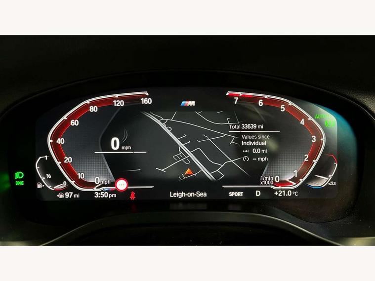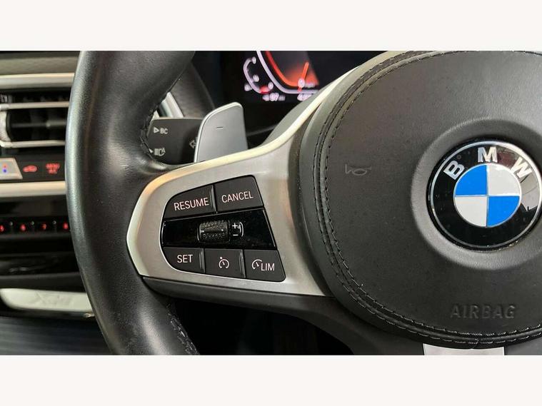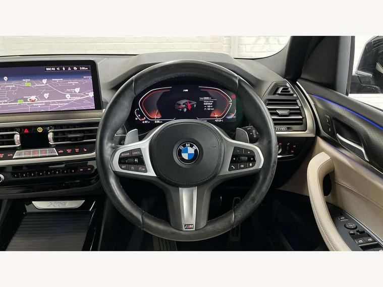 Active Guard, Attentiveness assist, BMW Live Cockpit Professional nav system including 12.3" instrument display + 12.3 high resolution control display, BMW Online services, BMW Teleservices, Brake pad wear indicator in front and rear, Check Control warning system for monitoring of lights and door/luggage compartment open warning, Condition based service - BMW service history, electronic service booklet, integrated owner's handbook, Connected drive services, Cruise control with brake function + speed limiter, Electric boot lid, Front/rear Parking distance control, iDrive Controller with 8 favourite buttons, Instrument cluster with speedometer with mph readout, tachometer, fuel gauge and oil temperature gauge, Lights on warning by audio warning signal when ignition is switched off, Oil sensor for level and grade, warning by check control system, On board computer - average speed+fuel consumption, service interval, clock/date, odometer/trip meter, outside temperature display and ice warning, Optimum shift indicator, Personal Profile - automatic lock when driving away selectable, Stop/start system, Variable sports power steering, Automatic transmission with gearshift paddles, Drive performance control with ECO PRO comfort + sport mode, Incorrect fuelling protection, M sport suspension, Multi-link rear suspension, Performance Control, BMW professional radio/CD/MP3, DAB tuner, Acoustic glazing, Automatic windscreen wipers and automatic headlight, Black finish on B pillars, Body colour door handles, Body colour electric adjust heated aspherical door mirrors, Body colour roof mouldings, Body coloured bumpers, Direction indicator, side repeaters, integrated in exterior mirrors, Dynamic brake lights, Exhaust tailpipes - dual, round, split left and right with chrome finisher, Fingertip control / anti-trap function on electric window, Folding wing mirrors with auto dimming, Follow me home headlights, Front and rear bumper system with replaceable deformation elements, Front and rear electric windows, Gloss chrome tailpipes finishers, Green tinted heat insulating glass, Heated windscreen washer jets, High beam assistant, High gloss black shadow line roof rails, High gloss shadowline exterior trim in decorative moulding side frame/recess cover/guide rail/B, C pillars/mirror frame and triangle with mirror base, High level 3rd brake light incorporating LED Technology, Interior rear view electrochromatic mirror with automatic anti dazzle function, LED tail lights, Lightweight engineering, M aerodynamic bodystyling, Model designation, Rear side wing doors, Rear wing door, Rear wiper, Shark fin antenna, Side exterior M designation badges, Visible VIN plate, Welcome lighting, Windscreen wipers with adjustable interval, 12V power socket in front centre console, 3 rear headrests, 3 zone automatic air conditioning, 4 lashing points to secure luggage, 40:20:40 split folding rear seat with loading system, 5 seats, Ambient lighting, Anthracite headlining, Automatic interior light when door is opened/ignition switched off or via remote key, Foldable storage floor with compartment, Four grab handles integrated in roof lining, Front and rear bottle holders integrated into door trim storage compartments, Front and rear side armrests integrated into door trim, Front centre armrest with storage compartment, Front footwell lights, Front head restraints, Front sports seats, Front/rear courtesy lights with soft on/off dimming, Front/rear reading lights, Heated front seats, Isofix rear child seat preparation, Leather gear knob, Luggage area underfloor compartment, Luggage compartment lighting, M sport leather steering wheel, Multifunction steering wheel, Parcel shelf removeable and storable under boot floor, Reach and rake adjustable steering column, Rear centre armrest with 2 cupholders, Removable / retractable luggage cover, Seat backrest width adjustment, Slope adjustable rear seats, Storage compartment in rear centre console and front/rear door trims, Sun visors with vanity mirrors and ticket pocket, Toolkit located in luggage compartment, Two front cupholders with removable oddments tray/lid, Vernasca leather upholstery, Connected pro pack - X3, Driving assistant pack - X3, ADB - Automatic Differential Brake, Anti-lock braking system (ABS) with brake assist, Automatic Stability Control (ASC), Battery safety cut-off, BMW emergency call, Brake drying, Brake energy regeneration, Braking pre-tensioning, Child locks on rear doors, Cornering brake control (CBC), Crash Sensor - activation of central locking release, hazard warning light and interior lighting, Deactivation of fuel pump in the event of a crash, Driver and front passenger front and side airbags with passenger deactivation and ITS front and rear head airbags, DSC+, Dynamic brake control, Dynamic Traction Control - DTC, Electromechanical parking brake, Hill descent control, Hill start assist, Seatbelt security check for front seats, Side impact protection, Three point seatbelts to all seats with front and outer rear pyrotechnic belt tensioners and seat belt force limiters, Two tone horn, Tyre pressure sensor, Ventilated front and rear disc brakes, Warning triangle and first aid kit, Central locking switch for all doors, fuel filler cap and luggage compartment, Electronic engine immobiliser, Locking wheel nuts, Remote control including two integrated key - one button for open/close all lockable content, windows and separate button for open luggage compartment, Remote control Thatcham category 1 alarm, Start/stop button with Comfort Go keyless engine start and auto Start/stop deactivation button, Low rolling resistance tyres,