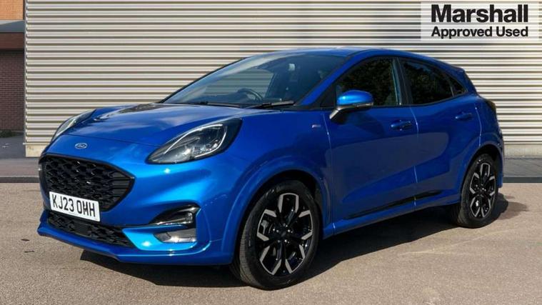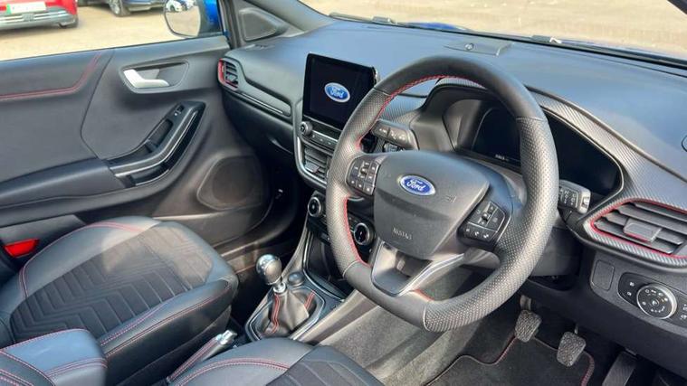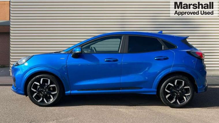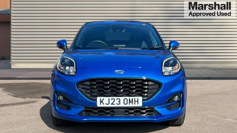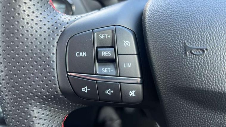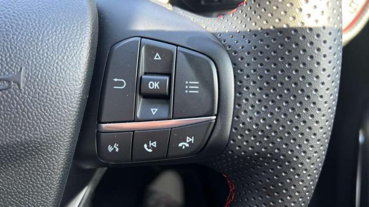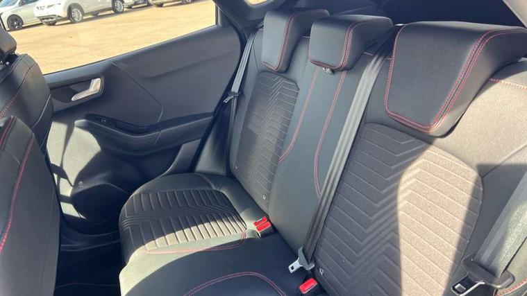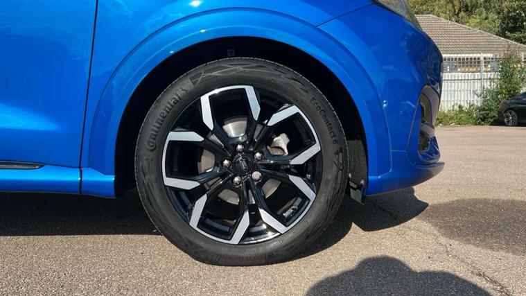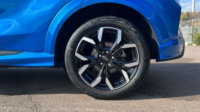 Driver impairment monitor, Emergency call service, Ford easy fuel, Full digital 12.3" instrument cluster, Lane keeping aid with lane departure warning, Power assist steering, Power start button, Rear parking sensor, Selectable drive modes(Normal, sport, Eco, trail, slippery), Speed sign recognition, Sport suspension, Automatic headlights with auto high beam, Automatic rain sensing wipers, Front fog lamps, LED daytime running lights, LED rear lamps, Power foldable heated door mirrors with puddle lamps, Privacy glass to side rear windows and tailgate glass, Quickclear heated windscreen, Rear side wing doors, Rear wiper, ST-Line body styling kit with unique grille and large body colour rear spoiler, Third brake light, 3 seat bench in 2nd row, Centre console with armrest and stowage, Ford megabox extended bootspace, Front and rear head restraints, Front floor mats, Manual 4 way driver seat adjust with lumbar adjustment, Manual 4 way passenger seat with lumbar seat adjustment, Sensico partial premium upholstery, Single front passenger seat, ST-Line flat bottomed sensico leather steering wheel with leather handbrake and aluminium gear knob, Wireless charging pad with electronic air temperature control (EATC), B&O Premium Audio system + Ford SYNC 3 navigation pack - Puma, 3 rear seatbelts, Child safety lock, Electronic stability control (ESC) and hill start assist, Pedestrian/cyclist detection & post-collision braking, Pre collision assist system, Tyre pressure monitoring system (TPMS), Thatcham alarm, Carbon look interior deco spears,