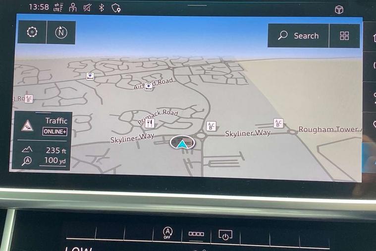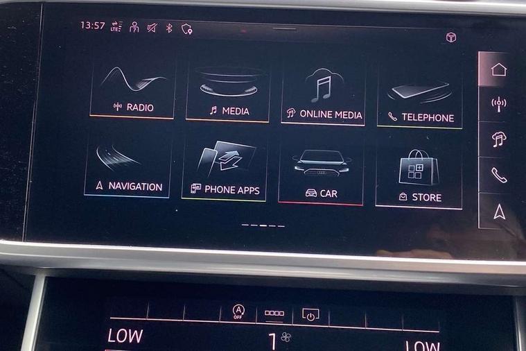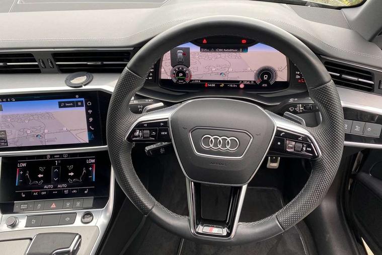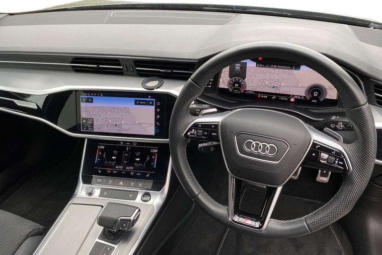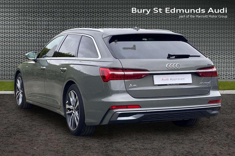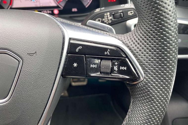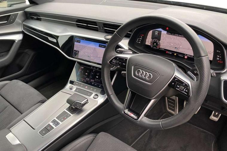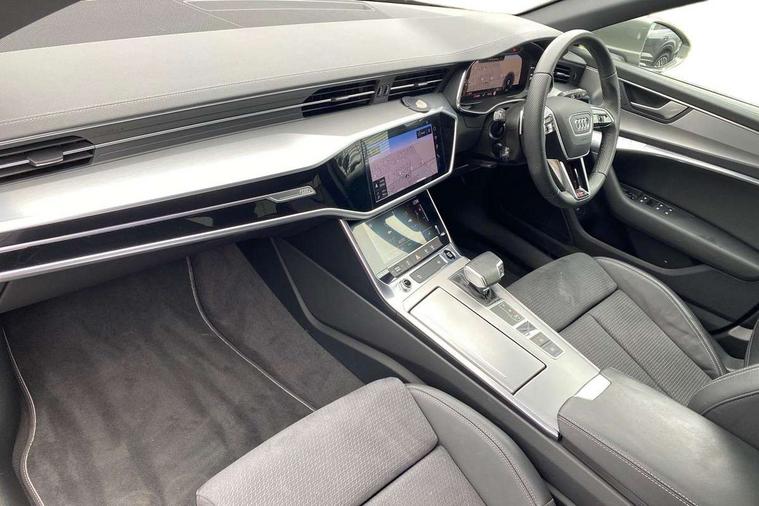 Audi connect safety and service (e-call), Audi connect with Amazon Alexa Integration, Audi drive select, Audi parking system plus - acoustic and visual park assist system for front and rear, Audi virtual cockpit, Automatic start/stop system with coasting functionality, Bluetooth interface, Camera based traffic sign recognition, Lane departure warning system, MMI navigation plus with 10.1" and 8.6" touch screens, Power operated tailgate, Progressive steering, Rear view camera, Service interval indicator, Smartphone interface includes wireless Apple carplay/Android Auto, Voice control system, Sports suspension, Audi front music interface, Audi sound system, Auxiliary input socket, DAB Digital radio, USB connection, Aluminium roof rails, Body colour rear roof spoiler, Body coloured door mirrors, Electric front/rear windows, Electrically adjustable heated and folding + automatically dimming exterior mirrors with memory function, Frameless auto dimming interior rear view mirror, Front intermittent wipers, Heat insulating darkened glass in side and rear windows, Heat insulating glass in windshield, LED rear lights with dynamic indicators, LED signature front daytime running light, LED third brake light, Matrix LED headlights, Matt black rear diffuser with diffuser strip and tailpipes in chrome, Matt black side air intake grille with inlay in matt aluminium, Privacy glass, Radiator grille in anthracite black matt, single frame in chrome and horizontal struts in matt aluminium silver, Rain and light sensors, Rear side wing doors, Rear wiper, 2 zone deluxe electronic climate control, 3 spoke high multi-function perforated leather steering wheel with contrast stitching and shift paddles, 40/20/40 split folding 3 rear seat bench in 3 parts with rear centre armrest, Audi phone box light, Black cloth headlining, Electrically adjustable front seats including seat height, fore/aft position, backrest angle and 4-way lumbar with memory for driver's seat, Front and rear floor mats, Front centre armrest, Front head restraints, Heated front seats, Height/reach adjust steering wheel, Illuminated door sill trims with S logo, Illuminated sun visors with vanity mirrors, Leather gear knob, Luggage compartment system, Rear headrests, Single front passenger seat, Stainless steel pedals and foot rest, Tool kit and car jack, LED Interior Ambient Lighting Pack - A6, Non smoking pack - A6, S line exterior style pack - A6, 3 point seatbelts on all seats, Airbags - Front side, front and rear including head, Audi pre-sense front, EBD - Electronic brakeforce distribution, Electromechanical parking brake, Electronic Stability Control (ESC) including ABS, ASR and EDL, Extended pedestrian protection measures, ISOFIX child seat mounting for front passenger seat and ISOFIX child seat mounting with Top Tether for outer rear seats, Manual child proof rear door locks, Seatbelt monitoring, Tyre pressure warning light, Warning triangle and first aid kit, Anti theft alarm with tow away protection, Anti-theft wheel bolts and wheel loosening detection, Immobiliser, Keyless Go, Remote central locking, Matt brushed aluminium inlays,