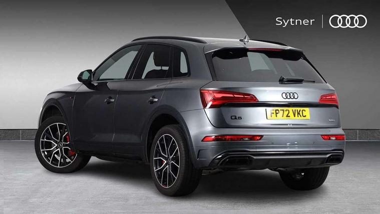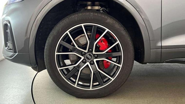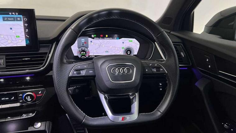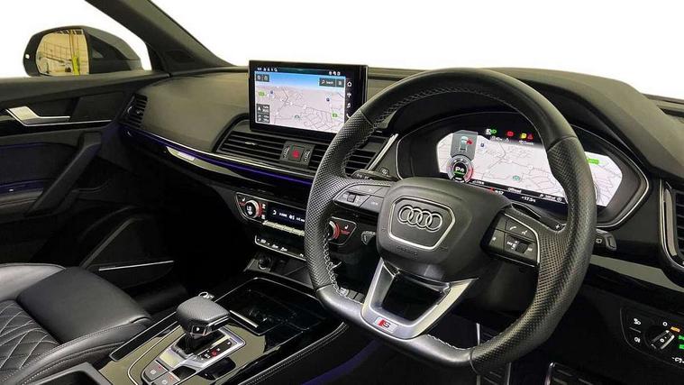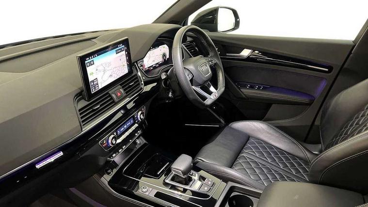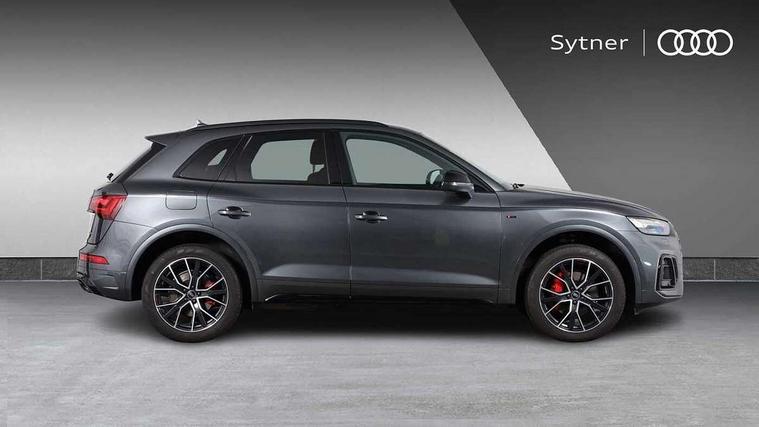 Audi connect safety and service (e-call), Audi connect with Amazon Alexa Integration, Audi drive select, Audi virtual cockpit plus with 12.3" screen and three different layout designs, Audi wireless smartphone interface, Automatic start-stop system with coasting functionality and efficiency programme, Bluetooth interface, Electro - mechanical power assisted steering, MMI navigation plus with 10.1" touch screen, Power tailgate, Reversing camera, Service interval indicator, Voice control system with Audi hotword activation "Hey Audi", Diesel particulate filter, Quattro on demand, S line sports suspension, DAB Digital radio, Acoustic windscreen, Audi matrix LED headlights with dynamic front and rear indicators, Audi rings at front and rear in black, Audi rings decal on rear doors, Auto dimming door mirrors, Auto dimming rear view mirror, Automatic headlight adjustment, Automatic headlights and windscreen wipers, Black roof rails, Body colour bumpers, Body colour underbody protection, Chrome plated exhaust trims, Daytime running lights, Door sills in Selenite silver, Electric adjustable/heated/folding door mirrors, Front air inlet surrounds in titanium black, Front and rear electric windows, Headlight washers, High gloss black B pillar trims and triangular rear door trim, High level LED brake light, Rear chrome trim strip below lights, Rear privacy glass and rear side windows, Rear side wing doors, Rear wiper, Roof bars, S Line rear spoiler, 2 x USB charging port with aux input socket, 3 rear headrests, 4 way electric lumbar support for driver and front passenger, 40:20:40 split folding 3 rear bench seat in 2nd row with rear centre armrest, Black cloth headlining, Comfort front centre armrest, Contrast stitching on seats, steering wheel and gear lever gaiter, Deluxe 3 zone electronic climate control, Electrically adjustable front seats, Fine Nappa leather upholstery with diamond pattern contrast stitching + front sport seats with S embossed logo, Front/rear floor mats, Gear lever in black leather, Heated front seats, Height adjustable front head restraints, Height/reach adjustable steering column, Illuminated door sill trims with S logo, ISOFIX child seat mounting and top tether, Luggage compartment cover, Rear seat bench plus, Removable luggage compartment floor, Single front passenger seat, Stainless steel pedals, Sunvisors with vanity mirrors, Black styling package - Q5 Edition 1, Extended interior upholstery pack - Q5, Extended LED Interior multi coloured Lighting Pack - Q5, 3 point seatbelts on all seats, 6 airbags - Driver, front passenger, curtain and side airbags, Electrically operated child locks on rear doors, Electromechanical parking brake, Electronic stabilisation control including ABS, ASR and EDL, Front and rear brake calipers painted in red, Front passenger airbag deactivation, Hill descent control, Hill hold assist, Multi collision brake assist, Pop-up bonnet for pedestrian protection, Pre sense city, Seat belt force limiter, Seatbelt monitoring, Tyre pressure warning, Warning triangle and first aid kit, Anti theft alarm, Anti-theft wheel bolts, Keyless Go access/ignition system, Remote central locking, Piano black finish inlay,
