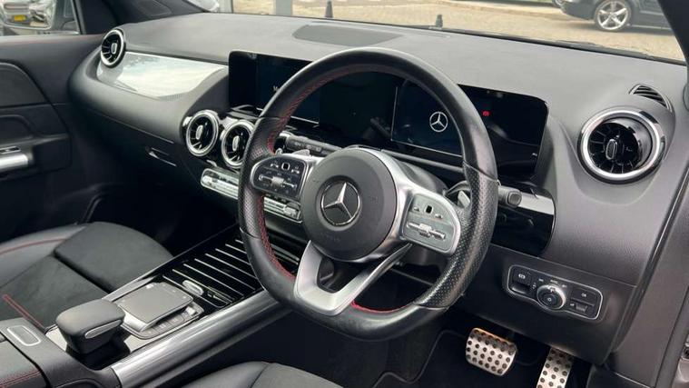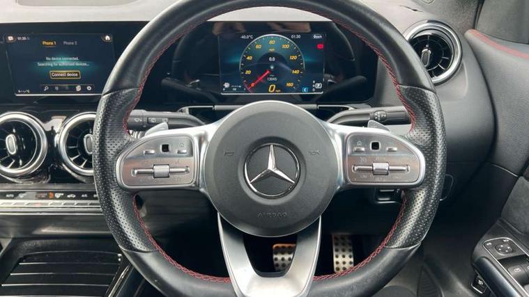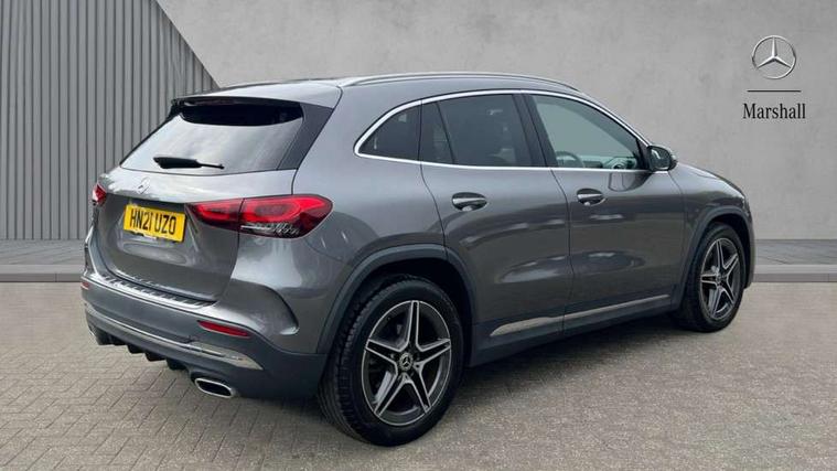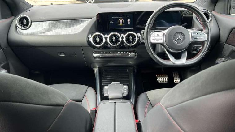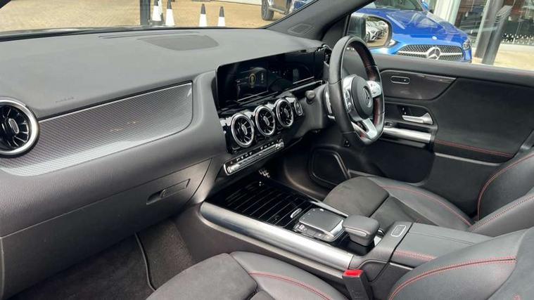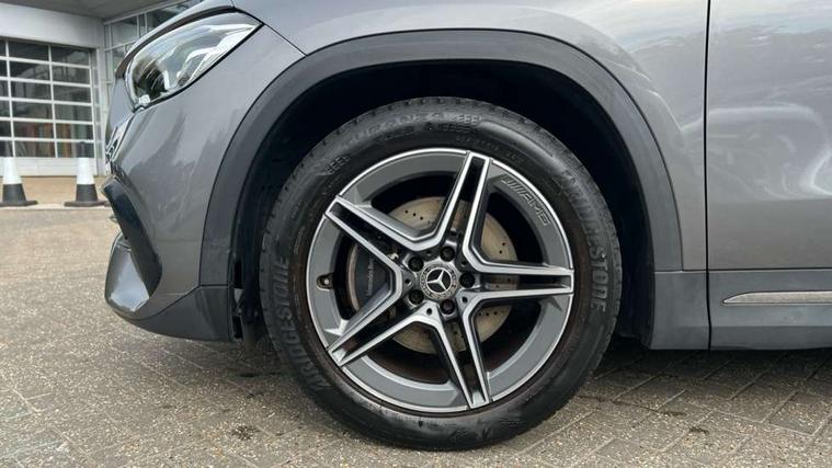180 degree reversing camera with parking guidelines, 7 inch digital instrument cluster display, 7" touchscreen media display, Active lane keeping assist, Attention assist, Cruise control + speed limiter, Direct steering, DYNAMIC SELECT with a choice of driving modes (ECO, Comfort, Sport, Sport+ and Individual), Easy-pack tailgate, ECO start/stop function, Fluid level warning indicator for fuel, oil, coolant and washer fluid, Hard-disk navigation, Hey Mercedes Voice activation, Lamp failure indicator, Mercedes me connect including emergency call system, accident recovery, breakdown and maintenance management, Mercedes me remote services, Multi function trip computer, Outside temperature gauge, Owners manual and service booklet in English, Pre-installation of private car share, Radio aerial integrated into front and rear windshields, Service indicator (ASSYST), Speed limit assist, Status display for rear seat belts in instrument cluster, Lowered comfort suspension, Rear axle multi-link, 2 USB ports (type C) in rear stowage compartment and one in front of center console, Bluetooth connectivity including audio streaming, DAB Digital radio, MBUX multimedia system with DAB digital radio and touchpad including satellite navigation, Media interface, Mercedes-Benz sound system - 100W, Adaptive brake lights, Aerial for GPS, Aluminium roof rails, AMG front and rear apron, AMG specific/dual flow exhaust pipes in chrome (non-functional), Automatic headlamp activation, Beltline strips and weather strip in chrome, Black grained claddings with chrome parts, Body colour bumpers, Body colour door handles, Body colour door mirrors, Car wash function, Dark privacy glass from B-pillar backwards, Electric front windows, Electric rear windows, Electrically adjustable and heated door mirrors with integrated LED indicators, Front door sills with Mercedes-Benz lettering, Heated glass rear windscreen + timer control, Heated windscreen wash system, Interior mirror with black reading lamps and frameless, LED high performance headlamps with integrated LED daytime running lights, LED tail lights in two piece design, LED third brake light, Matt titanium grey front and rear apron trim, Rain sensor windscreen wipers, Rear fog lights, Roof spoiler, Single lamella raditor grille with chrome dotted diamond grille and inlay, 12V power socket in centre console, 3 spoke multifunction sports steering wheel in nappa leather with flattened bottom and perforated grip area, 40:20:40 split folding rear seat backrests, Adjustable head restraints, Air conditioning - Two zone thermotronic luxury automatic climate control with display, Ambient lighting in front headrests, AMG floor mats with AMG lettering and stiched edging, Artico man-made leather/Microfibre Dinamica upholstery with red contrast stitching, Auto Mercedes-Benz child seat recognition sensor, Black roof lining, Brushed door pulls in silver chrome, Courtesy light in boot, Front centre armrest with stowage, Galvanished gear shift paddles on steering wheel, Heated front seats, Illuminated glovebox, Leather trimmed gearknob, Luggage net on driver/front passenger seat backrest, Manually height and reach adjustable steering column, Multi-gesture touchpad control on center console, Net in front passenger footwell, Sports pedals in brushed stainless steel with black rubber studs, Sports seats, Stowage compartment in centre console, Stowage compartment with retractable cover, Sunvisors with illuminated vanity mirrors, Twin front cup holders, Two outer rear seat isofix and top tether child seat fixing points, AMG body styling pack - GLA, Comfort seat pack - GLA Class, Interior lighting with light and sight pack - GLA, Load compartment pack - GLA, 3 rear 3 point seatbelts, ABS with Brake Assist, Active bonnet pedestrain safety measure which detects an impact and raises bonnet by 65mm, Active brake assist includes forward collision warning system with autonomous braking, Adaptive brake assist with hold function and hill start assist, Bonnet with power domes, Brake pad wear warning indicator, Childproof locks manually operated for rear doors and electrically operated for rear power windows, Crash responsive emergency lighting, Driver and passenger head and side airbags, Drivers knee airbag, Dual stage driver/passenger airbags, Electronic parking brake, ESP curve dynamic assist, ESP with ASR, Front and rear seatbelt reminder, Front brake callipers with Mercedes Benz logo lettering on front, Front brake discs internally ventilated and perforated, Front passenger seat occupancy sensor, Tyre pressure monitoring system, Warning triangle and first aid kit, Window airbags, Alarm system with immobiliser and interior protection -Thatcham category 1, Keyless Go starting function, Remote central locking and crash sensor with emergency opening function, Vehicle key with decorative surround in chrome, Carbon structure trim, Chrome air vent surrounds, 19" AMG 5 twin spoke light alloy wheels aerodynamically optimised painted in tantalite grey with a high sheen finish, Summer tyres, Tirefit tyre sealant kit,