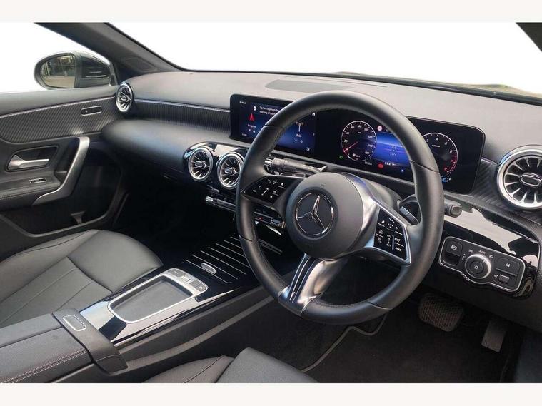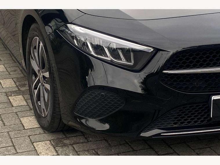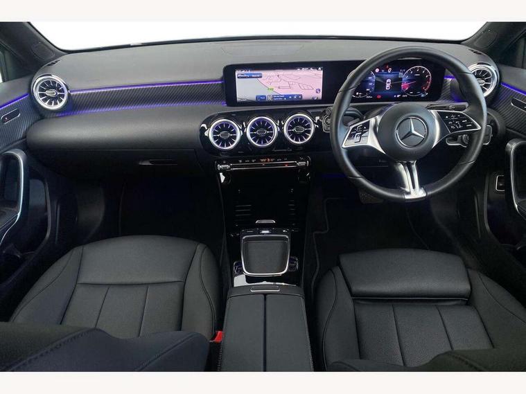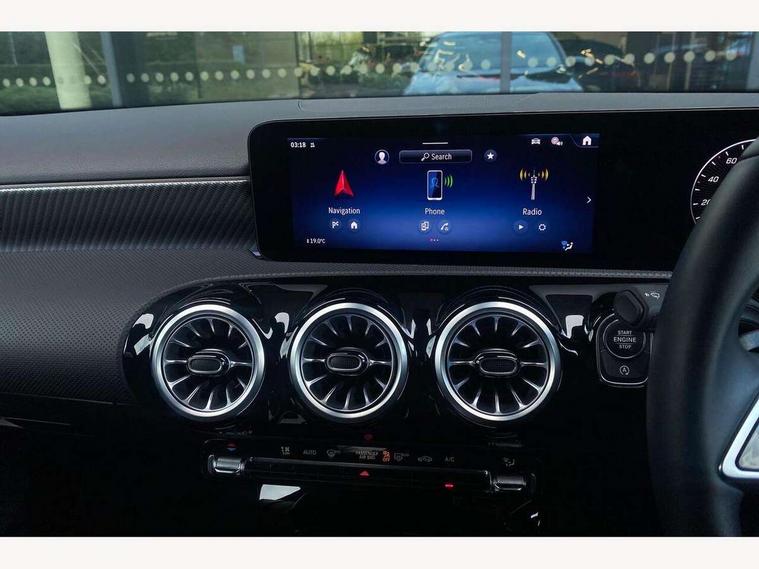 10.25 inch touchscreen central media display, 10.25" Digital instrument cluster display screen, Attention assist, Blind spot assist, Brake pad wear indicator warning light, Car wash mode, Cruise control + speed limiter, Direct steering, Direction indicators with lane change function, Dual bluetooth interfaces, DYNAMIC SELECT with a choice of driving modes (ECO, Comfort, Sport and Individual), ECO start/stop function, Engine start/stop button, Fingerprint scanner, Fluid level warning indicator for fuel, oil, coolant and washer fluid, Fluorescent jacket for driver, Hard-disk navigation, Hey Mercedes Voice activation, Lamp failure indicator, Lane keeping system, Mercedes me connect including emergency call system, accident recovery, breakdown and maintenance management, Mercedes me remote services, Outside temperature gauge, Owners manual in English, Pre-installation of private car share, Preinstallation for Mercedes Benz link, Remote boot closing, Service indicator (ASSYST), Smartphone integration with Apple CarPlay and Android auto, Speed limit assist, Speed sensitive power steering, Trip computer in multifunction display with current consumption indicator, Wireless charging, Lowered comfort suspension, DAB Digital radio, MBUX multimedia system, Mercedes Benz sound system (100 W) with 6 speakers, 4 Electric Front and Rear windows, Adaptive brake lights, Body colour bumpers, Body colour door handles with chrome inserts, Body colour side skirt, Body coloured door mirrors, Chrome beltline strips, Diamond radiator grille with pins in fine star pattern, Electric adjustable and heated door mirrors with integrated LED side indicators, Exhaust system with 2 visible tailpipe trim elements and rear apron, Headlamp assist automatic headlamp activation, Heat insulating dark tinted rear and rear side windows, Heated glass rear windscreen + timer control, LED High Performance headlamps including integral LED daytime running lamps and adaptive highbeam assist, LED tail lamp, Privacy glass, Radio aerial, Rain sensing windscreen wipers with two sensitivity settings, Rear boot, Rear fog lights, Rear side wing doors, Third brake light featuring LED technology, Window line trim strip in chrome, 3 seat bench in 2nd row, 3 spoke ARTICO man-made leather multifunction sports steering wheel, 4 way lumbar support, 40:20:40 split folding rear seats, Air conditioning - One zone thermatic automatic climate control with automatically controlled air distribution, Artico man-made leather upholstery, Automatic child seat recognition sensor, Black air vents with surround in silver chrome, Black roof lining, Front centre armrest with stowage, Front comfort seats with adjustable head restraints, Front door sills with Mercedes Benz lettering, Front seat backs luggage nets, Gearshift paddles on steering wheel, Heated front seats, Height/reach adjustable steering column, Interior lighting - 64 colour Ambient lighting, Interior mirror with reading lamps in black and frameless, Rear armrest with 2 cupholders, Rear head restraints, Seat occupancy sensor for front passenger seat, Single front passenger seat, Stowage compartment in centre console with retractable cover, Sunvisors with illuminated vanity mirrors, Twin front cupholders, Velour floor mats, Keyless go comfort pack - A Class, Light and sight package - A Class, Mirror package - A Class, Parking pack with 180 degree view - A Class, Seat comfort pack - A Class, USB pack plus - A Class, 3 rear 3 point seatbelts, ABS with Brake Assist, Active bonnet, Active brake assist includes forward collision warning system with autonomous braking, Adaptive brake assist with hold function and hill start assist, Black seatbelts, Bonnet with power domes, Childproof locks manually operated for rear doors and electrically operated for rear power windows, Crash responsive emergency lighting, Driver and passenger head and side airbags, Drivers knee airbag, Dual stage driver/passenger airbags, Electronic parking brake, ESP curve dynamic assist, ESP with ASR, Front and rear seatbelt reminder, ISOFIX and top tether child seat fixing points in two outer rear seats, Tyre pressure monitoring system, Warning triangle and first aid kit, Window airbags, Alarm system/interior protection/immobiliser, Guard 360 degree vehicle protection, Remote central locking and crash sensor with emergency opening function, Dark carbon fibre interior trim, 17" 5 spoke light alloy wheels, aerodynamically optimised, painted in black with high sheen finish, Summer tyres, Tirefit sealant kit,