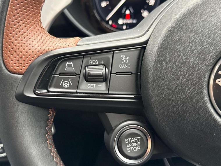 12.3" Full TFT instrument cluster, Active blind spot assist, Active cruise control, Alfa connect box, Alfa multi touch 3D Nav 8.8" Infotainment system (radio, 3D Nav, MP3, aux-in, bluetooth), Apple car play/Android Auto, DNA unlatched, Drive mode selector, Driver attention alert system, Electrically operated tailgate, European maps, Forward collision warning, Front and rear parking sensors, Lane keep assist, PAS, Rear backup camera with dynamic grid lines, Traffic sign recognition, Trip computer, Wireless charging pad, Unique Alfa Synaptic Dynamic Control suspension, Digital Audio Broadcast radio-DAB, Harman Kardon sound system, Rear USB port, Steering wheel mounted audio controls, USB and Aux in armrest, USB in front centre console, Auto dimming electrochrome door mirrors, Auto high beam, Dark V-front and Black mirror caps with Italian flagship, Dusk sensor, Electrically adjustable and folding door mirrors, Heated washer jets, LED tail and brake lights, Premium Matrix Trilobe lights, Rain sensor, Rear boot, Rear dark tail lamps, Rear side wing doors, Tricolor on mirror caps, U shaped LED blades DRL signature and dynamic turn indicator, Welcome/leaving lighting, 12V power outlet, 3 individual seats in 2nd row, 40:20:40 split folding rear bench seat, Additional soundproofing, Aluminium shift paddle and Aluminium real material details, Aluminium shift paddles on steering column, Aluminium sport pedals, Aluminium sports pedal and footrest, AQS Air quality system, AR embroidered logo in the handrest and tan acccent stitching, Boot light, Dark roof lining, Driver sunvisor with mirror, English handbook, Floor mats, Front courtesy map lamps, Front headrests, Functional LED lighting, INTENSA logo on central armrest, Intensa signature tan stitching leather central armrest, Premium leather dashboard and door panel, Rear air vents, Single front passenger seat, Sports leather gearstick, Tan stitching on dashboard, door panels and rear seats, Third rear headrest, Two-tone steering wheels with tan stitching, Unique Sporty leather upholstery, Driver assistance pack - Guilia, Premium audio pack - Giulia, Premium pack - Giulia, Veloce package - Guilia, 3x3 point rear seatbelts, ABS, Autonomous emergency braking, Child locks on rear doors, Electronic parking brake, ESP, Front airbag deactivation on passenger side, Seatbelt reminder, Traction control, Tyre pressure monitoring system (TPMS), Unique black brake calipers with Alfa Romeo light gold signature, Upgraded Braking system, Alarm system with bonnet and intrusion protection, Cyber security level 3, Immobiliser, Keyless entry, Keyless Go, Passive entry, Remote central locking, Fix and go puncture repair kit, Monochrome central wheel caps, Tyres default, Unique 19" two-tone wheels with diamond cut light gold finish,