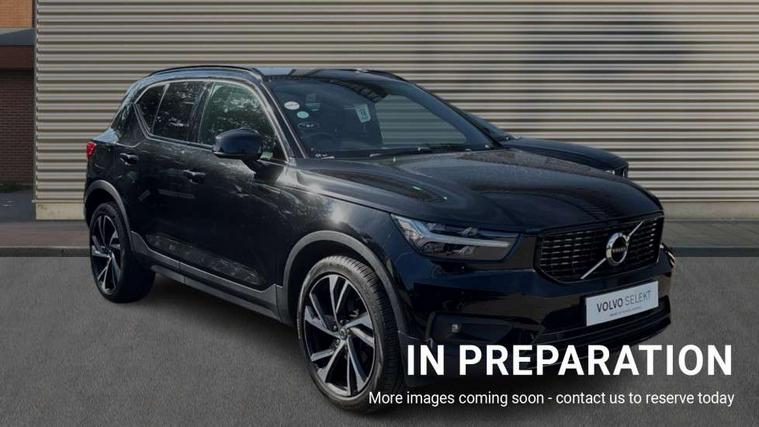 12.3" Active TFT crystal driver's instrument display, 9" centre console portrait touch screen, Adjustable steering wheel force, Bluetooth hands free telephone kit, Drive mode selector, Lane keep assist with driver alert control, Oncoming Lane Mitigation, Power operated tailgate, Sensus navigation with European mapping and traffic information, Speed limiter, Speed sensitive steering, Voice activated control for key functions, Volvo on call, Sports chassis, DAB Digital radio, Steering wheel mounted remote controls, Adaptive brake lights with high level LED brake lights, Auto dimming interior mirror, Automatic headlamp levelling, Black stone door mirrors, Black stone roof, Colour coordinated auto folding and heated power door mirrors, Dark tinted windows for rear door side windows and cargo compartment, Dual integrated exhaust pipes with high gloss black surround, Front aluminium tread plates, Front and rear electric windows, Heated front windscreen, Heated washer nozzles, High gloss black front and rear skid plate, High gloss black lower front bumper, High gloss black mesh front grille with high gloss black surround, High gloss black roof rails, High gloss black sensus surround deco, High gloss black window trim, Home safe and approach lighting, LED Headlights + Active high beam incorporating daytime running lights, Rain sensor with automatic windscreen wiper activation, Rear side wing doors, Rear wiper, Roof antenna, Roof spoiler, Visible VIN plate, 12V socket in front tunnel console and luggage compartment, 2 zone electronic climate control and rear air vent, 3 seat bench in 2nd row, 60/40 versatile split folding rear seat, A-pillar parking ticket holder, Bright metal luggage threshold, Centre console cupholders and storage, Charcoal headlining, Driver's side lower dashboard credit card storage compartment, Front footwell illumination, Front headrests, Front reading light and theatre lighting, Front seat cushion extensions, Front tunnel net pocket and integrated waste bin, Glovebox bag hook, Heated front seats, Height/reach adjustable steering column, Height/tilt adjustable driver's seat, High gloss centre tunnel deco, Illuminated glovebox, Illuminated luggage compartment, Illuminated tailgate, Illuminated vanity mirrors, Isofix attachments on outer rear seats, Key integrated remote, Leather gearknob, Load protection net, Multi directional lumbar support, Power driver seat with memory + exterior mirrors memory, Rear armrest / integral cup holders / storage tray, Rear coat hook, Single front passenger seat, Sports floor mats, Sports pedals, Sports tailored steering wheel, Underfloor cargo storage, Lighting pack - XC40, 3x3 point rear seatbelts, City safety includes pedestrian, cyclist and large animal detection and front collision warning with full auto brake, Drivers knee airbag, Dual stage driver/passenger airbags, Electronic parking brake with auto hold, First aid kit, Front and outer rear seatbelt reminder and pretensioners, Front seats SIPS airbags, Hill descent control, Hill start assist, Inflatable curtain, Passenger airbag cut-off device, Road sign information display, Run off Road Mitigation, Run off Road Protection, SIPS (Side Impact Protection System), Slippery road and hazard light alert, Stability and Traction Control with Spin control, Engine Drag Control and Corner Traction Control, Tyre pressure monitoring system, Vehicle deceleration control with Anti-lock Brake System, Electronic Brake Distribution and Emergency Brake Assist, Warning triangle, WHIPS whiplash protection system - front, Anti-theft alarm including immobiliser/volume sensor + level sensor, Care key with user defined top speed, Key integrated remote control central locking + fuel flap with deadlocking system and auto open/close power windows, Locking wheel nuts, Private locking for tailgate, Cutting edge aluminium inlay, Lower dashboard, tunnel console and door panel in charcoal,