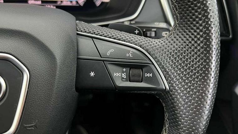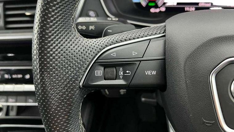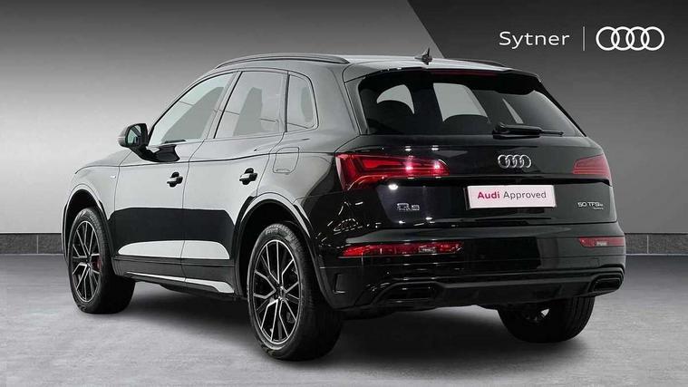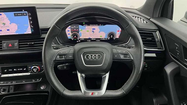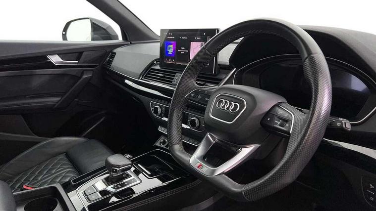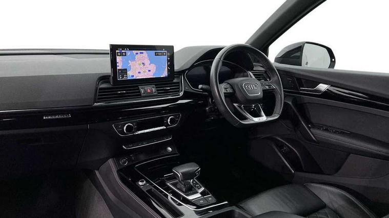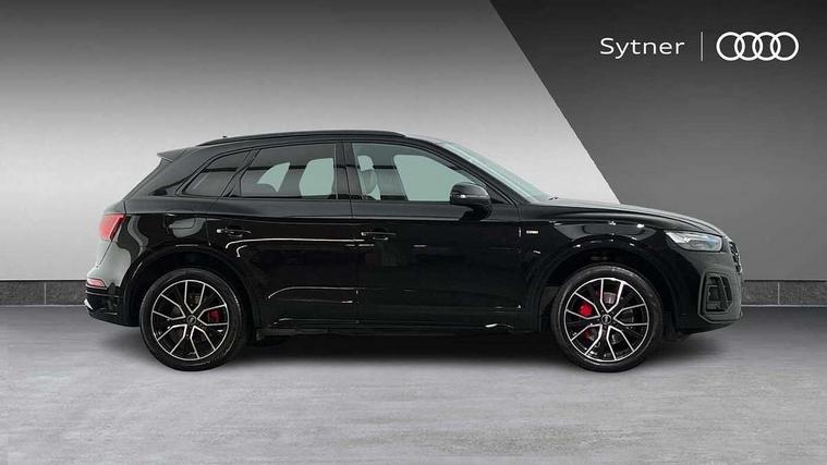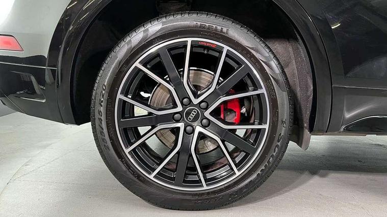 Audi connect safety and service (e-call), Audi connect with Amazon Alexa Integration, Audi drive select, Audi virtual cockpit plus with 12.3" screen and three different layout designs, Audi wireless smartphone interface, Automatic start-stop system with coasting functionality and efficiency programme, Bluetooth interface, Electro - mechanical power assisted steering, MMI navigation plus with 10.1" touch screen, Power tailgate, Reversing camera, Service interval indicator, Voice control system with Audi hotword activation "Hey Audi", 3 pin 10 amp domestic charging cable, 7.4 kW onboard charger, Dynamic suspension, Quattro on demand, Type 2 mode 3 22kW 32 amp charging cable, Type 2 socket for AC charging, 2 x USB charging port with aux input socket, DAB Digital radio, Acoustic windscreen, Audi matrix LED headlights with dynamic front and rear indicators, Audi rings at front and rear in black, Audi rings decal on rear doors, Auto dimming door mirrors, Auto dimming rear view mirror, Automatic headlights and windscreen wipers, Black door mirrors, Black roof rails, Body colour bumpers, Body colour underbody protection, Chrome plated exhaust trims, Daytime running lights, Door sills in Selenite silver, Electric adjustable/heated/folding door mirrors, Front air inlet surrounds in titanium black, Front and rear electric windows, Headlight washers, High gloss black B pillar trims and triangular rear door trim, High level LED brake light, Rear chrome trim strip below lights, Rear privacy glass and rear side windows, Rear side wing doors, Rear wiper, Roof bars, S Line rear spoiler, 3 rear headrests, 4 way electric lumbar support for driver and front passenger, 40:20:40 split folding 3 rear bench seat in 2nd row with rear centre armrest, Black cloth headlining, Comfort front centre armrest, Contrast stitching on seats, steering wheel and gear lever gaiter, Deluxe 3 zone electronic climate control, Electrically adjustable front seats, Fine Nappa leather upholstery with diamond pattern contrast stitching + front sport seats with S embossed logo, Front/rear floor mats, Gear lever in black leather, Heated front seats, Height adjustable front head restraints, Height/reach adjustable steering column, Illuminated door sill trims with S logo, ISOFIX child seat mounting and top tether, Rear seat bench plus, Single front passenger seat, Sunvisors with vanity mirrors, Trunk roller cover, Black styling package - Q5 Edition 1, Extended interior upholstery pack - Q5, Extended LED Interior multi coloured Lighting Pack - Q5, 3 point seatbelts on all seats, 6 airbags - Driver, front passenger, curtain and side airbags, Electrically operated child locks on rear doors, Electromechanical parking brake, Electronic stabilisation control including ABS, ASR and EDL, Front and rear brake calipers painted in red, Front passenger airbag deactivation, Hill descent control, Hill hold assist, Multi collision brake assist, Pop-up bonnet for pedestrian protection, Pre sense city, Seat belt force limiter, Seatbelt monitoring, Tyre pressure warning, Warning triangle and first aid kit, Anti theft alarm, Anti-theft wheel bolts, Keyless Go access/ignition system, Remote central locking, Piano black finish inlay, 20" 5 V spoke star design Audi sport alloy wheels in gloss anthracite black with diamond cut finish, Tool kit, Tyre repair kit,