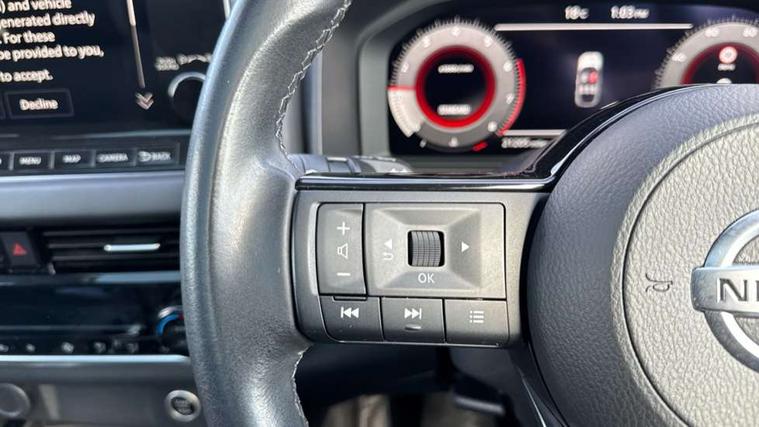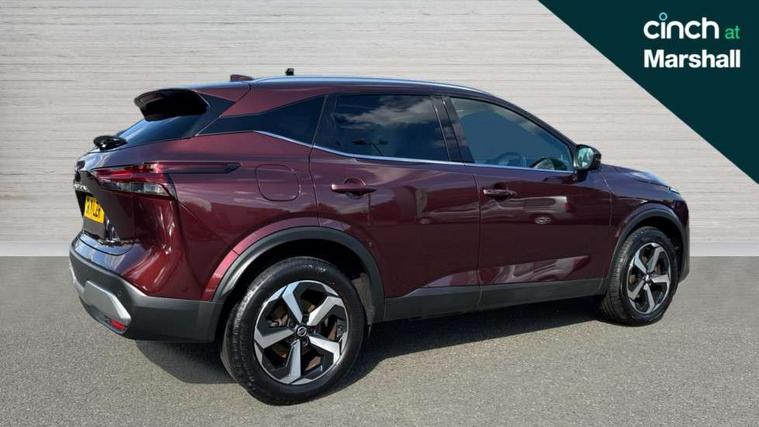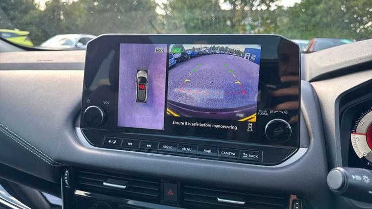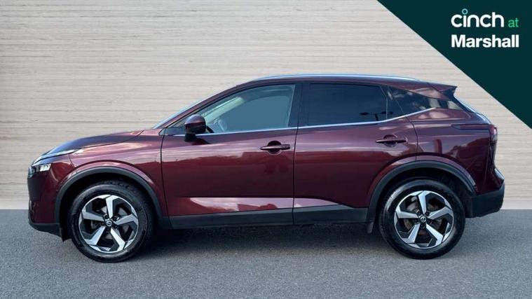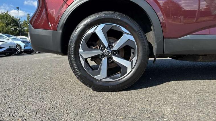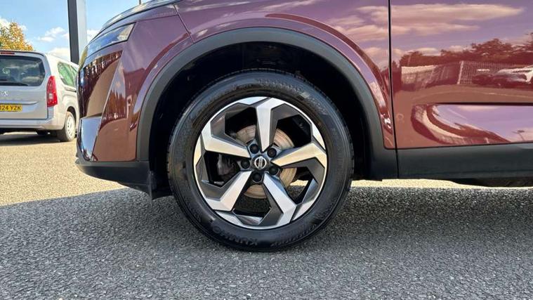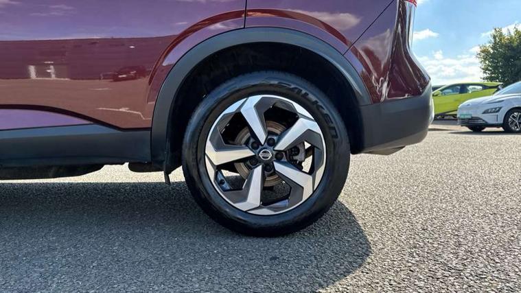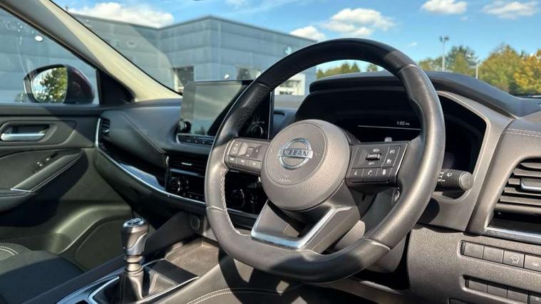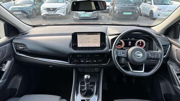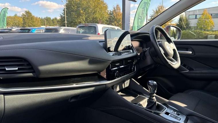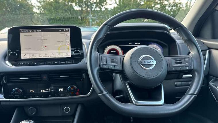 Android auto/Apple CarPlay (Wired), Blind spot warning, Drive modes (sport, normal, eco), Electric speed sensitive power steering, Emergency and breakdown call, Front and rear parking sensors, Full Digital 12.3" TFT Digital Combimeter, Idle stop/start system, Intelligent Cruise control (ICC), Intelligent driver alert system, Intelligent forward collision warning, Intelligent lane intervention, Lane departure prevention, Lane departure warning system, Maximum speed limiter, Moving object detection, Push button starter, Rear cross traffic alert, Traffic sign recognition, Trip computer, 6 speakers, AM/FM audio system with DAB, Bluetooth audio streaming, Front USB connections (Type-A and Type-C), Rear USB charging only ports (Type-A and Type-C), Auto dimming rear view mirror, Auto rear wiper when reversing, Body colour mirror caps, Body coloured door handles, Bodyside mouldings, Chrome side window finisher, Electric auto folding door mirrors, Electrically adjustable and heated door mirrors with LED turn indicator, Follow me home headlights, High beam assist, Intelligent auto headlights, LED daytime running lights, LED Headlights, LED rear lights, One touch front and rear electric windows with remote opening and closing, Partially body coloured bumpers, Privacy glass, Rear roof spoiler, Rear styling plate, Shark fin antenna, Splash free rain sensing wipers, Super UV and infrared cut glass, Three blink turn signal, 12v power socket in dashboard and luggage, 2 way electrical driver lumbar adjustment, 2x Rear coat hooks, 3 rear headrests, 4 grab handles, 6 Luggage hooks - 4 on floor, 2 on side, 60/40 split folding rear seat, Ambient lighting around centre console, Centre console storage tray, Chrome interior door handles, Cloth monoform upholstery, Driver and front passenger sunvisors with illuminated vanity mirrors, Driver seat back pocket, Dual zone automatic climate control with pollen filter, Front centre console and armrest, Front cupholder, Front door with bottle holders, Glovebox with light, Hard trunk cover, Height adjustable front headrests, Leather shift knob, Leather steering wheel, Luggage board system, Luggage space lighting, Manually adjustable passenger (slide recline + lifter), Multifunction steering wheel, Passenger seat back pocket, Rear armrest with 2 cupholders, Rear door bottle holders, Soft PVC kneepad, Steering wheel switches, Sunglasses holder, Tilt/telescopic adjustable steering wheel, Two rear isofix child seat anchorage points with top tether, Welcome light and console tray ambient lighting, Connectivity Pack - Qashqai N-Connecta, 3x3 point rear seatbelt pretensioners + load limiters, ABS, ESP, EBD and brake assist, Active brake limited slip, Auto hold function, Child locks on rear doors, Curtain and front side, far side airbags, Driver and passenger airbags, Driver, passenger and 2nd row rear seat belt reminder, Electronic parking brake, Front seatbelt pretensioners + load limiters, Height adjustable front seatbelts, Hill start assist, Intelligent blind spot intervention, Intelligent front emergency braking with pedestrian, cyclist recognition and junction assist, Intelligent rear automatic braking, Tyre pressure monitoring system, Vehicle dynamic control, Capless fuel filler, Engine immobiliser, Nissan i-key, Remote central door locking with deadlocking, Thatcham Cat.1 alarm, 18" Diamond cut alloy wheels,