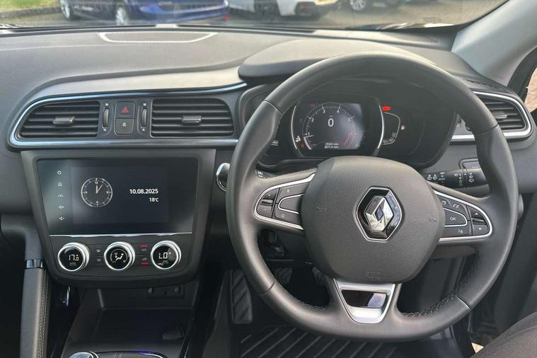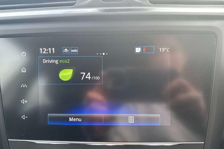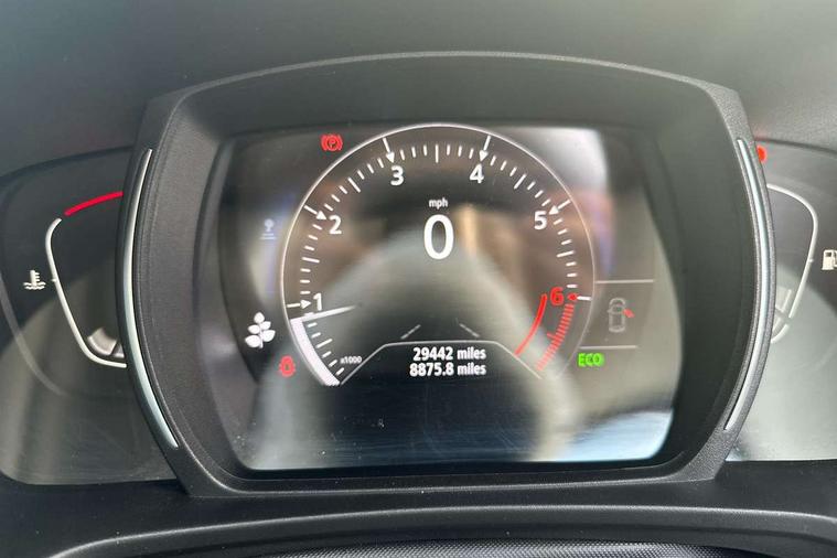 Cruise control + speed limiter, Digital speedometer with 7 TFT screen, Door/boot open warning light, Eco mode, Exterior temperature indicator, Front and rear parking sensors with rear parking camera, Gear change indicator, Lane departure warning system, Low fuel level warning light, Multi function trip computer, Oil level gauge, PAS, R-Link 2 Multimedia system + 7" touchscreen, TomTom + West European Map, DAB/FM/AM radio, bluetooth + hands free, USB/AUX, voice control, Rev counter, Smartphone integration, Gasoline particulate filter, 4x35W speakers with 3D sound, Fingertip controls for audio system, Two rear USB sockets, Automatic headlights, Automatic high/low beam, Automatic windscreen wipers with variable speed adjustment, Body colour door handles, Body coloured bumpers, Body coloured door mirrors, Bodyside mouldings with chrome inserts, Chrome roof rails, Chrome window surround, Day/night rear view mirror, Electric adjustable/heated/folding door mirrors, Extra tinted glass in rear windows and tailgate, Front and rear electric windows, Front and rear towing rings, Front fog lamps with cornering function, Halogen headlights, Heated rear windscreen, Integrated C shape indicators with side repeaters, Integrated fuel filler cap, LED daytime running lights, LED rear fog light, Rear wiper, Shark fin antenna, 12v socket in front, 3 height adjustable rear headrests, 3 seat rear bench, 60/40 split folding rear seat, Accessory power point, Adjustable dashboard illumination, Air recirculation system, Centre rear armrest with cup holder, Driver sunblind with illuminated mirror and ticket holder, Driver's seat with lumbar adjustment, Driver/passenger reading lights, Dual zone automatic climate control, Easy life quick folding rear seat, Faux leather wrapped steering wheel, Front courtesy lights, Front footwell illumination, Front/rear floor mats, Height adjustable driver's seat, Height adjustable front headrests, Height adjustable passenger seat, Height/reach adjust steering wheel, Illuminated boot, Illuminated centre console, ISOFIX child seat anchorage points attached on outer rear seats, Multi positional boot floor, Pollen filter, Rear courtesy lights, Rear passenger air vents, Sliding front centre armrest, Storage glovebox, Synthetic leather/cloth upholstery, ABS/EBD, Driver/passenger 2 stage auto adaptive airbags, Electronic parking brake, Emergency brake assist, ESP with ASR and UCL (understeer control logical), Front and rear curtain airbags, Front lateral airbags, Front seat belts warning, Height adjustable front seatbelts with double pretensioners, Hill start assist, Passenger airbag deactivation system, Rear seatbelt warning indicator, Side impact protection, Three point rear center seatbelt, Traction control, Tyre pressure monitor, Anti-drill door locks/ignition barrel, Deadlocks, Insurance approved Cat 1 alarm system, Insurance Approved Immobiliser, Key card hands free with walk away lock function, RAID (Renault Anti-Intruder Device) with automatic door locking, Remote central locking, 19'' Zeus diamond cut alloy wheels,