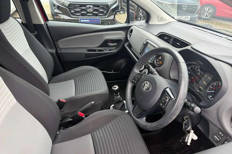4.2" coloured LED TFT multi information display, Adjustable speed limiter with switch on steering wheel, Analogue speedometer, Analogue tachometer, Bluetooth connectivity, Cruise control with switch on steering wheel, Electric power steering, External temperature gauge, Fuel indicator with low level warning, Key reminder warning, Lights on warning, Multi information display switches on steering wheel, Rear parking sensor, Reversing camera, Road sign assist - RSA, Touch 2 Go navigation system, Touch 2 multimedia system with 7" display, Trip computer, 6 speakers, DAB Digital radio, Steering wheel mounted audio/telephone switches, USB connection, Auto up and down function on drivers window, Automatic wipers, Body colour bumpers, Body colour door handles, Body coloured door mirrors, Chrome fog light surround, Daytime running lights, Electric adjustable heated door mirrors, Electric front windows, Follow me home headlights, Front fog lights, Green tinted glass, Headlight cut-off reminder, LED High mounted stop lamp, Projector headlights, Rain sensitive windscreen wipers, Rear combination lights bulb type, Rear window defogger, Rear wiper, Turning signal integrated indicators in door mirrors, 12v power outlet - front, 3 adjustable rear headrests, 3 spoke leather steering wheel, 60/40 split folding rear seat, Active headrests, Boot light, Driver and front passenger personal light, Driver and front passenger Whiplash Injury Lessening seats, Driver/passenger vanity mirrors with covers, Front and rear cup holders, Front map reading lights, Front seats with lumbar support, Glovebox, Height adjustable driver's seat, Height adjustable front head restraints, Illuminated entry system, Isofix seat fixing, Leather gearshift, Manual air conditioning, Removable rear parcel shelf, Sliding front seats, Spirit fabric upholstery, Tilt/telescopic steering column, 3 point seatbelts on all rear seats, ABS+EBD+Brake assist, Collision mitigation braking system, Emergency brake light system (EBS), Front passenger airbag on/off switch, Front seatbelt reminder, Height adjustable front seatbelts with pre-tensioners and load limiters, Hill start assist control (HAC), Rear child proof door locks, Rear seat belt reminder, Road sign information display, Seatbelt warning lamp and buzzer, Supplemental restraint system (SRS) airbags - 7 airbags including driver, front passenger, curtain, side and knee airbags, Toyota safety sense including Road sign assist, Pre collision system, auto high beam and lane departure alert), Tyre pressure warning system, Vehicle stability control VSC + traction control, Engine immobiliser, Power and remote door locking, Instrument panel in grey, Space saver spare wheel,