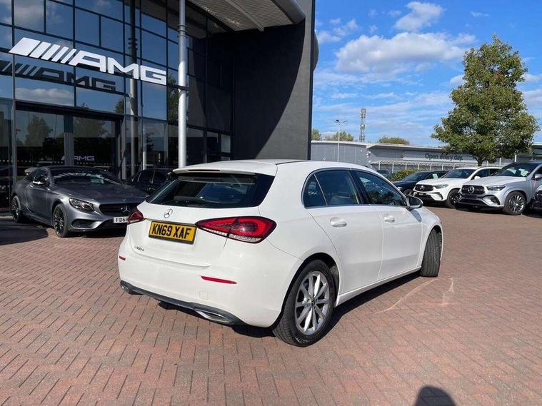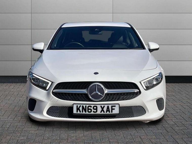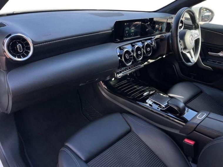 180 degree rear view camera with parking guidelines, 7" colour screen in instrument panel, 7" touchscreen media display, Active lane keep assist, Attention assist, Brake pad wear indicator warning light, Cruise control + speed limiter, Direct steering, DYNAMIC SELECT with a choice of driving modes (ECO, Comfort, Sport and Individual), ECO start/stop function, Fluid level warning indicator for fuel, oil, coolant and washer fluid, Hard-disk navigation, Hey Mercedes Voice activation, Lamp failure indicator, Mercedes me connect including emergency call system, accident recovery, breakdown and maintenance management, Outside temperature gauge, Radio aerial integrated into roof spoiler, Service indicator (ASSYST), Speed sensitive power steering, Trip computer, Lowered comfort suspension, DAB Digital radio, Dual bluetooth interface, 2 USB ports (type C), MBUX multimedia system with DAB digital radio and touchpad including satellite navigation, 4 Electric Front and Rear windows, Active aerodynamics with AIRPANEL in the front apron, Adaptive brake lights, Blue tinted glass, Body colour bumpers, Body colour door handles, Body colour side skirt, Body coloured door mirrors, Chrome beltline trim, Chrome weather strip, Diamond radiator grille with black pins with one louvre in silver + chrome insert, Electric adjustable and heated door mirrors with integrated LED side indicators, Exhaust system - Twin trapezoidal tailpipes in polished stainless steel, Headlamp assist automatic headlamp activation, Heated glass rear windscreen + timer control, LED high performance headlamps with integrated LED daytime running lights, LED tail lamp, LED third brake light, Rain sensor windscreen wipers, Rear fog lights, Rear wiper, 12V socket, 3 Spoke leather multi function steering wheel, 40:20:40 split folding rear seats, Air vents surround and cruciform nozzle in silver chrome, Artico man-made leather/Fleron fabric upholstery, Auto Mercedes-Benz child seat recognition sensor, Black roof lining, Controller on centre console with chrome surround, Cup holder and stowage compartment lighting, Floor mats, Freight packaging without tie-down hooks, Front centre armrest with storage compartment, Front comfort seats with adjustable head restraints, Front door sills with Mercedes Benz lettering, Front doors with ambient and signal light, Front footwell lights, Front reading lamps in left and right console downlighter, Front seat backs luggage nets, Front seat cushion length adjustment, Front signal exit lamp, Front vanity lights, Gearshift paddles on steering wheel, Handle recess/closing light, Height/reach adjustable steering column, Illuminated glove compartment stowage, ISOFIX Child seat top tethers and anchor fixings, Luggage compartment cover, Manual height adjustable front seats, Oddments tray lighting, Rear head restraints, Rear Reading Lamps, Seat occupancy sensor for front passenger seat, Spectacles compartment for driver, Storage compartment under load area floor, Stowage compartment in centre console with retractable cover, Sunvisors with illuminated vanity mirrors, Touchpad, Touchpad illumination, Twin front cupholders, Two zone thermotronic luxury automatic climate control, Light and sight pack - A Class, Seat comfort pack - A Class, 3 rear 3 point seatbelts, ABS with Brake Assist, Active bonnet, Active brake assist includes forward collision warning system with autonomous braking, Adaptive brake assist with hold function and hill start assist, Black seatbelts, Childproof locks manually operated for rear doors and electrically operated for rear power windows, Crash responsive emergency lighting, Driver and passenger head and side airbags, Drivers knee airbag, Dual stage driver/passenger airbags, Electronic parking brake, ESP curve dynamic assist, ESP with ASR, Front and rear seatbelt reminder, Tyre pressure monitoring system, Warning triangle and first aid kit, Window airbags, Alarm system/interior protection/immobiliser, Keyless Go, Remote central locking and crash sensor with emergency opening function, Dark carbon fibre interior trim, 17" 10 spoke light alloy wheels painted in vanadium silver, Summer tyres, Tirefit sealant kit,