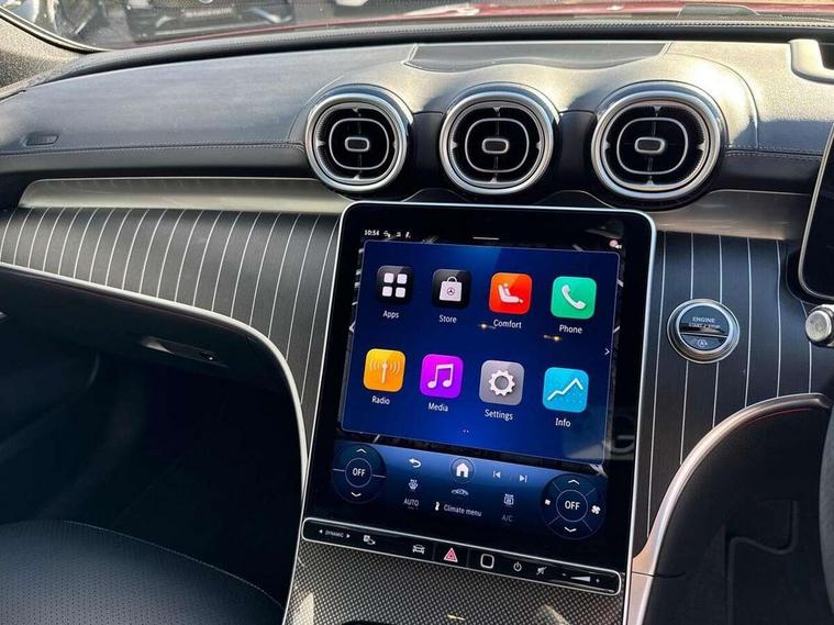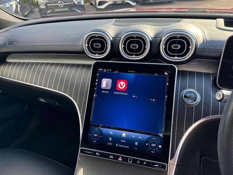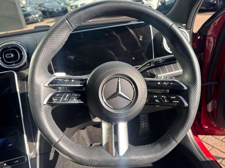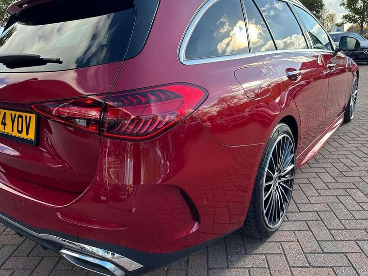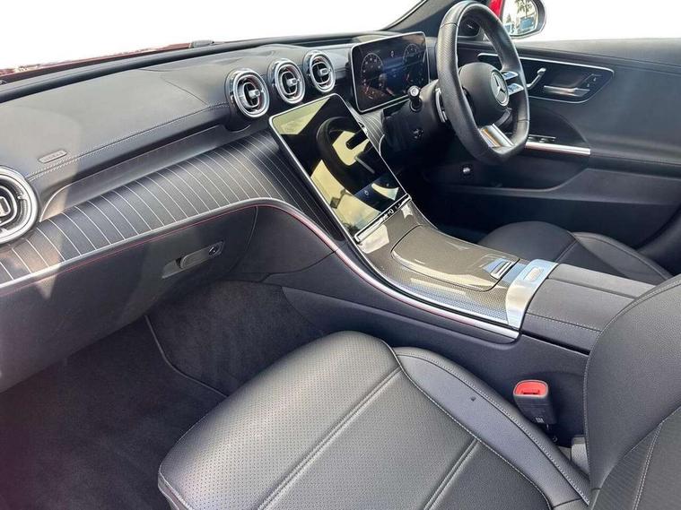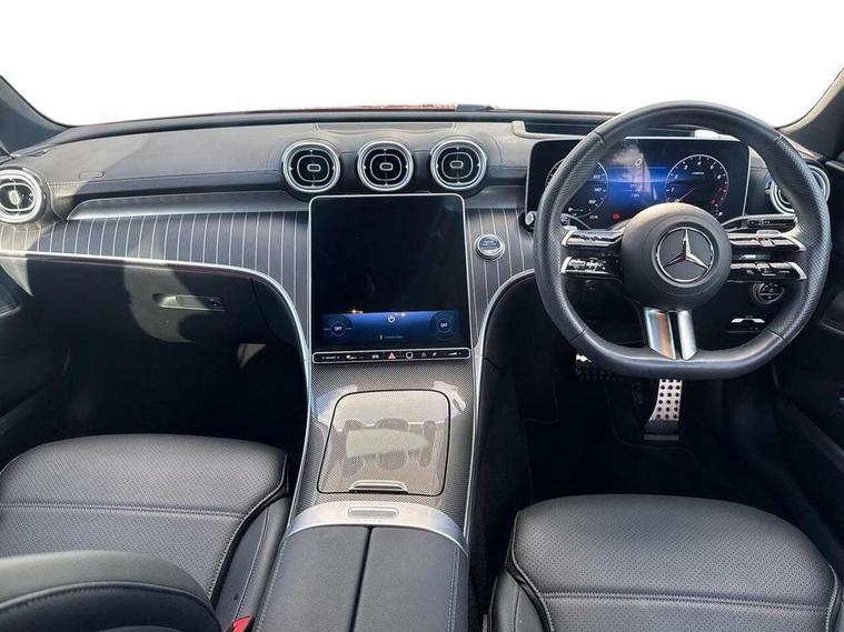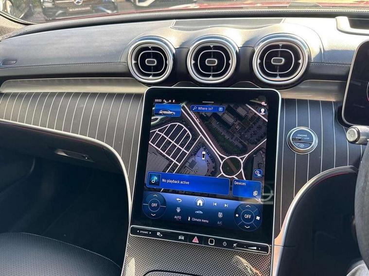 11.9" high resolution multimedia colour display, 12.3" digital instrument cluster display, Active parking assist with PARKTRONIC, Attention assist, DYNAMIC SELECT with a choice of driving modes (Comfort, ECO, Sport, Sport+, Individual), E-call, Extended MBUX functions, Finger print sensor, Fluorescent jacket for driver, Hard disc navigation, Head up Display, MBUX navigation premium, Mercedes me remote services, Outside temperature gauge, Service indicator (ASSYST), Smartphone integration, Sports direct steer speed sensitive steering, Status display for rear seat belts in instrument cluster, Tailgate, Traffic sign assist, Wireless charging system for mobile devices, 9G TRONIC 9 speed automatic transmission, Petrol Particulate Filter, Sport suspension, Burmester 3D surround sound system, DAB Digital radio, MBUX multimedia system, Adaptive brake lights, Adaptive high beam assist plus, Aluminium roof rails, AMG body styling front apron, rear apron and side skirts, AMG Line exterior, Body coloured bumpers, Body coloured door mirrors, Digital light LED headlamps, Electric panoramic glass sunroof, Electric windows with one touch opening/closing and obstruction sensors, Electrically adjustable and heated door mirrors, Heat insulating dark tinted glass, LED daytime running lights, LED Indicators, LED tail lights, LED third brake light, Noise acoustic glass, Radiator diamond grille with integrated Mercedes Benz star and louvre silver with chrome pins, Rain sensor with automatic windscreen wiper activation, Rear side wing doors, Rear wiper, Two visible exhaust pipes integrated into rear bumper, 3 seat bench in 2nd row, 40:20:40 split folding rear bench seat, Ambient lighting premium, Ambient lighting with projection of brand logo, AMG floor mats, AMG line interior, Artico man-made leather upholstery, Auto Mercedes-Benz child seat recognition sensor, Black roof liner, Comfort seats, Double cupholder in centre console, Electrically height/reach adjustable steering column, Folding rear seat backrest, Front and rear head restraints, Gearshift paddles on steering wheel, Illuminated door sills with Mercedes Benz lettering, Illuminated glove compartment stowage, Load compartment cover, Multifunction sports steering wheel in nappa leather, Rear top tether child seat ISOFIX attachment, Single front passenger seat, Sunvisors with illuminated vanity mirrors, THERMATIC 2 zone automatic climate control, AIR BALANCE Package - C Class, Boot comfort package - C Class, Easy pack tailgate - C Class, Energizing package plus - C Class, Interior light package - C Class, Keyless go comfort package - C Class, Memory package - C Class, Mirror package - C Class, Parking package with 360 degree camera - C Class, Stowage space pack - C Class, USB package plus - C Class, 3 rear 3 point seatbelts, Active bonnet pedestrian safety measure which detects an impact and raises bonnet, Adaptive brake system with HOLD function and brake drying in the wet, Anti-lock braking system (ABS), Black seat belts, Brake calipers with Mercedes-Benz lettering + perforated front brake discs, Child proof door locks, Drivers knee airbag, Drivers pelvis airbag, Dual stage driver/passenger airbags, Electric parking brake, Electronic Stability Programme (ESP), Front centre airbag between driver and front passenger seats, Front side airbags, Tyre pressure monitoring system, Warning triangle and first aid kit, Window airbags for driver, front passenger and rear passenger, Antitheft alarm system, Interior monitoring system and Increased antitheft protection, Central locking with interior switch, automatic locking and crash sensor with emergency opening function, Chrome surround electric key, Urban guard vehicle protection plus, Black open pore aluminium lines wood trim with centre console in metal structure finish, Dashboard, instrument panel and beltlines in ARTICO man made leather in nappa look, 19" AMG multi spoke light alloy wheels painted black with high sheen finish, TIREFIT with tyre inflation compressor,