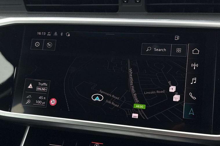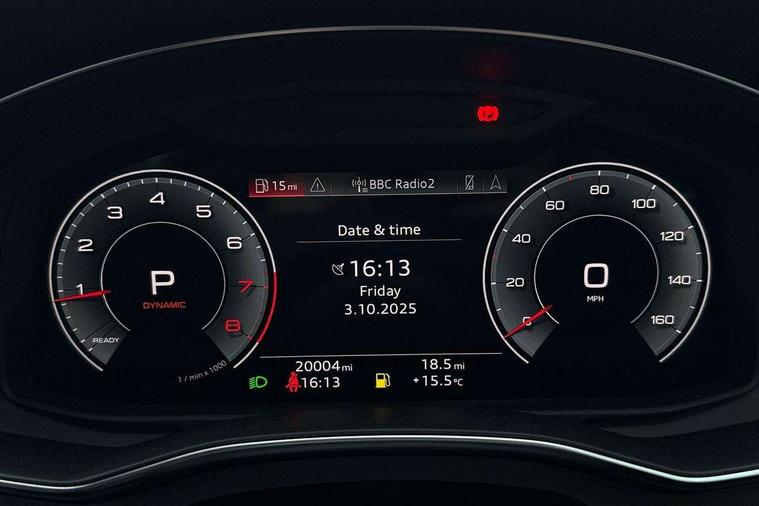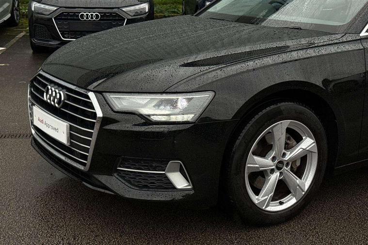 7" high resolution colour driver information display system, Audi connect safety and service (e-call), Audi connect with Amazon Alexa Integration, Audi drive select, Audi parking system plus - acoustic and visual park assist system for front and rear, Automatic start/stop system with coasting functionality, Bluetooth interface, Cruise control + speed limiter, Electric boot lid release, Lane departure warning system, Progressive steering, Rear view camera, Service interval indicator, Smartphone interface includes wireless Apple carplay/Android Auto, Voice control system, Standard suspension, Audi front music interface, Audi sound system, Auxiliary input socket, DAB Digital radio, USB connection, All weather LED headlights, Body colour bumpers, Body coloured door mirrors, Daytime running lights, Electric front/rear windows, Frameless auto dimming interior rear view mirror, Front intermittent wipers, Heat insulating darkened glass in side and rear windows, Heat insulating glass in windshield, LED rear lights, LED third brake light, Matt black rear diffuser with diffuser strip and tailpipes in chrome, Matt black side air intake grille with inlay in matt aluminium, Radiator grille in titanium black matt, single frame in chrome and horizontal struts in matt aluminium silver, Rain and light sensors, Rear boot, Rear side wing doors, 2 zone deluxe electronic climate control, 3 spoke high multi-function leather steering wheel with shift paddles, 4 way electric lumbar support for driver and front passenger, 40/20/40 split folding 3 rear seat bench in 3 parts with rear centre armrest, Black steering wheel insert, Centre armrest matches seat colour, Door sill trims with aluminium inlay, Front centre armrest, Front head restraints, Heated front seats, Height/reach adjust steering wheel, Illuminated sun visors with vanity mirrors, ISOFIX child seat mounting and Top Tether with front passenger airbag deactivation, Leather gear knob, Lunar silver cloth headlining, Rear headrests, Single front passenger seat, LED Interior Ambient Lighting Pack - A6, Non smoking pack - A6, Technology pack - A6, 3 point seatbelts on all seats, Airbags - Front side, front and rear including head, Audi pre-sense front, EBD - Electronic brakeforce distribution, Electromechanical parking brake, Electronic Stability Control (ESC) including ABS, ASR and EDL, Extended pedestrian protection measures, Manual child proof rear door locks, Seatbelt monitoring, Tyre pressure warning light, Warning triangle and first aid kit, Anti theft alarm with tow away protection, Anti-theft wheel bolts and wheel loosening detection, Immobiliser, Keyless Go, Remote central locking, Aluminium fragment inlay,