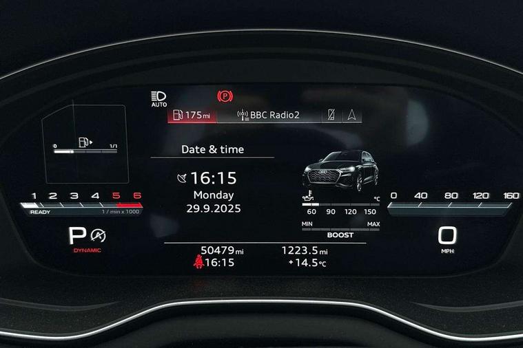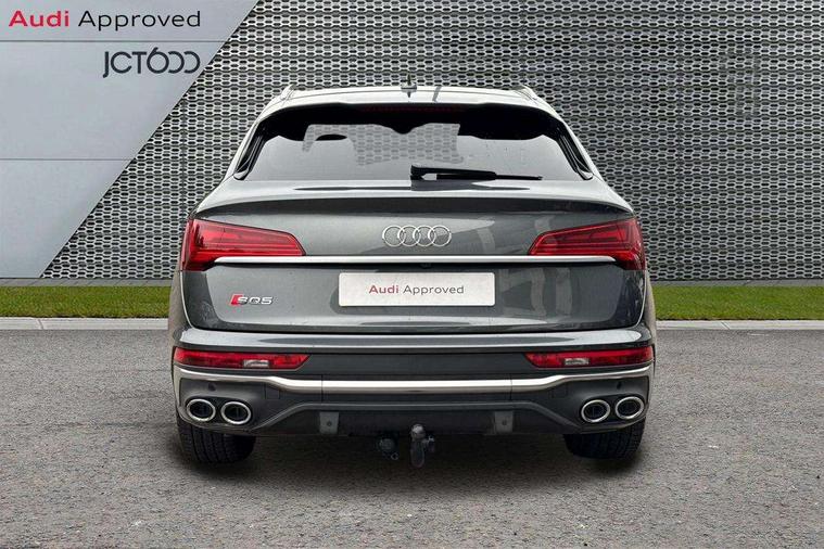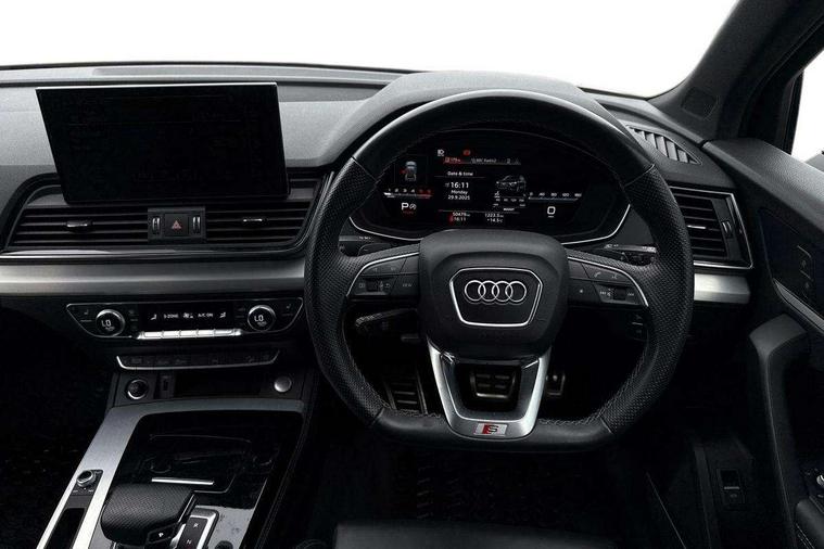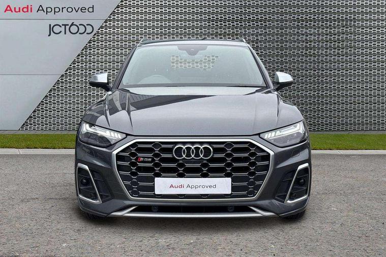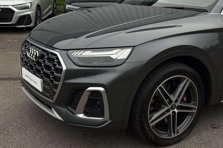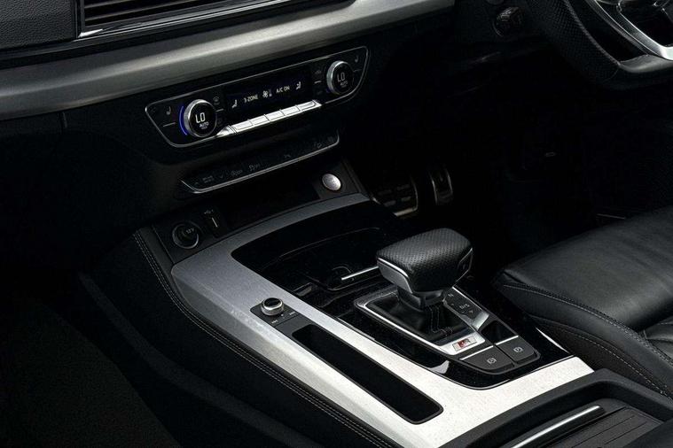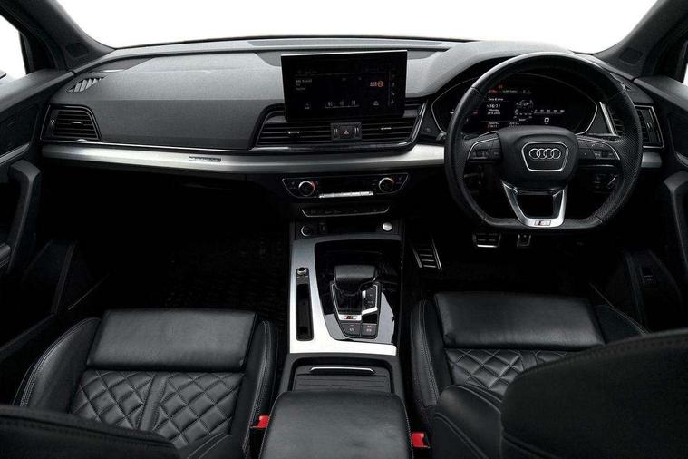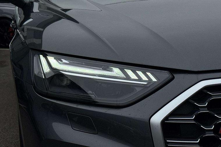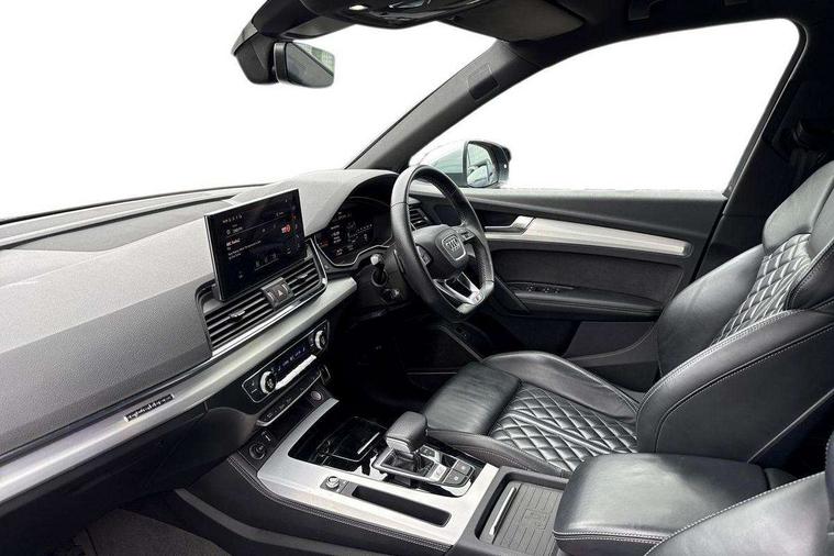 Acoustic front and rear parking sensor, Audi connect safety and service (e-call), Audi drive select, Audi phone box with wireless charging, Audi virtual cockpit plus with 12.3" screen and three different layout designs, Audi wireless smartphone interface, Automatic start-stop system with coasting functionality and efficiency programme, Bluetooth interface, Electro - mechanical power assisted steering, MMI navigation plus with 10.1" touch screen, Power tailgate, Reversing camera, Service interval indicator, Voice control system with Audi hotword activation "Hey Audi", 70 litre fuel tank and 24 litre AdBlue tank, Diesel particulate filter, Quattro on demand, S sport suspension, 2 x USB charging port with aux input socket, Audi sound system, DAB Digital radio, Acoustic windscreen, Aluminium door mirror housings, Aluminium roof rails, Audi beam, Auto dimming rear view mirror, Automatic headlights and windscreen wipers, Body colour underbody protection, Chrome plated exhaust trims, Door sills in Selenite silver, Electric adjustable/heated/folding door mirrors, Front and rear electric windows, Front radiator grille in honeycomb design, Headlight washers, Lower bumpers painted in contrast Manhattan grey, Rear chrome trim strip below lights, Rear privacy glass and rear side windows, Rear spoiler, Rear wiper, Roof bars, S front and rear bumpers, S Line side skirts, S rear diffuser in body colour, 3 rear headrests, 4 way electric lumbar support for driver and front passenger, 40:20:40 split folding rear seat with rear centre armrest, Black cloth headlining, Contrast stitching on seats, steering wheel and gear lever gaiter, Deluxe 3 zone electronic climate control, Fine Nappa leather upholstery with diamond pattern contrast stitching + front sport seats with S embossed logo, Front head restraints, Front/rear floor mats, Fully electrically adjustable seats, Gear lever in black leather, Heated front seats, Height/reach adjustable steering column, Illuminated door sill trims with S logo, ISOFIX child seat mounting and top tether, Massage function for front seats, Rear seat bench plus, Removable luggage compartment floor, Stainless steel pedals, Sunvisors with vanity mirrors, Trunk roller cover, Artificial leather pack - Q5, High gloss pack - Q5, LED interior light pack - Q5, 3 point seatbelts on all seats, 6 airbags - Driver, front passenger, curtain and side airbags, Electrically operated child locks on rear doors, Electromechanical parking brake, Electronic stabilisation control including ABS, ASR and EDL, Front passenger airbag deactivation, Hill descent control, Hill hold assist, Multi collision brake assist, Pop-up bonnet for pedestrian protection, Pre sense city, Seat belt force limiter, Seatbelt monitoring, Tyre pressure warning, Warning triangle and first aid kit, Anti theft alarm, Anti-theft wheel bolts, Keyless Go access/ignition system,