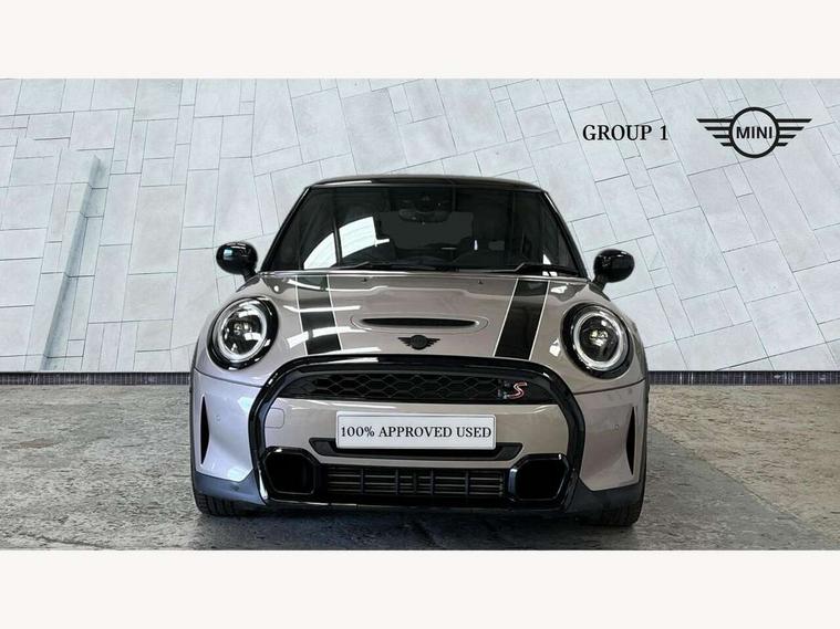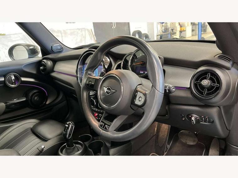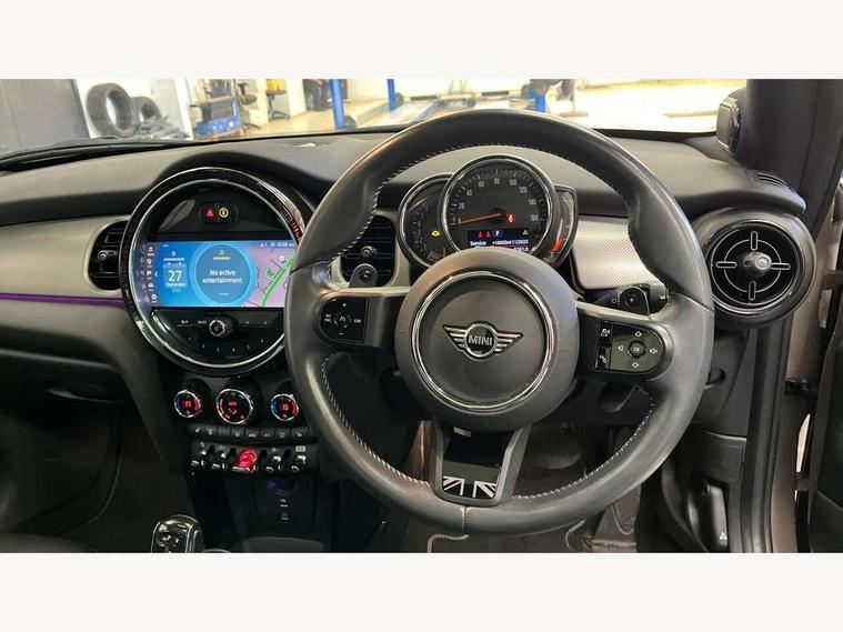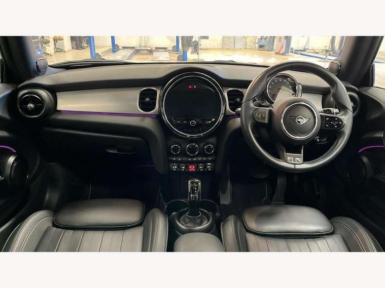 Apple CarPlay, Automatic start/stop function with brake energy recuperation, Compatible mobile phone bluetooth with audio streaming, Cruise control with brake assist, Electro-mechanical speed dependant steering assistance, Flexible car sharing preparation, Instrument cluster, MINI Driving Modes - centre toggle switch to control driving setting (sport, mid and green), Mini E-call, MINI TeleServices, On board computer, Rear park distance control, Service interval indicator, Double Vanos system, Fully variable valve control, High precision injection, Performance Control, Steptronic sport transmission with double clutch and steering wheel paddles, 8.8" touchscreen with LED ring, FM tuner and DAB digital radio, 3rd brake light, Automatic headlight activation switch, Bonnet scoop, Chrome line exterior - radiator grille bars, tailgate handle, lower front grille grating and rear central fog-light, Dynamic brake lights, Electric front windows, Heated rear window, Heated windscreen washer jets, LED headlight with closed ring and daytime driving lights, Metal door sill strips with Cooper S, Model logo Cooper S on right of tailgate, Rain sensor window wipers, Rear fog lights, Rear LED lights with union jack design, Rear window wiper, Side scuttle panel with integrated indicator, Sun/heat protection glass, White indicator lenses, 12V Accessory socket in centre console, 2 seat bench in 2nd row, 4 lashing eyes in luggage compartment, 60/40 split folding rear seat, Carbon black colour line - Knee roll and door armrest, Chrome interior highlights, Chrome line interior - air vents, gear lever base, door handles and speakers in doors, Cupholders, Front and rear head restraints, Front and rear isofix with front passenger airbag deactivation, Front floor mats in velour, Glove compartment, Height and length steering column adjustment, Interior lighting with 12 different colours across the dashboard, underneath door bezel with illuminated laser-engraved design on central display, Leatherette gearshift lever and handbrake gaiters, LED reading lights, vanity mirror lights, front foot well light and spotlight on front seats, Manual air conditioning, Mechanical seat adjustment - forward/back & backrest for front seats and driver seat height adjust, MINI yours badge on exterior pillar, Multifunction steering wheel, Passenger seat height adjuster, Satellite grey headlining including grab handles and clothes hooks, Single front passenger seat, Storage compartments in doors, Storage pocket on back of front seats, Sunvisors with vanity mirrors, Walknappa leather steering wheel with grey seam and MINI Yours badge on Piano Black lower steering wheel spoke, 3 point seatbelts on all four seats, 6 Airbags - front, side, head and seat belt tensioners, Anti-lock braking system (ABS), DSC - Dynamic Stability Control, Front and rear disc brakes, Two tone horn, Tyre pressure monitoring system, Alarm system with tilt sensor, monitoring doors, bonnet interior and tailgate, Electronic vehicle immobiliser, Start/stop toggle with keyless go, Tool kit,