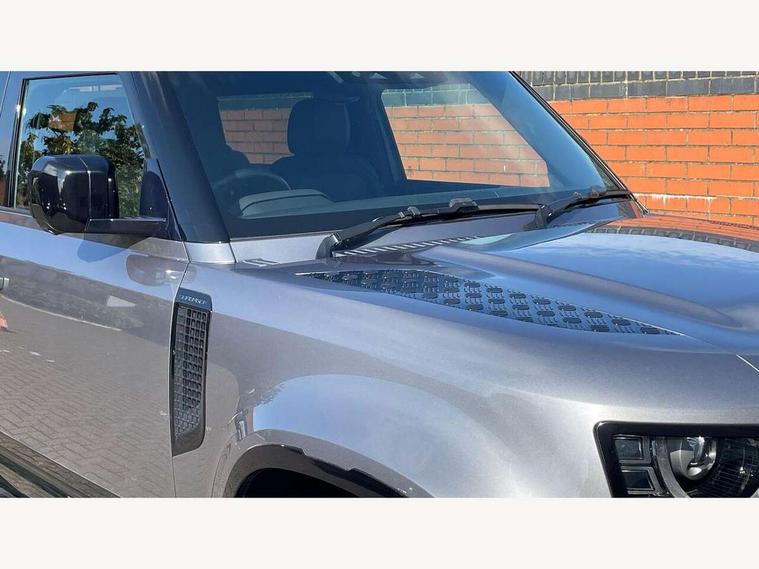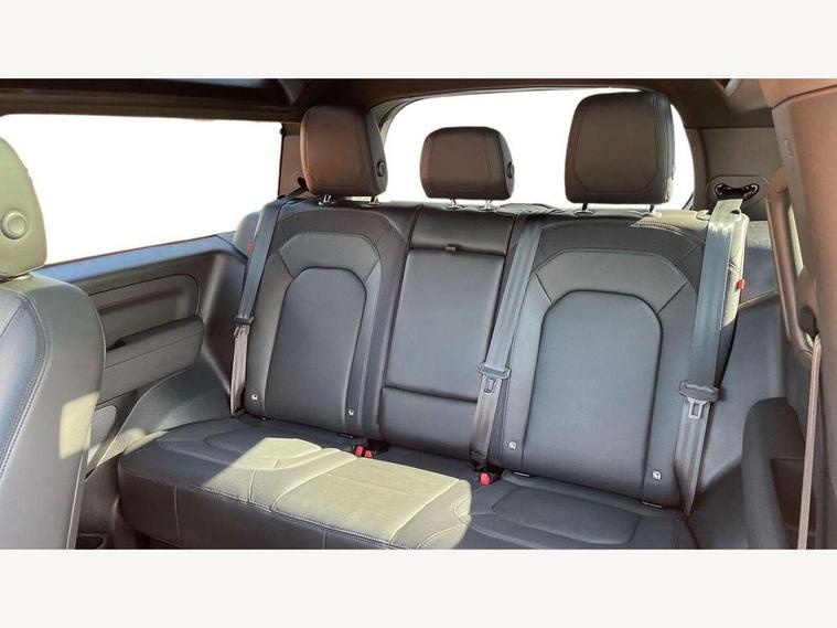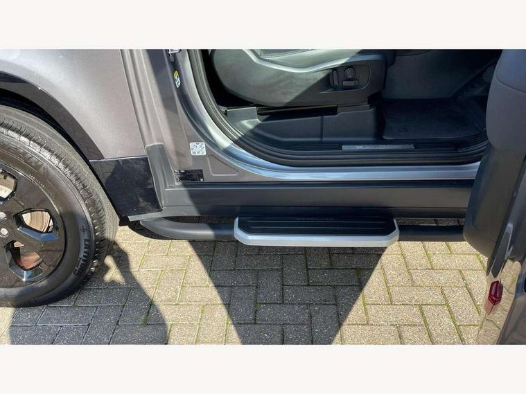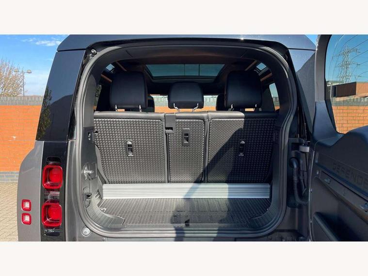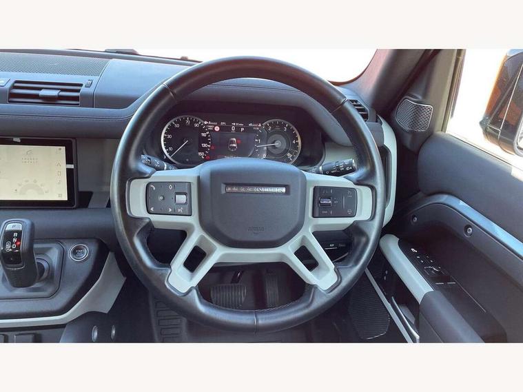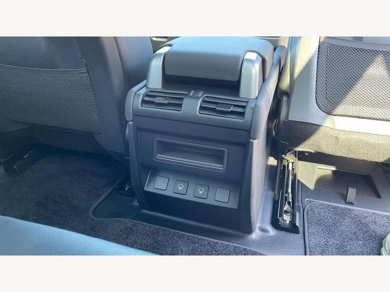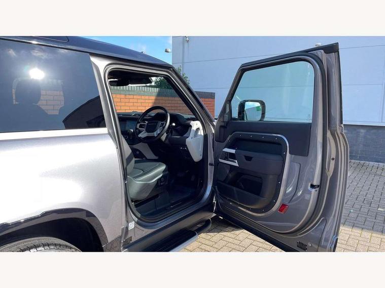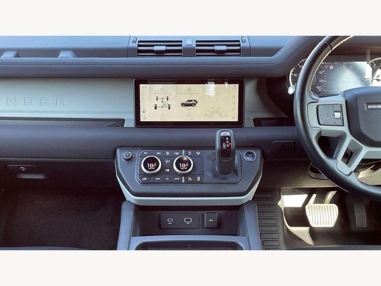 360 degree parking aid, 3D Surround Camera with 360 View, 180 Rear View, Front Traffic Detection, Forward Vehicle Guidance, Tow Hitch Assist and clear sight Ground View, Android Auto, Apple CarPlay, Assisted tailgate with soft close, Blind spot assist, Bluetooth system, Brake pad wear indicator, Clear exit monitor, Connected navigation pro, Driver condition monitor, Electric power assisted steering (EPAS), Lane keep assist, Push button start, Rear traffic monitor, Traffic sign recognition with adaptive speed limiter, Trip computer, Wade Sensing, 8 speed automatic transmission, All wheel drive system, Twin speed transfer box, DAB Radio (Digital Audio Broadcasting), Meridian 400w sound audio system with 11 speakers and subwoofer, Pivi pro connected, Automatic headlight levelling, Automatic headlights, Centre high mounted stop light, Electric heated/power fold door mirrors with approach lights and auto dimming driver side, Electric windows with one touch open/close and anti-trap, Follow me home lighting, Front fog lights, Heated rear window with timer, Heated windscreen, LED tail lights, Panoramic rear side glass, Privacy glass, Puddle lights, Rain sensing windscreen wipers, Rear fog lights, Rear wiper, Side hinged tailgate, Trailer stability assist, X-Dynamic badge, 12V power socket in loadspace, 3 seat bench in 2nd row, Alpine lights, Durable rubber cabin flooring, Durable rubber loadspace flooring, Footwell lights, Loadspace cover, Loadspace Hook, Multifunction steering wheel, Overhead stowage for sunglasses, Premium cabin lighting, Rear headrests, Rear ISOFIX, Rear reading lights, Single front passenger seat, Standard seat configuration, Storage glovebox, Sunvisors with illuminated vanity mirrors, Online pack with data plan - Defender, 5 x 3 point seatbelts, ABS, Brake hold function, Cornering brake control (CBC), Customer configurable autolock, DSC - Dynamic Stability Control, EBD - Electronic brakeforce distribution, Electric parking brake (EPB), Emergency brake assist, Emergency braking, ESP + traction control, Front airbags with passenger seat occupant detector, HDC - Hill descent control, Hill launch assist, Low traction launch, Remote for (e-Call, Optimised assistance call, InControl app, Climate, beep and flash and door), RSC - Roll stability control, Seat belt reminder, TPMS (Tyre pressure monitoring system), Alarm, Immobiliser, Intrusion sensor, Keyless entry, Locking wheel nuts,