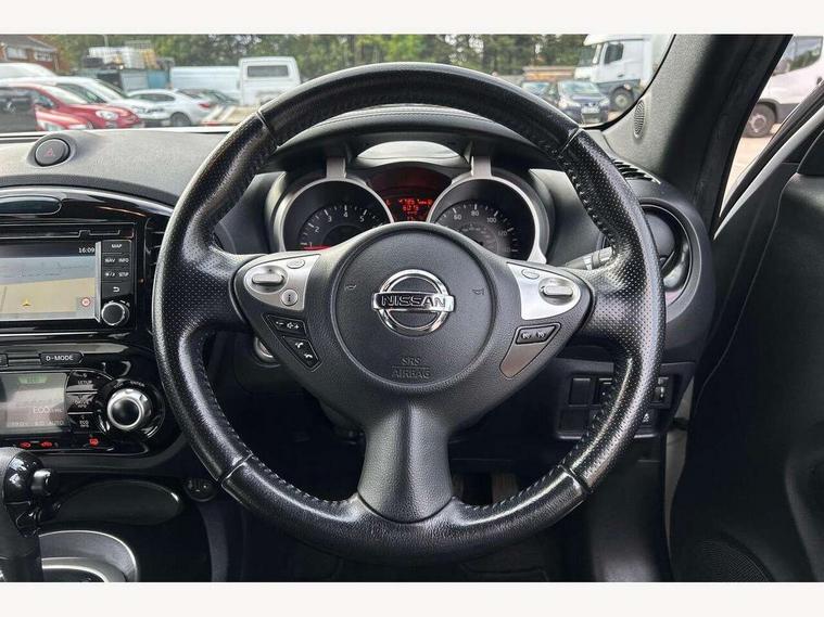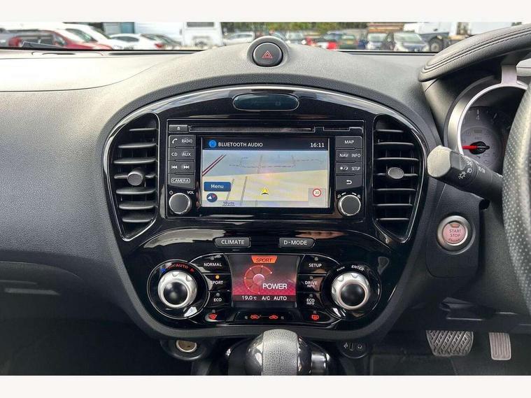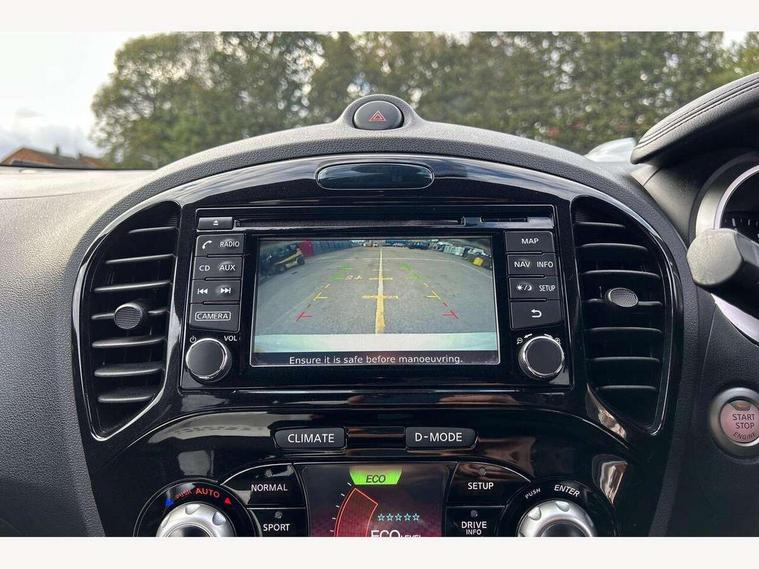 Bluetooth system, Colour rear view camera, Cruise control + speed limiter, Electric speed sensitive power steering, Nissan connect sat nav system, Push button starter, Service interval indicator, Trip computer, 6 speakers, Aux input, DAB Digital radio, Steering wheel mounted audio controls, Stereo radio/CD player and MP3 facility, USB port, 2 speed wipers+variable intermittent wipe, Automatic headlights, Body colour bumpers, Body colour door handles, Electric door mirrors, Electric folding door mirrors, Electric front/rear windows, Front fog lights, Heated door mirrors, LED daytime running lights, Privacy glass, Rain sensor, Rear wiper, 12V socket, 60/40 split folding rear seat, Artificial leather/suede upholstery, Climate control, Front armrest, Front cupholders x 2, Front door pockets with bottle holders, Front head restraints, Front seat belt pre-tensioners with load limiters, Gear shift indicator, Glovebox, Height adjustable driver's seat, Internal chrome door handles, Isofix child seat preparation, Leather steering wheel and gear knob, Luggage area under floor storage box, Map reading lamp, Passenger seat back pocket, Pollen filter, Rear headrests, Rear tonneau cover integrated into tailgate, Sports seats, Steering wheel rake adjustment, ABS + EBD + EBA, Child locks on rear doors, Driver and passenger airbags, Driver and passenger side airbags, ESP + traction control, Front and rear curtain airbags, Height adjustable front seatbelts, Passenger airbag deactivate switch, Three 3 point rear seatbelts, Tyre pressure monitoring system, VDC Dynamic Vehicle Control, Warning triangle and first aid kit, Alarm, Immobiliser, Intelligent Key, Remote central locking, 17" Sport alloy wheels, Tyre repair kit,
