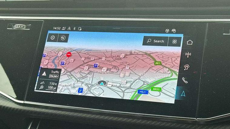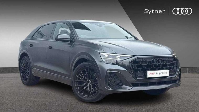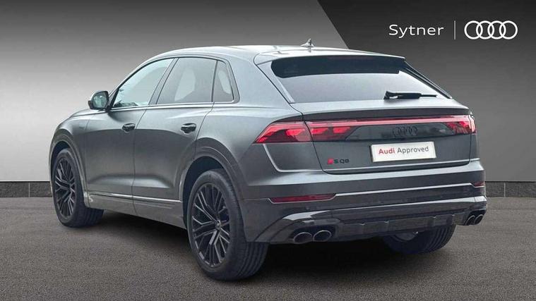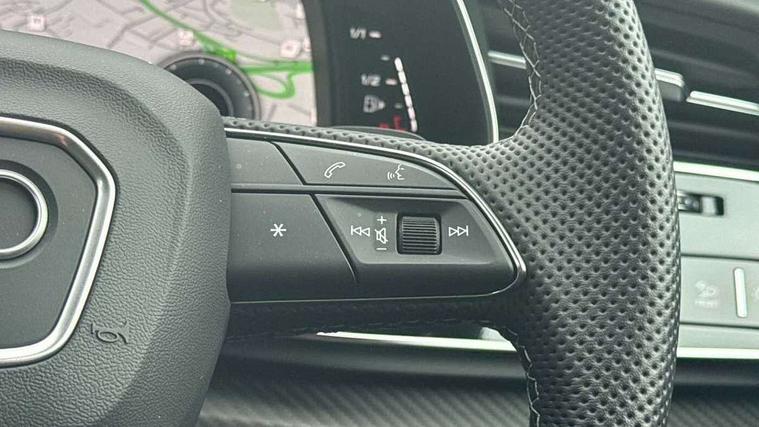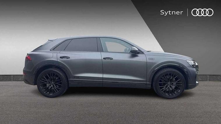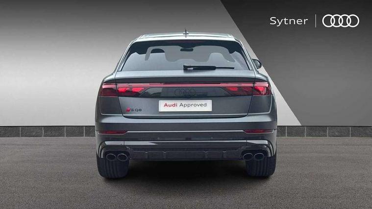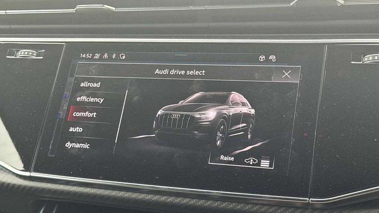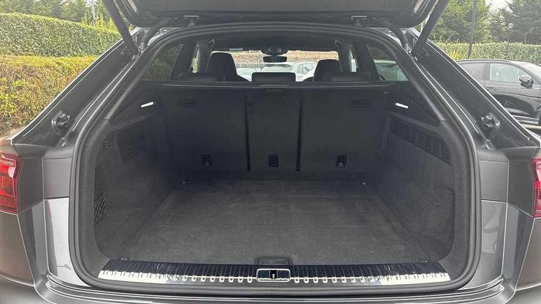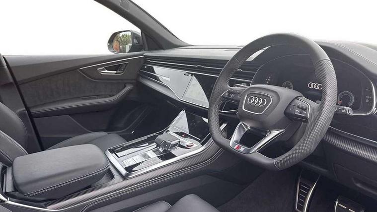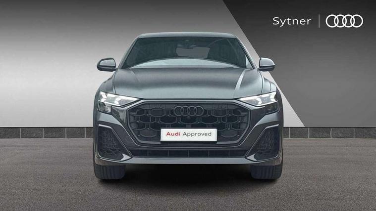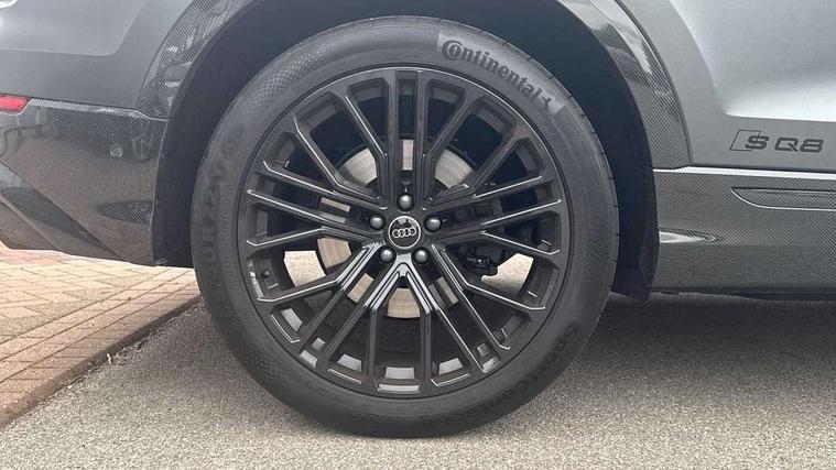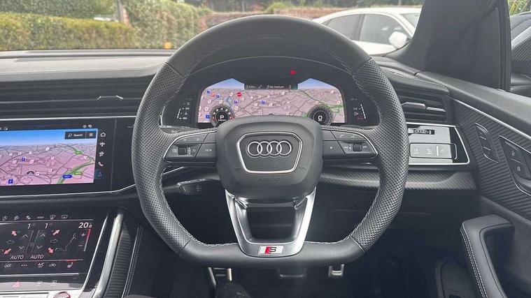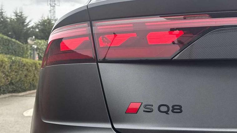 10.1" and 8.6" Dual colour touchscreens, 360 degree camera with top view, All wheel steering, Audi application store, Audi connect safety and service (e-call), Audi connect with Amazon Alexa Integration, Audi drive select, Audi phone box light with wireless charging, Audi virtual cockpit plus, Automatic start/stop system, Bluetooth, Electro-mechanical PAS, Head up Display, Low washer fluid indicator, MMI navigation plus with MMI touch, Natural voice recognition, On board computer, Operating buttons in black, glass look with haptic feedback, Power door closure, Power operated tailgate, Remote park assist plus, Service interval indicator, Smartphone interface includes wireless Apple carplay/Android Auto, 48V Mild hybrid technology, 85 litre fuel tank, Quattro all wheel drive with self locking centre differential, S specific Adaptive air suspension, Audi music interface with 2 USB ports with charge and data functions, Aux-in socket, Bang + Olufsen sound system, DAB Digital radio, 3rd brake light, Anthracite black door mirrors, Audi beam, Auto dimming frameless rear view mirror, Coming/leaving home lighting function, Digital OLED rear combination lamps, Electric front+rear windows, Electrically folding auto dimming/adjustable/heated door mirrors with memory function, LED side indicators and kerb view function for passenger side, HD Matrix LED headlights with Audi laser light, Headlight washers, Heat insulating glass in windshield, LED rear lights, LED signature daytime running lights, Platinum grey front spoiler lip and diffuser insert with honeycomb grille in black, Privacy glass - dark tinted rear and rear side windows from B-pillar backwards, Rain and light sensors, Rear side wing doors, Rear wiper, S specific dual brach chrome tailpipes on both the left and right, S specific front and rear bumpers, Singleframe grille surround in matte platinum grey, 3 bench rear seats in 2nd row, 3 spoke flat bottomed high multi-function leather sport steering wheel with gearshift paddles, 4 zone deluxe automatic climate control, 4-way lumbar support for front seats, 40:20:40 split folding rear bench seat, Black cloth headlining, Black leather instrument panel and centre console band with rock grey contrast stitching, artificial leather door armrest with contrast stitching, Comfort front centre armrest, Driver seat memory function, Electrically adjustable front seats, Front head restraints, Front/rear floor mats, Heated front and outer rear seats, ISOFIX child seat mounting for front passenger seat and 2 outer rear seats with top tether child seat mounting for all 3 rear seats, Luggage compartment sill protection in stainless steel, Power adjustable steering wheel, Rear centre armrest with 2 cupholders, Rear headrests, Seat cushion displaceable by 100mm in the ratio 60:40, Single front passenger seat, Stainless steel pedals, Sunvisors with illuminated vanity mirrors, Valcona leather upholstery + front super sport seats with S embossed logo, Ambient lighting package plus - Q8, Black styling pack plus - SQ8, City assist pack - Q8, 3 point seatbelts on all seats, Audi pre sense front, Driver and front passenger, front side and curtain airbags, Electromechanical parking brake, Electronic Stability Control (ESC) including ABS, ASR and EDL, Front passenger airbag deactivation, Hill descent control, Hill hold assist, Predictive pedestrian protection, Seatbelt monitoring, Traction control, Tyre pressure loss indicator, Warning triangle and first aid kit, Anti theft alarm with tow away protection, Anti-theft wheel bolts and wheel loosening detection, Electronically operated child lock, Immobiliser, Keyless go with remote central locking, Matte carbon twill inlays, 22" x 10.0J 10 spoke Y style black metallic audi sport alloy wheels, Tool kit, Tyre repair kit,