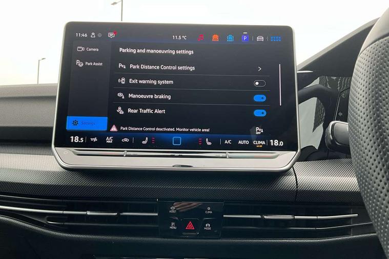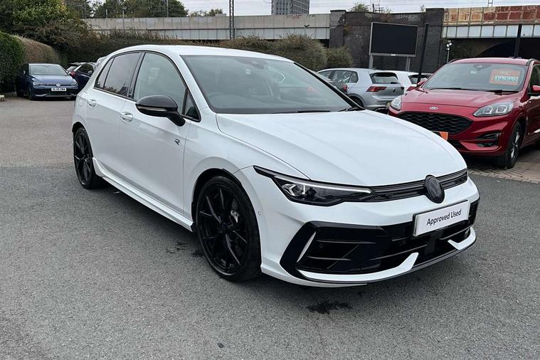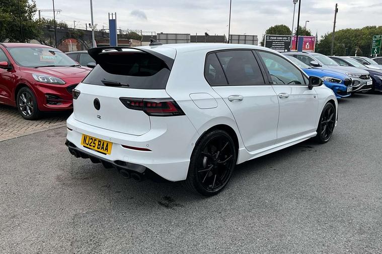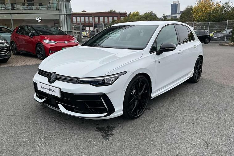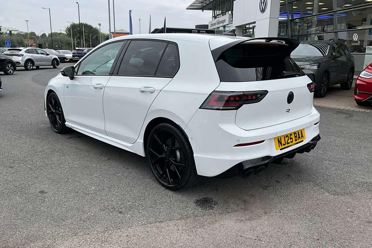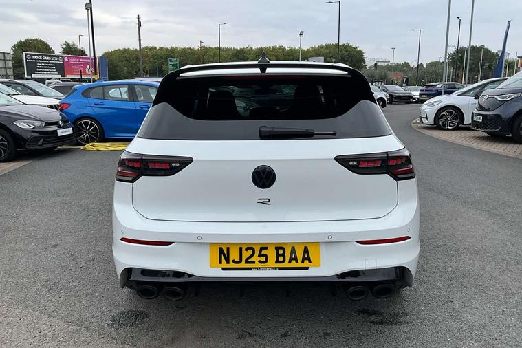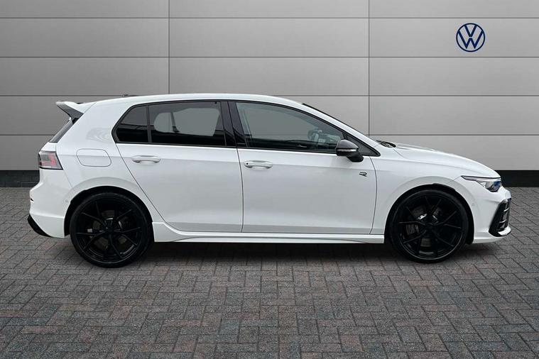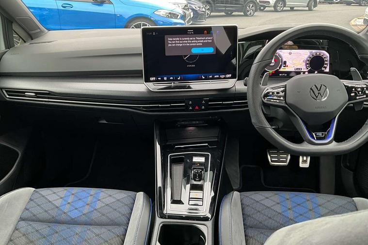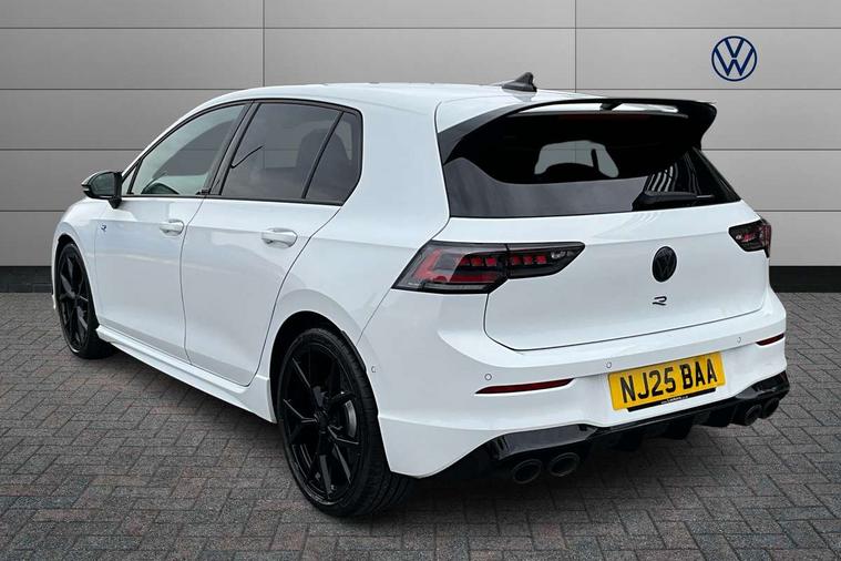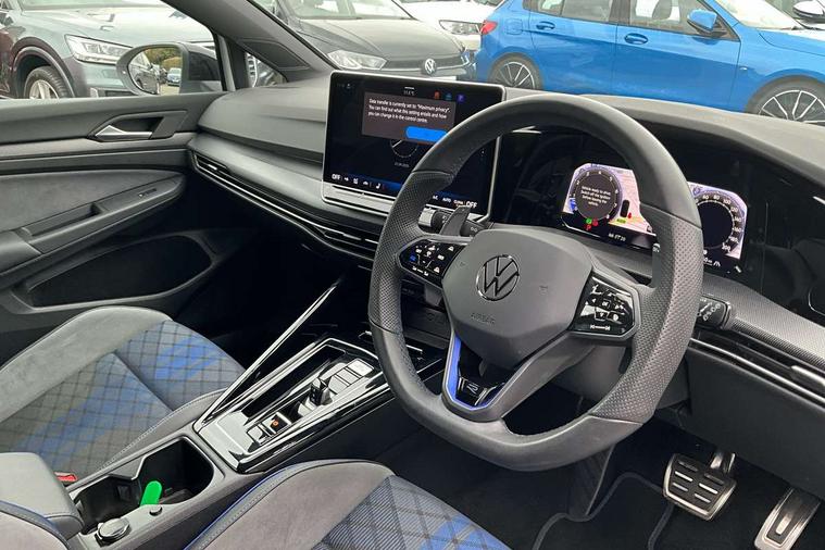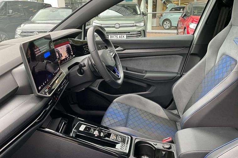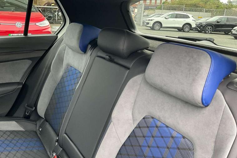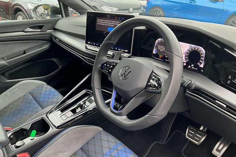 Activated carbon canister, Adaptive cruise control (ACC), Advanced driver attention and drowsiness monitor, Dynamic road sign display, E-Sim card for online connectivity, eCall emergency call system, Electronic maximum speed limit increased to 270 km/h, includes driving Modes 'drift' and 'special', larger roof spolier and GPS laptimer + G-Meter, Multi-color Digital cockpit pro, selection of different info profile possible, Multifunction front facing camera for distance control, Navigation system, Oncoming vehicle braking when turning including swerve support, Preparation for light assist system, Progressive steering, Side assist blind spot lane change system, rear traffic alert and exit warning system, Speed limiter, Speedo, rev counter, electronic odometer, trip, service interval display, exterior temperature and fuel gauge, Traffic jam assist, Voice enhancer and voice control, Warning signal and warning light for front and rear seatbelts not fastened, We connect plus preparation, We connect preparation, Wireless app connect, All wheel drive - 4Motion, Petrol Particulate Filter, Sports suspension, Start-stop system with battery regeneration (recuperation - energy recovery during braking), XDS electronic differential lock for improved traction and handling, 2 USB C ports in front, 2 USB charging sockets on the centre console in the rear charging capacity upto 45W, Comfort telephony + wireless charging, without wireless aerial connection, Digital radio reception (DAB), Diversity antenna for FM reception, Gaming platform via car app, Infotainment system with 12.9" display, Mobile phone interface with inductive charging feature, 3rd brake light, Auto dimming rear view mirror, Auto headlights, Automatic headlamp activation with Coming home and Leaving home feature, Black badge on B-pillar, Black mirror caps, Black strips on radiator grille and headlights, Body colour door handles, Darkened headlights, Darkened R Logos and VW logos in front, rear and on fender, Exhaust system with black tailpipe, Exterior ambient lighting with illuminated lighting animation and wake up/goodbye scenario, Exterior mirrors convex on the left and aspherical on the right, Front and rear electric windows, Front fog lamps and cornering light, Heat insulating windshield made of laminated glass, LED daytime running lights, LED matrix headlights with ambient light V2, advanced high beam, dynamic range contol with cornering, LED rear lamp with indicator, poor weather, R name plate, Rain sensor, Rear fog light on one side and reversing lights on both sides, Rear side wing doors, Rear tinted glass 65% light absorbing from B pillar backwards, Rear windscreen washer and wiper with interval delay, Remote electrically foldable door mirrors, puddle lights and reverse activated passenger's door mirror, Welcome light with surround lighting, 12V socket in front centre console, 12V socket in luggage compartment, 3 rear head restraints, 3 seat bench in 2nd row, 30 colour ambient lighting, illuminated center console storage compartment in front, Air care climatronic 3 Zone automatic climate control with rear air conditioning control panel, Aluminium gearshift handle, Brushed stainless steel pedals, Carpet mats, front and rear, Front centre armrest, Integrated front head restraints, ISOFIX anchors for child seats on outer rear bench seats and on front passanger seat compatible for i-Size, Luggage compartment lighting, Rear cupholder and loadthough, Single front passenger seat, Soul black instrument panel, Split folding backrest with centre armrest and unsplit rear seat bench, Storm grey roof lining, Sun visors with illuminated vanity mirrors, Driver assistance pack - Golf DSG Estate/Hatchback, R styling pack - Golf, Technology park and comfort pro package - Golf Hatchback, 3 point height adj front seatbelts + pretensioners, 3 rear three point seatbelts, ABS, Autonomous emergency braking front assist with pedestrian and cyclist monitoring, Child locks on rear doors, Disc brakes in rear incl. brake calipers in black with darkened R-logo, Driver and front passenger airbag with front passenger airbag deactivation, Electronic parking brake with auto hold, ESC (Electronic Stability Control), Extended pedestrian protection measures, Hill start assist, Two tone horn, Tyre pressure loss indicator, Volkswagen roadside assistance, Anti theft wheel bolts, Preparation for alcohol interlock, Wheel hub cover with darkened R-logo,