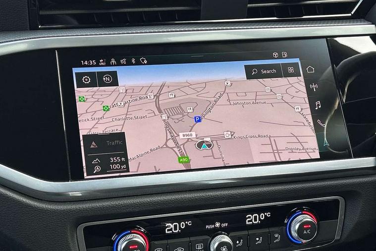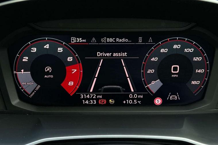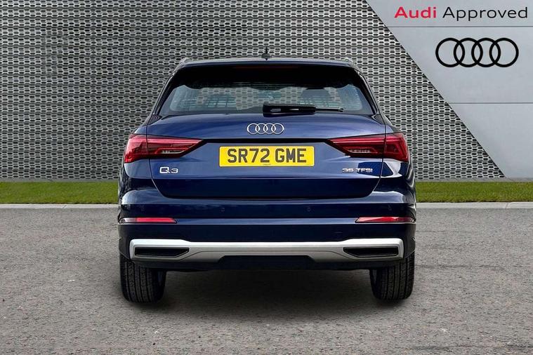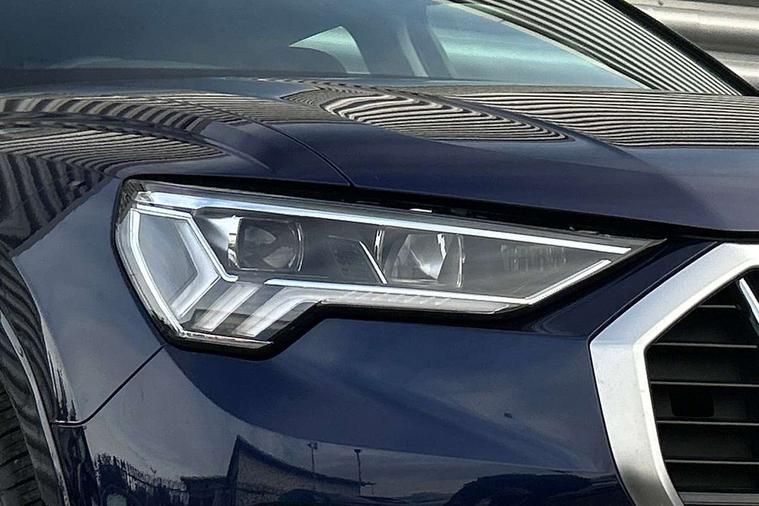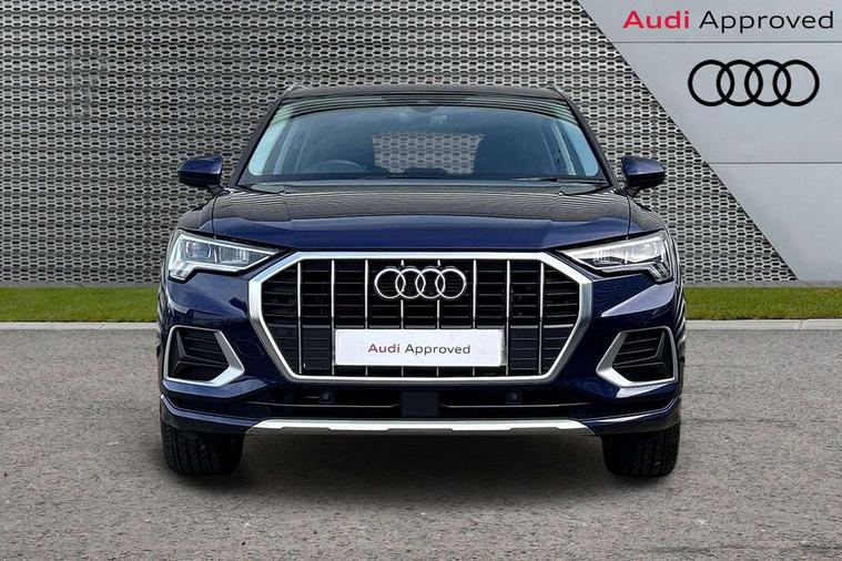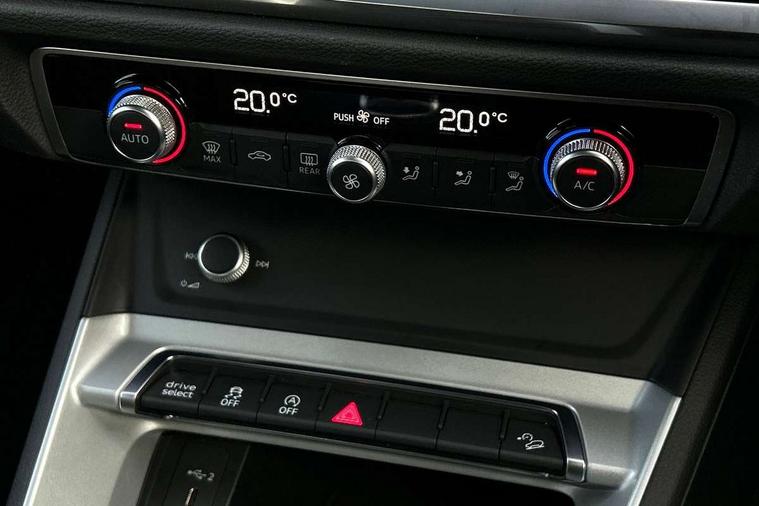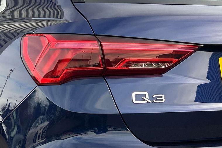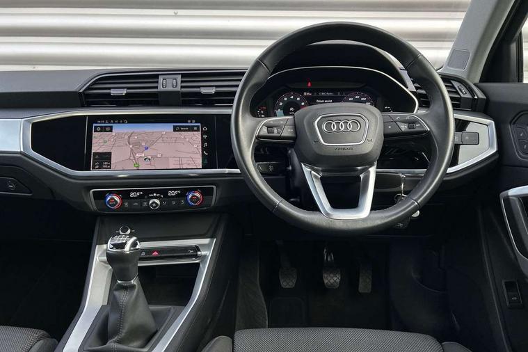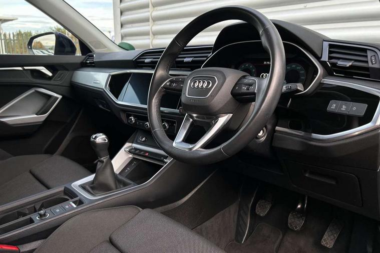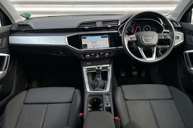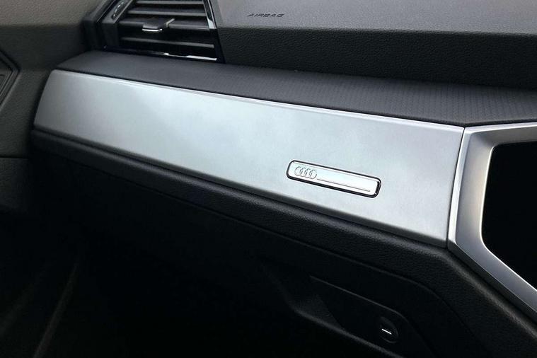 Amazon alexa Integration, Audi drive select, Audi lane departure warning, Audi Virtual Cockpit - 10.25" display, Bluetooth interface, Camera based traffic sign recognition, Cruise control + speed limiter, Legal emergency call, MMI Navigation Plus with high resolution 10.1 inch touchscreen colour display, Power operated tailgate, Progressive steering, Rear parking sensors, Service interval indicator, Smartphone interface includes wireless Apple carplay/Android Auto, Start stop system with recuperation, Voice control system with natural language interaction, Standard suspension, 2 USB-C ports with charge and data functions, 6 passive loudspeakers, DAB digital radio module, Acoustic windscreen, Aluminium roof rails, Aluminium window trim, Auto dimming frameless rear view mirror, Body coloured bumpers, Electrically folding, adjustable and heated door mirrors with integrated LED side indicators and kerb view function for passenger side, Front and rear electric windows, Front fog lights, Front side air inlets in matt selenite silver, Front spoiler in matt selenite silver, Grille vertical bars in aluminium silver/Matt, High gloss black finish B and C pillars, LED headlights with LED daytime running lights, LED rear lights, LED third brake light, Rain and light sensors, Rear diffuser strip in matt selenite silver, Rear side wing doors, Rear wiper, Titanium black radiator grille, Variable front intermittent wipers, 12V socket in rear centre console, 3 seat bench in 2nd row, 3 spoke multi-function leather steering wheel, 40:20:40 folding with manual adjustment for 60:40 forwards/backwards position and backrest angle, Door sill trims with aluminium inlay, Dual zone electronic climate control, Front and rear floor mats, Front and rear headrests, Front and rear roof module including reading lights, Front centre armrest, Glove compartment lighting, Height and reach adjustable steering wheel, ISOFIX child seat mounting for front passenger with airbag deactivation and outer rear seat including top tether attachment point for outer rear seats, Luggage compartment light, Lunar silver cloth headlining, Manual front seats with height adjustment, Single front passenger seat, Stainless steel luggage compartment sill finisher, Non smoking pack - Q3, 3x3 point rear seatbelts, 6 airbags - Driver, front passenger, curtain and side windows, Audi pre-sense front with pedestrain and cyclist recognition, Electromechanical parking brake, Electronic stabilisation control including ABS, ASR and EDL, Front seatbelt reminder, Hill descent control, Hill hold assist, Manual child lock in rear doors, Pre sense basic, Seatbelt monitoring, Tyre pressure warning, Warning triangle and first aid kit, Anti theft alarm, Anti theft wheel bolts, Immobiliser, Remote central locking, Detail dashboard around MMI touch colour display in glass look, black with surround in aluminium look, Micrometallic silver inlay,