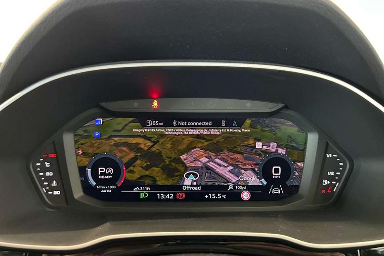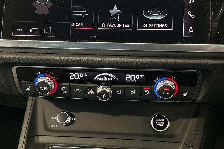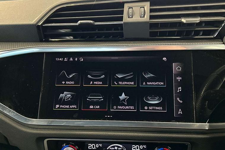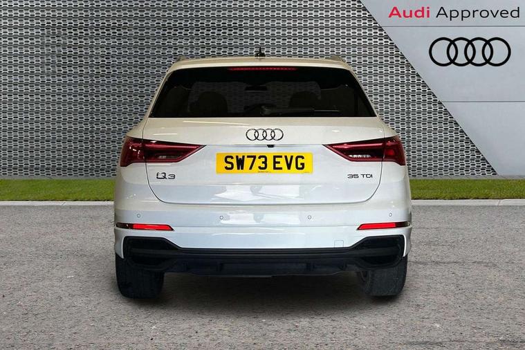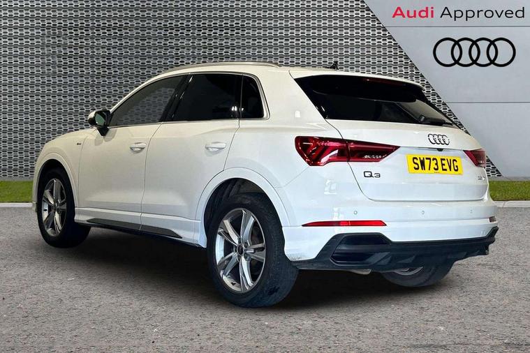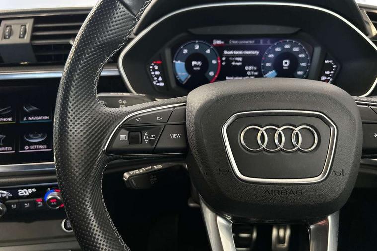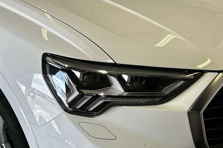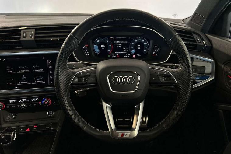 Amazon alexa Integration, Audi drive select, Audi lane departure warning, Audi Virtual Cockpit - 10.25" display, Bluetooth interface, Camera based traffic sign recognition, Legal emergency call, MMI Navigation Plus with high resolution 10.1 inch touchscreen colour display, Power operated tailgate, Progressive steering, Service interval indicator, Smartphone interface includes wireless Apple carplay/Android Auto, Start stop system with recuperation, Voice control system with natural language interaction, Diesel particulate filter, Sports suspension, 2 USB-C ports with charge and data functions, 6 passive loudspeakers, DAB digital radio module, Acoustic windscreen, Aluminium roof rails, Aluminium window trim, Anthracite black radiator grille, Auto dimming frameless rear view mirror, Body colour front spoiler blade, Body coloured bumpers, Electrically folding, adjustable and heated door mirrors with integrated LED side indicators and kerb view function for passenger side, Front and rear electric windows, Front fog lights, Front side air inlets in matt platinum grey, Grille vertical bars in aluminium silver/Matt, High gloss black finish B and C pillars, LED Dynamic rear indicators, LED headlights with LED daytime running lights, LED rear lights, LED third brake light, Privacy glass dark tinted rear and rear-side windows (from B-pillar backwards), Rain and light sensors, Rear diffuser grille in grained matt black, Rear diffuser strip in matt anthracite black, Rear side wing doors, Rear wiper, S line badges on front wings, S Line front and rear bumpers, Side skirt insert in matt Platinium grey, Variable front intermittent wipers, 12V socket in rear centre console, 3 seat bench in 2nd row, 3 spoke leather multifunction steering wheel features S badging and grips in perforated leather with contrast stitching, 40:20:40 folding with manual adjustment for 60:40 forwards/backwards position and backrest angle, Adjustable rear seat bench/backrest with centre armrest and cupholder, Black cloth headlining, Dual zone electronic climate control, Front and rear black floor mats with contrast stitching in rock grey, Front and rear headrests, Front and rear roof module including reading lights, Front centre armrest, Glove compartment lighting, Height and reach adjustable steering wheel, Illuminated door sill trims with S logo, ISOFIX child seat mounting for front passenger with airbag deactivation and outer rear seat including top tether attachment point for outer rear seats, Luggage compartment light, Manual front seats with height adjustment, Perforated leather gearknob, Single front passenger seat, Stainless steel luggage compartment sill finisher, Stainless steel pedals, Ambient lighting pack - Q3, Non smoking pack - Q3, 3x3 point rear seatbelts, 6 airbags - Driver, front passenger, curtain and side windows, Audi pre-sense front with pedestrain and cyclist recognition, Electrically operated child locks on rear doors, Electromechanical parking brake, Electronic stabilisation control including ABS, ASR and EDL, Front seatbelt reminder, Hill descent control, Hill hold assist, Pre sense basic, Seatbelt monitoring, Tyre pressure warning, Warning triangle and first aid kit, Anti theft alarm, Anti theft wheel bolts, Immobiliser, Remote central locking, Aluminium look interior elements, Dark matt brushed aluminium inlay, Detail dashboard around MMI touch colour display in glass look, black with surround in aluminium look, Leatherette door armrest,