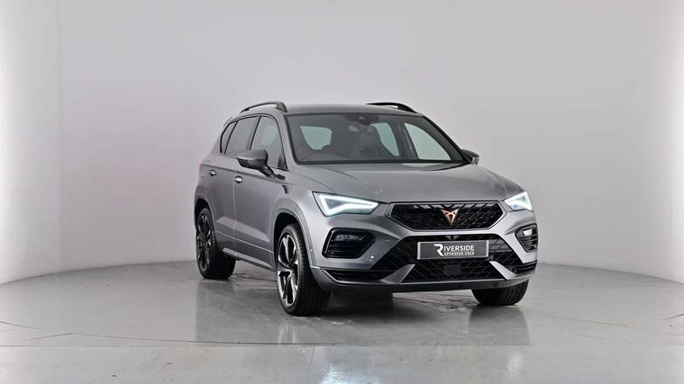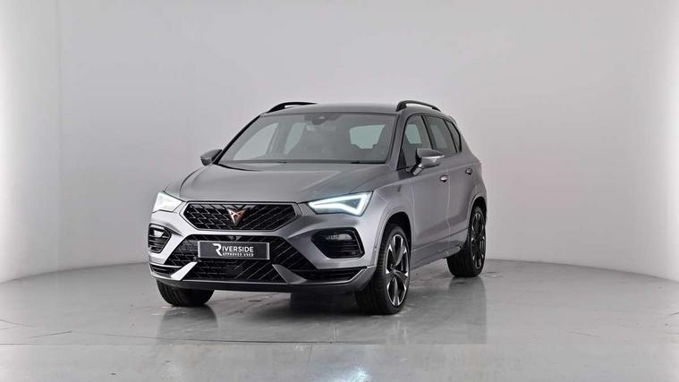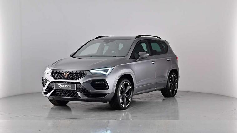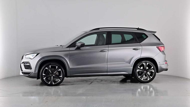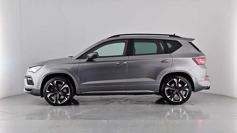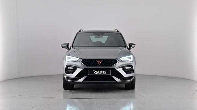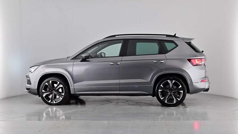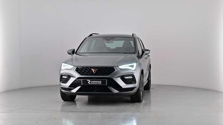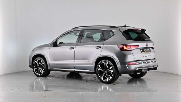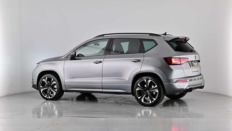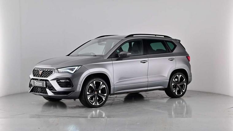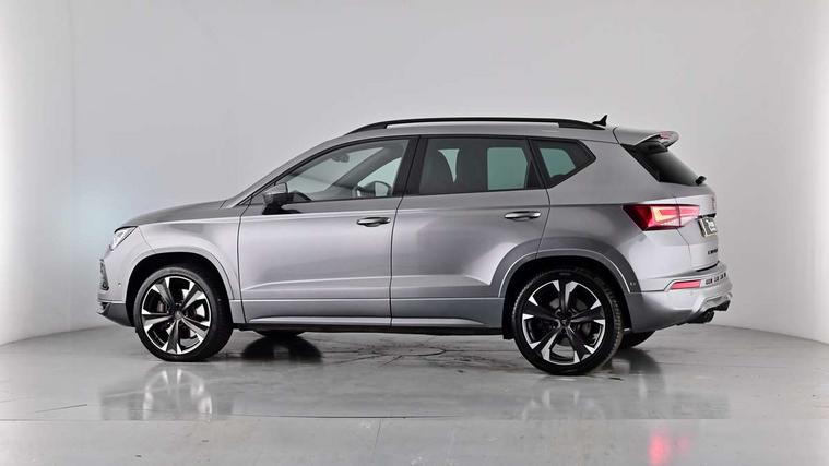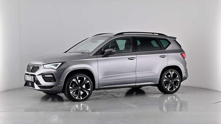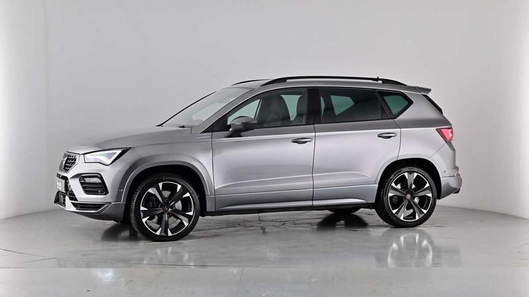 CUPRA drive profile -Normal, Sport, CUPRA and Individual modes, steering/throttle response, gearshift mode, sound actuator and dynamic chassis control, Digital cockpit, E-call, Electric tailgate with virtual pedal, Front and rear view camera, Outside temperature gauge, Progressive power assisted steering, Self parking functionality (includes front and rear parking sensors), Top view camera, Trip computer, Wireless full link smartphone integration, Wireless phone charger, CUPRA sport suspension, Beats audio system, Steering wheel mounted audio/phone controls, Body colour bumpers with dark aluminium diffusor, Body coloured wheel arch surrounds, Dark tinted rear windows, Daytime running lights, Door mirrors with welcome CUPRA light silhouette, Dynamic headlight range control with self adjusting whilst driving, Electric adjustable/heated/folding door mirrors, Front and rear electric windows, Front grille frame in chrome, Full LED headlamps with lens and LED front fog lamps with cornering function, Gloss black door mirrors, Gloss black roof rails, Gloss black side mouldings, Gloss black side window trim, Illuminated aluminium front door sill, LED rear tail lights with dynamic indicators, Rear fog lights, Rear side wing doors, Rear spoiler, Rear wash/wipe, Specific CUPRA design front bumper, Third brake light, Visible twin black exhaust pipes in both sides with dark aluminium diffuser, 12v socket in front, 3 seat bench in 2nd row, 60/40 split folding rear seat, Aluminium pedals, Cupra steering wheel emblem, Dual zone climate control, Electric driver seat with memory function, Front and rear head restraints, Front centre armrest, Front seat back storage pockets, Heated front seats, Heated steering wheel, Height adjustable driver and passenger seat with lumbar adjustment, ISOFIX points in outer rear seats with top tether anchorage points, Leather steering wheel and gear knob, Multicoloured ambient lighting with LED interior illumination, Pedal cluster, Petrol blue leather bucket seats, Rear armrest and easy back seat release mechanism from boot, Single front passenger seat, Steering wheel mounted gearshift paddles, Storage compartment in roof console for sunglass, Storage compartment under driver's seat, Convenience pack - Ateca, Interior lighting pack - Ateca, Navigation system plus pack with DAB - Ateca, Safe and driving pack with High beam control - Ateca, 3x3 point rear seatbelts, ABS, Traction control system (TCS), Electronic stability control (ESC) and Electronic differential lock system (XDS), Airbags - Driver and front passenger airbag with deactivation, front side, two curtain and driver's knee airbags, Black brake callipers with CUPRA logo, Electric parking brake with auto hold function, Front and rear seatbelt reminder, Front assist with autonomous emergency braking, Hill hold control, Manual rear child locks, Single tone horn, Tiredness recognition system, Tyre pressure monitoring system, Alarm, Keyless entry, Locking wheel bolts,