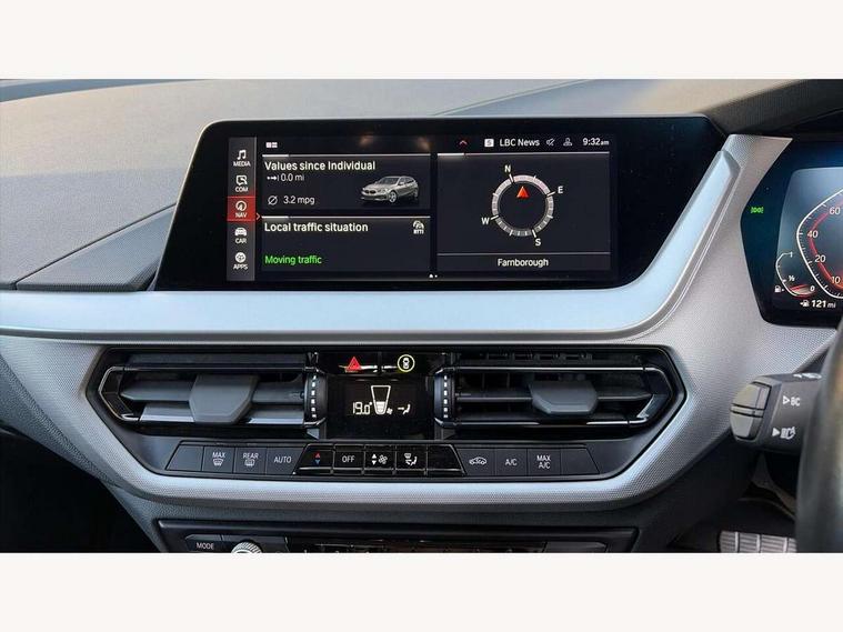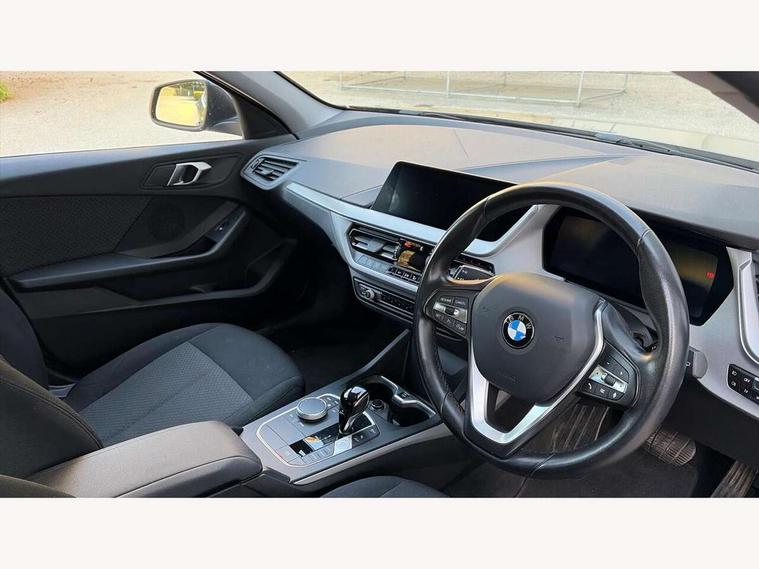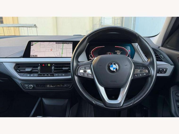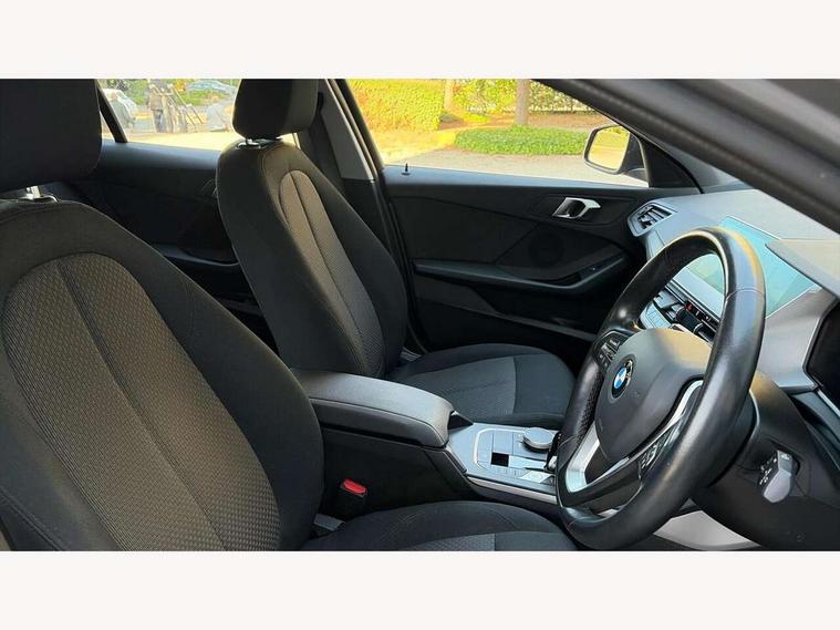 Active guard plus, Attentiveness assist, BMW ConnectedDrive online services, BMW Teleservices, Check Control warning system for monitoring of lights and door/luggage compartment open warning, Cruise control with brake assist, Eco pro mode, Electric power steering with Servotronic steering optimised at all speed ranges, Front axle single joint with specific axle kinematics to minimise drive influences on steering + provide increased rigidity agile driving behaviour, Integrated owners handbook, Lane departure warning system, Oil sensor for level and grade, On board computer, Optimum shift indicator, Personal Profile, Pull away assistant, Rigidly mounted rear subframe - Multi link construction with separate spring / damper configuration and excellent driving characteristics, Speed limit Info including no-overtaking indicator, Speed limiter, Aluminium lightweight construction, Anti roll bar front and rear, Balancer shaft, Double VANOS twin scroll turbocharging system, Drive Performance Control, Electronic differential lock, High precision injection, Petrol Particulate Filter, Suspension with twin tube gas filled shock absorbers with degressive characteristic curve, VALVETRONIC engine management, DAB Digital radio, Auto dimming rear view mirror, Automatic windscreen wipers and automatic headlight, Body colour door handles, Body colour mirror caps, Chrome exhaust twin tailpipes round 90mm in left, Direction indicator side lights in exterior mirrors, Fading support, Follow me home headlights, Front and rear bumper system with replaceable deformation elements, Front and rear electric windows with open and close fingertip control, anti trap facility and comfort closing, Front door sill finishers in black plastic with BMW designation, Green tinted heat protection glazing, Heated, electrically adjustable exterior mirror aspheric on driver side, convex on passenger side, High level third brake light, Integrated front windscreen with washer jets, Kidney grille with chrome frame with 14 High-gloss Black struts, LED daytime running lights, LED eyebrow turn indicators, LED front fog lights, LED Headlights, Lightweight engineering, Manual headlight beam throw control, Manual headlight levelling, Matt black air guide grilles, Matt black roof moulding, B pillar finisher and wheel arch trim, Matt black window frame, Matt black window recess finisher, Model designation on electric bootlid, Nearside reverse light in rear light cluster, Preparation for high beam assistant, Rear fog lights, Rear side wing doors, Rear window wiper, Shark fin antenna, Trailer stabilisation logic, Visible VIN plate, Welcome lighting, 12V power socket in front centre console with blanking plug, 3 rear seat head restraints, 3 seat bench in 2nd row, 3 spoke sports leather steering wheel in black leather with black stitching and decorative finisher in pearl chrome, Black boot net with lashing eyes, Cargo function on 2nd seat row, Child seat ISOFIX attachment for two outer rear seats and front passenger seat with anchorage points, Conditioned based service, Folding rear clothes hook, Four grab handles integrated in roof lining, Front and rear door pockets with bottle holders, Front and rear side armrest integrated into door trim, Front armrest, Glove compartment, Height adjustable front head restraints, Luggage compartment for bag hooks on left and right, foldable luggage compartment liner and four lashing eyelets, Manual adjust steering wheel, Multi-function controls for steering wheel, Single front passenger seat, Single zone automatic air conditioning, Storage compartment in centre console, Sun visors with vanity mirrors and insert tab, Two front centre console cupholders, Velour floor mats, BMW live cockpit professional pack- 1 Series, Connected pack professional - 1 Series, Interior lights pack - 1 Series, 2 tone horn, 3 point seatbelts on all seats, front pyrotechnic belt tensioners, stopper and belt force limiters, rear coded belt buckles, Airbags - Front driver/passenger, front and rear curtain head protection, front side, manual deactivation of front passenger airbag, Anti lock braking system (ABS) with brake assist, BMW emergency call, Brake drying, Braking readiness, Child proof locking system in rear door, City braking function, Comfort modes, Cornering brake control, Crash sensor activating central locking release, hazard warning lights, fuel cut off, interior lighting + activation of safety battery terminal clamp, Driver and front passenger seat belt security check, Dynamic stability control + (DSC+), Dynamic Traction Control - DTC, Electrically operated hand brake including automatic hold function, Front and rear disc brakes, Seatbelt warning, Side impact protection, Tyre pressure monitoring system, Warning triangle and first aid kit, Central locking switch for all doors, fuel filler cap and luggage compartment, Deadlocking function system to all doors, Drive away locking system on all doors and luggage compartment with de-activated in iDrive settings, Locking wheel bolts, Remote central locking with two Integrate key, one button for opening and closing all lock, open and close window, button for open luggage compartment, Start/stop button illuminated in centre console with keyless engine start and auto start stop deactivation button, Thatcham Cat.1 alarm and immobiliser, Wheel slip limitation close to the actuator (ARB), Quartz Silver matt interior trim, Electrically powered 12V compressor, Reduced rolling resistance tyres,