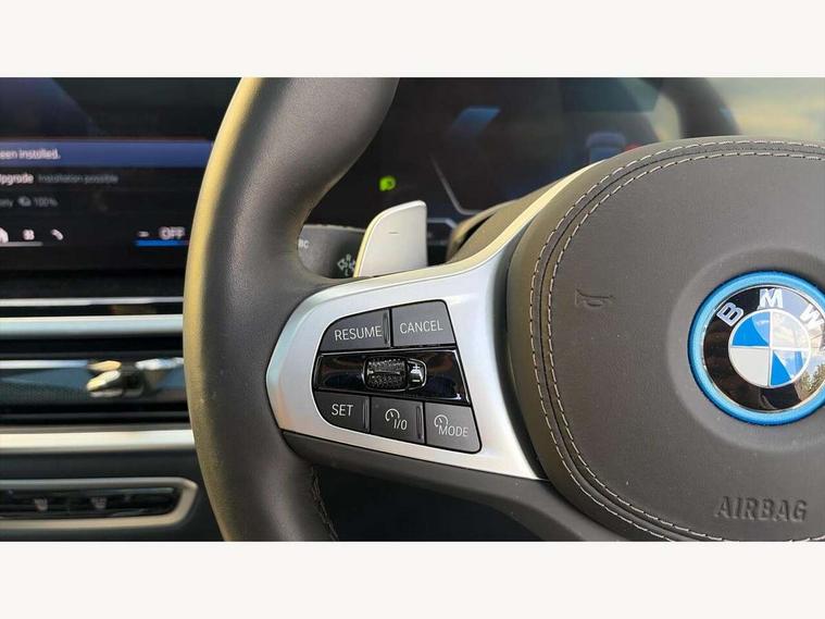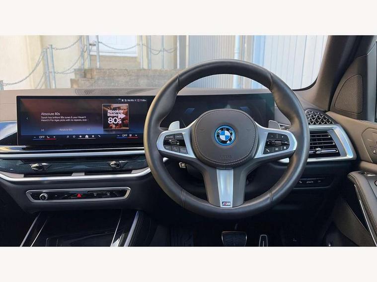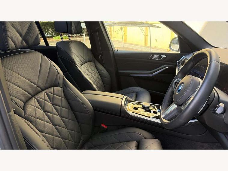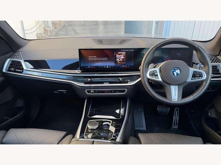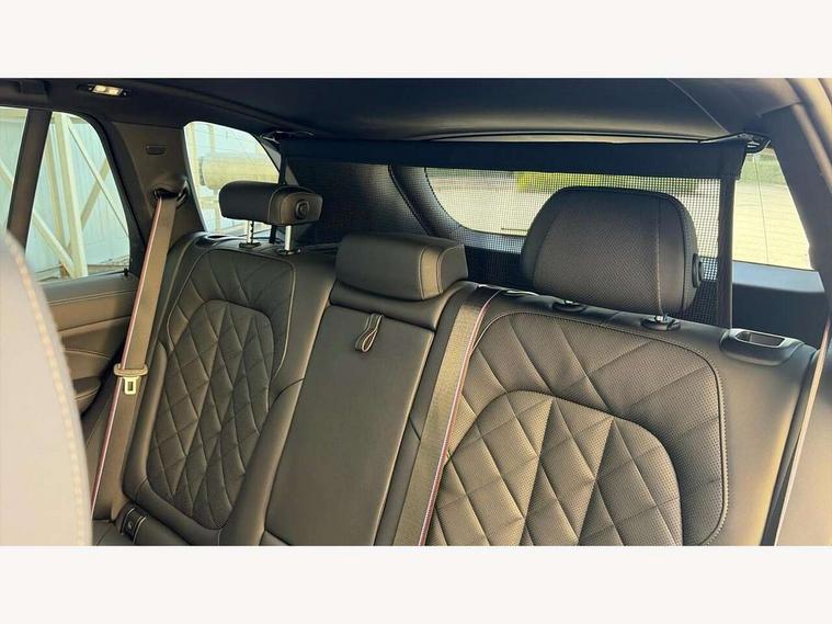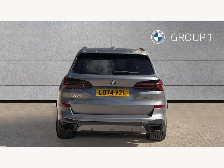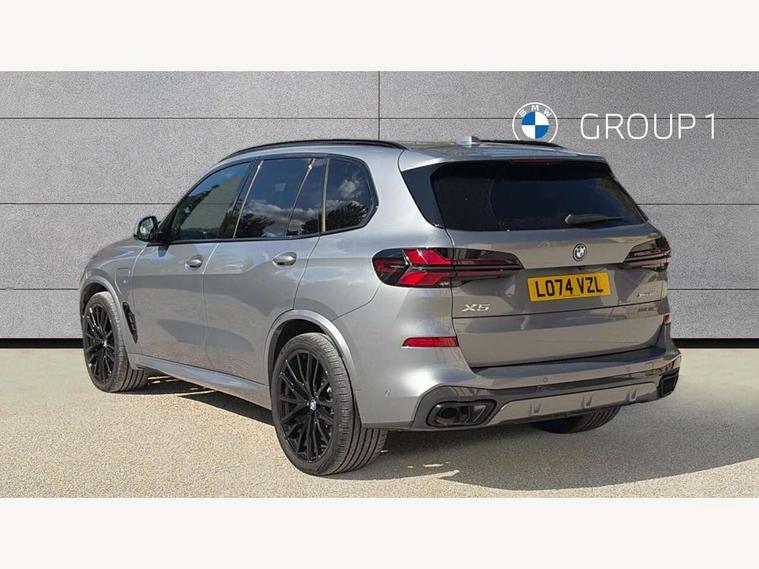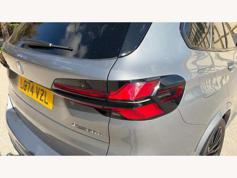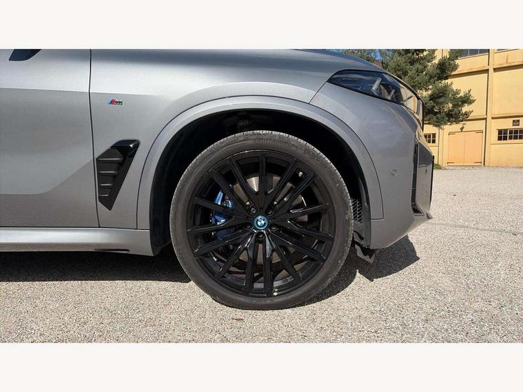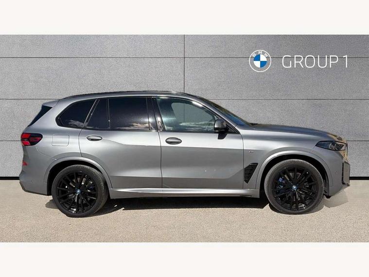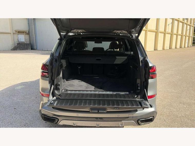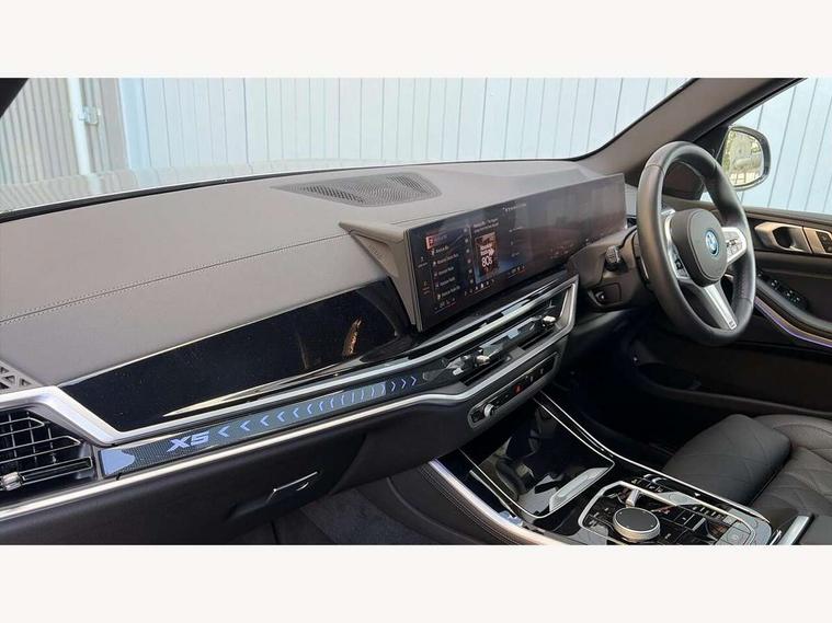 Attentiveness assist, Automatic tailgate operation, BMW ConnectedDrive online services, BMW live cockpit + with curved 12.3 instrument cluster/14.9 central display, nav/Tuner with diversity reception, RDS/4GLTE/remote software upgrade, BMW Teleservices, Condition based service, Cruise control with brake assist, eCall emergency call system, Enhanced bluetooth with wireless charging, Integrated owner's handbook, PAS, Speed limiter, Wi-Fi hotspot, AC Fast charging preparation (Maximum charging power 11kW), Adaptive 2-axle Front and rear air suspension, Drive performance control with ECO PRO comfort + sport mode, Eight speed steptronic sport automatic transmission and gearshift paddles on the steering wheel, Adaptive LED Headlights, Front and rear electric windows, High beam assistant, High gloss black shadow line roof rails, LED daytime running lights, Rain sensor, Rear side wing doors, Third brake light in rear spoiler, Variable intermittent rear wash/wipe, 12V - Power sockets with 2x centre console and 1x luggage compartment, 3 seat bench in 2nd row, Foldable rear centre armrest with 2 cupholders and storage compartment, Front and rear side armrest integrated into door trim, Headrests for all seats, Luggage compartment separating net, Lumbar support with height and depth adjustment in backrest, Single front passenger seat, Three spoke sport M leather steering wheel, Velour floormats, Ambient light interior pack - X5, Driving assistant pack with radar based driver assistance system - X5, Expanded exterior mirror pack - X5/X5 M, M aerodynamics pack - X5, Parking assistant pack - X5, 3 rear seatbelts, Acoustic protection for pedestrians, Active protection, Airbags - driver/front passenger, rear and side, first and second row seats head airbags, front passenger seat airbag deactivation + knee airbag, Anti-lock braking system (ABS), Automatic Stability Control (ASC), Brake energy regeneration, Cornering brake control (CBC), Crash sensor activating central locking release, hazard warning lights, fuel cut off, interior lighting + activation of safety battery terminal clamp, DSC - Dynamic Stability Control, Dynamic Traction Control - DTC, Electromechanical parking brake with automatic drive away release and auto hold function, Electronic brake force distribution, Hill start assistant, M Sport blue painted brake calipers with 'M' designation, Mechanical child proof lock on rear doors, Tyre pressure monitoring system, Tyre pressure sensors, Ventilated front and rear disc brakes, Warning triangle and first aid kit, Alarm system, Closing system with central locking, Comfort access system, Locking wheel bolts,