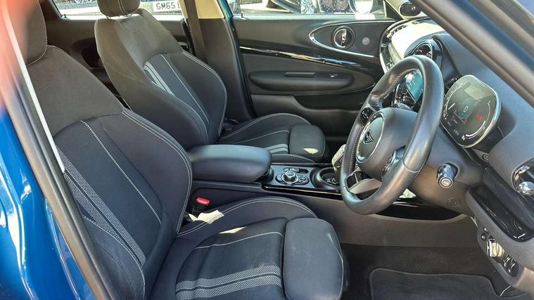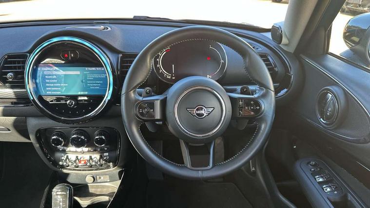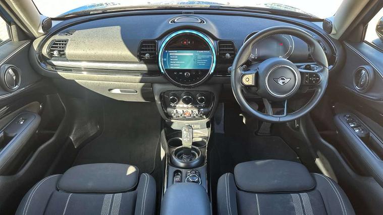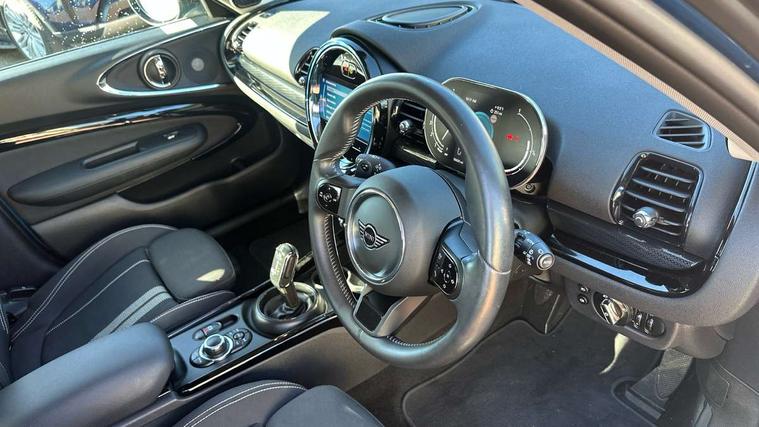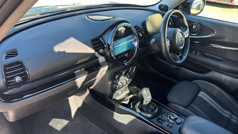 Active Guard incl speed limiting and lane departure functions with auto steering, and front collision warning with brake intervention, Automatic start/stop function with brake energy recuperation, Compatible mobile phone bluetooth with audio streaming, Digital cockpit, Electro-mechanical speed dependant steering assistance, Instrument cluster, Mini E-call, MINI TeleServices, On board computer, Double Vanos system, Fully variable valve control, High precision injection, Performance Control, Steptronic transmission with double clutch, FM tuner and DAB digital radio, Bonnet scoop, Chrome border honeycomb structure radiator grille with S badge, Chrome fuel filler cap, Dynamic brake lights, Electric windows, Heated rear window, Heated windscreen washer jets, LED headlights with closed ring as daytime driving lights, LED rear light with union jack design, Metal door sill strips with Cooper S imprint, Model logo, Model logo on rear doors, Rain sensor with auto headlights, Rear fog lights, Rear window wiper, Side scuttle panel with integrated indicator, Split rear doors, Sun/heat protection glass, Twin exhaust tailpipe, White indicator lenses, 12V Accessory socket in centre console, 3 spoke sport leather steering wheel + limiter function and audio controls, 360L luggage compartment capacity, 4 lashing eyes in luggage compartment, 60/40 split folding rear seat, Chrome interior highlights, Cupholders, English handbook, Front and rear head restraints, Glove compartment, Headliner with grab handles and clothes hooks, Height and length steering column adjustment, Interior lighting with 12 basic colours selectable via toggle switch in roof, Isofix rear child seat preparation, Leather gearshift lever and handbrake gaiters, LED reading lights, vanity mirror lights, front foot well light and spotlight on front seats, Manual air conditioning, Mechanical seat adjustment, driver seat height adjust, forward/back and front seats backrest, Multifunction steering wheel, Storage compartments in doors, Sunvisors with vanity mirrors, Toolkit, Excitement pack - Clubman, Navigation pack - Clubman, 2 tone horn, 3 point seatbelts on all seats, 6 Airbags - front, side, head and seat belt tensioners, Anti-lock braking system (ABS), DSC - Dynamic Stability Control, Electronic handbrake, Front and rear disc brakes, Tyre pressure monitoring system, Alarm system with tilt sensor, monitoring doors, bonnet interior and tailgate, Auto drive away locking, Deadlocking function, Electronic vehicle immobiliser, Locking wheel bolts, Start/stop toggle with keyless go, Tyre repair kit,
