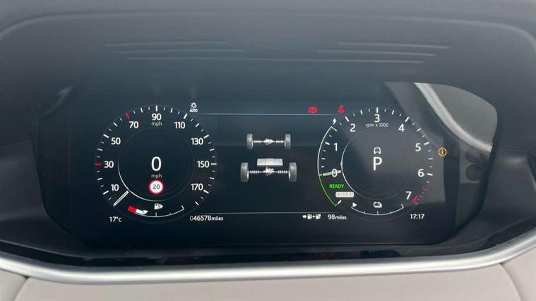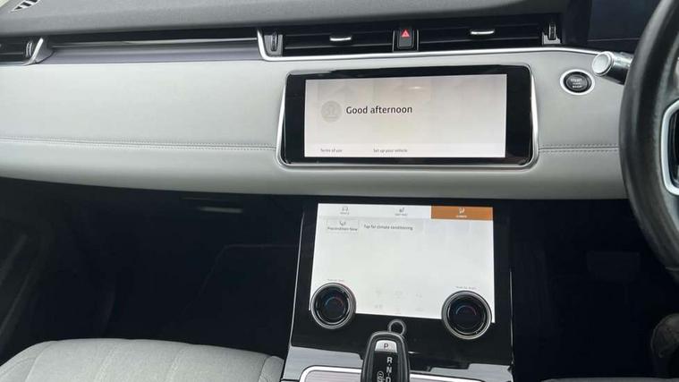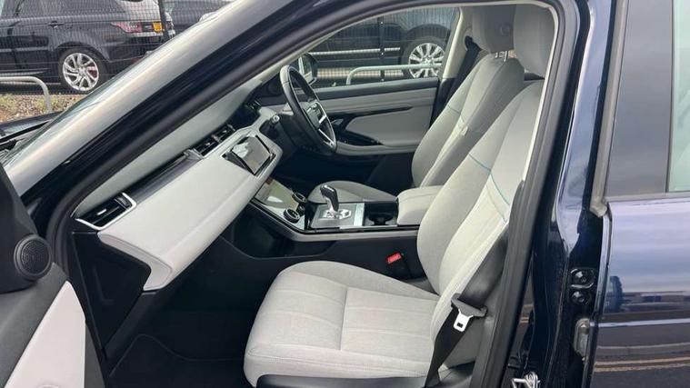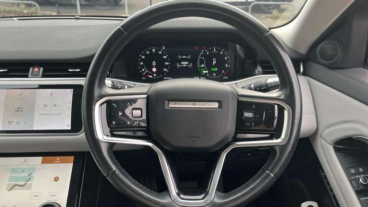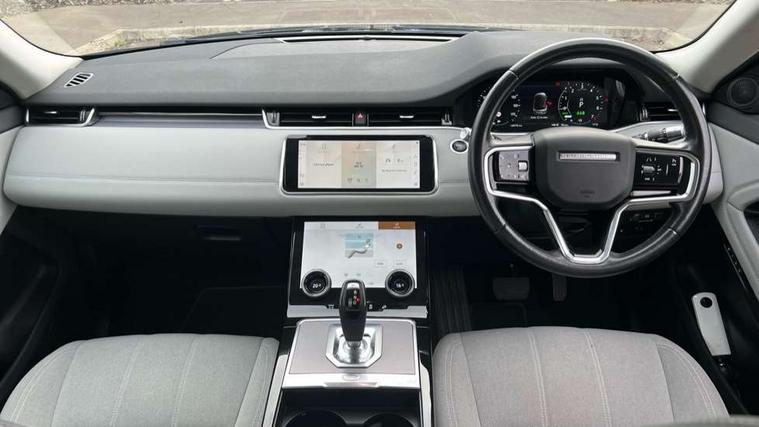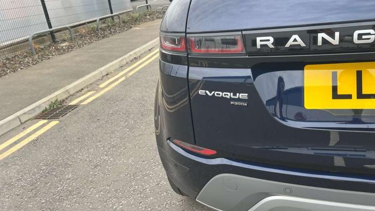 3D 360 degree surround camera, Android Auto, Apple car play, Blind spot assist, Bluetooth connectivity, Brake pad wear indicator warning light, Clear exit monitor, Driver condition monitor, Duo touch pro, eCall emergency system, Electronic power assisted steering (EPAS), InControl remote, Interactive Driver display instrument cluster, Land Rover InControl apps, Lane keep assist, Pivi pro connected includes upgraded infotainment, connected navigation pro, Nuance speech licence, Push button starter, Rear traffic monitor, Traffic sign recognition with adaptive speed limiter, Voice control system, Wade Sensing, All terrain progress control, Large fuel tank, Passive suspension, Public charging cable, Terrain Response 2 Auto, Digital Audio Broadcast radio-DAB, Steering wheel mounted controls, Auto headlights, Automatic headlight levelling, Electric windows with one touch open/close and anti trap, Evoque badge, Flush deployable exterior door handles, Heated rear window with timer, Heated washer jets, Heated windscreen, P300e badge, Power fold, auto-dimming, heated door mirrors with approach lights and auto dimming driver side, Rain sensing windscreen wipers, Rear fog lights, Rear side wing doors, Rear wiper, Tailgate spoiler, Third brake light, 40:20:40 split folding rear seats with centre headrest and armrest, Ambient interior lighting, Isofix system on outer rear seats, Overhead lighting console, Overhead stowage for sunglasses, Passive front head restraints, Rear air vents, Rear centre headrest, Rear head restraints, Single passenger seat, Sunvisors with illuminated vanity mirrors, Twin sliding front centre armrest, 3 rear 3 point seatbelts, Anti-lock braking system (ABS), Customer configurable autolock, DSC - Dynamic Stability Control, Electronic brake force distribution, Electronic parking brake, Electronic traction control, Emergency braking, Front and rear seatbelt reminder, Hill descent control, Hill launch assist, Low traction launch, Power operated child locks, Roll stability control, Six airbags - Driver and passenger airbags/driver knee airbag/front side airbag and curtain airbags, Torque vectoring brake, Tyre pressure monitoring system, Alarm, Immobiliser, Intrusion sensor, Locking wheel nuts,