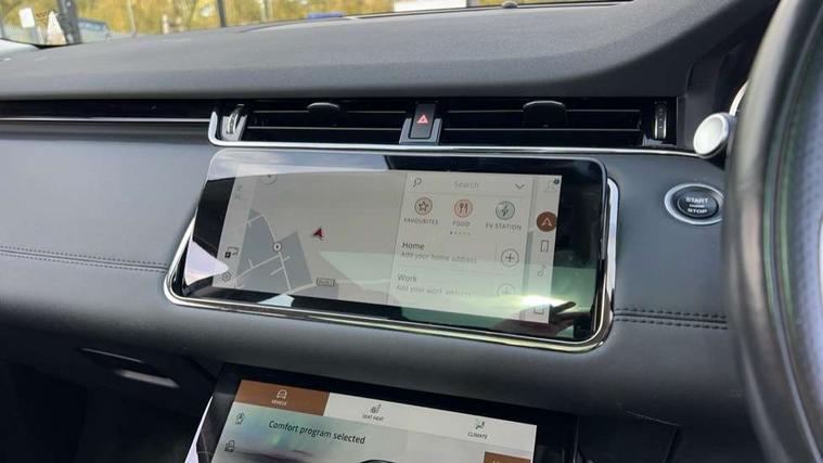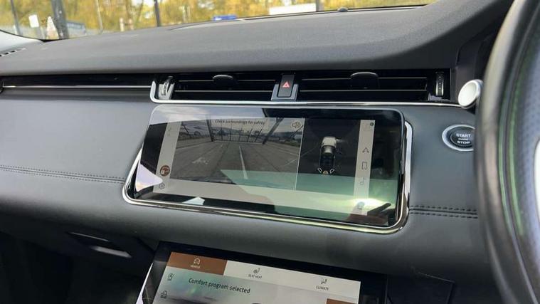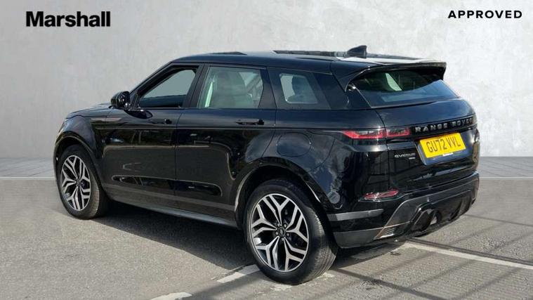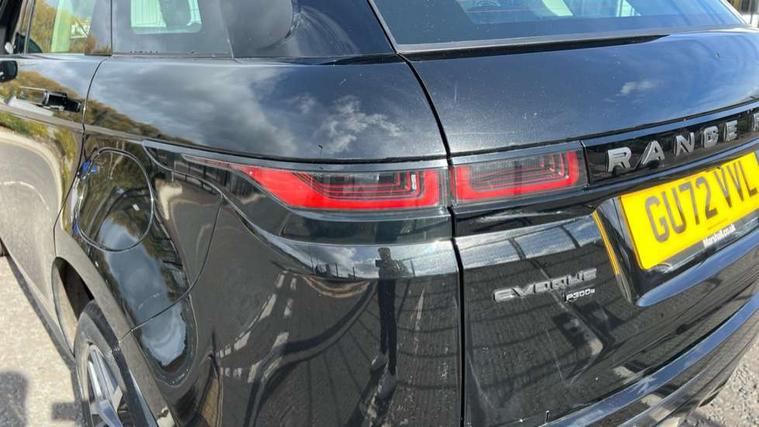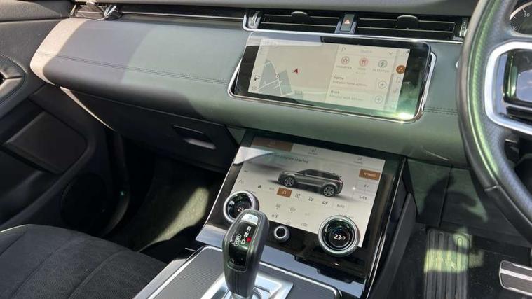 10" deployable touchscreen with lower touchscreen, Adaptive cruise control, Android Auto, Apple car play, Blind spot assist, Bluetooth connectivity, Brake pad wear indicator warning light, Driver condition monitor, eCall emergency system, Electronic power assisted steering (EPAS), Front and rear parking aid, InControl remote, Land Rover InControl apps, Lane keep assist, Pivi pro connected includes upgraded infotainment, connected navigation pro, Nuance speech licence, Push button starter, Rear collision monitor, Rear traffic monitor, Traffic sign recognition with adaptive speed limiter, Voice control system, 7 kW onboard charger, All terrain progress control, Configurable dynamics, Electric rear axle drive, Home charging cable, Large fuel tank, Passive suspension, Public charging cable, Terrain Response 2 Auto, Digital Audio Broadcast radio-DAB, Meridian surround sound system with 650W subwoofer and 14 speakers, Steering wheel mounted controls, Auto headlights, Automatic headlight levelling, Electric windows with one touch open/close and anti trap, Evoque and R-Dynamic badge, Flush deployable exterior door handles, Heated rear window with timer, Heated washer jets, Heated windscreen, P300e badge, Power fold, auto-dimming, heated door mirrors with approach lights and auto dimming driver side, Rain sensing windscreen wipers, Rear fog lights, Rear side wing doors, Rear wiper, Tailgate spoiler, Third brake light, 40:20:40 split folding rear seats with centre headrest and armrest, Ambient interior lighting, Bright metal pedals, Heated steering wheel, Isofix system on outer rear seats, Overhead lighting console, Overhead stowage for sunglasses, Passive front head restraints, Perforated full leather steering wheel, Rear air vents, Rear centre headrest, Rear head restraints, Satin chrome gearshift paddles, Single passenger seat, Sunvisors with illuminated vanity mirrors, Twin sliding front centre armrest, 3 rear 3 point seatbelts, Anti-lock braking system (ABS), Customer configurable autolock, DSC - Dynamic Stability Control, Electronic brake force distribution, Electronic parking brake, Electronic traction control, Emergency braking, Front and rear seatbelt reminder, Hill descent control, Hill launch assist, Low traction launch, Power operated child locks, Roll stability control, Six airbags - Driver and passenger airbags/driver knee airbag/front side airbag and curtain airbags, Torque vectoring brake, Tyre pressure monitoring system, Alarm, Immobiliser, Intrusion sensor, Keyless entry, Locking wheel nuts,