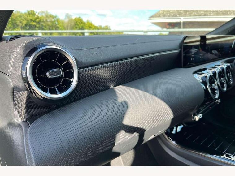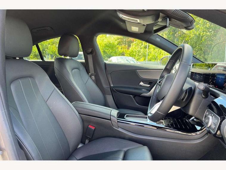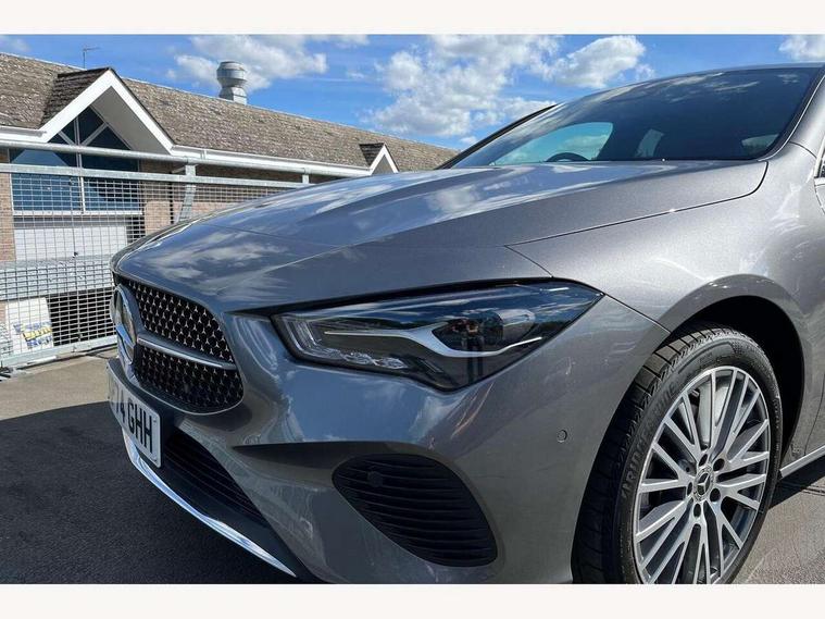 10.25 inch Instrument display with digital cockpit, 10.25 inch touchscreen central media display, Active lane keeping assist, Attention assist - Monitors steering behaviour and long journey fatigue, Blind spot assist, Bluetooth connection, Car wash mode, Cruise control with limiter, Direct steer system, DYNAMIC SELECT with a choice of driving modes (ECO, Comfort, Sport and Individual), ECO start/stop function, Fluid level warning indicator for fuel, oil, coolant and washer fluid, Hard-disk navigation, Hey Mercedes Voice activation, Lamp failure indicator, Mercedes me connect including emergency call system, accident recovery, breakdown and maintenance management, Mercedes me remote services, Outside temperature gauge, Owners manual in English, Pre-installation of private car share, Radio aerial integrated into front and rear windshields, Service indicator (ASSYST), Smartphone integration with Apple CarPlay and Android auto, Speed limit assist, Trip computer in multifunction display with current consumption indicator, Comfort suspension, Rear axle multi-link, DAB digital radio tuner, MBUX multimedia system, Mercedes Benz sound system (100 W) with 6 speakers, Pre installation for Mercedes Benz Link, Adaptive brake lights, Body colour door handles (Chrome insert with Keyless entry), Chrome beltline strips, Electric windows, Electrically adjustable and heated door mirrors with integrated LED indicators, Exhaust system with 2 Visible tailpipe trim elements and rear apron with trim in chrome, Headlamp assist automatic headlamp activation, Heated glass rear windscreen + timer control, High level LED third brake light, Interior mirror with black reading lamps and frameless, LED high performance headlamps with integrated LED daytime running lights and adaptive highbeam assist, LED tail lamp, Privacy glass with dark tinting on rear side windows and rear window, Progressive body-styling - Front apron with trim strip in chrome, visible tailpipe trim elements and rear apron with trim strip in chrome, Radiator grille with Mercedes-Benz pattern in high-gloss black and central Mercedes star, single louvre in matt grey with chrome inserts, Rain sensing windscreen wipers with two sensitivity settings, Rear boot, Rear fog lamp, Rear side wing doors, Variable front intermittent wipers, Window line trim strip in chrome, 3 seat bench in 2nd row, 3 spoke ARTICO man made leather multi function sports steering wheel with black grained gearshift paddles, oeration via touch control panels, 4 way lumbar support, 40:20:40 split folding rear seat backrests, Air conditioning - One zone thermatic automatic climate control with automatically controlled air distribution, Air vents with surround in silver chrome, Artico man-made leather upholstery, Automatic child seat recognition sensor, Black roof lining, Brushed stainless steel sports pedals with rubber studs, Comfort seats, Fluorescent jacket, Front centre armrest with stowage, Front head restraints, Heated front seats, Luggage net on driver/front passenger seat backrest, Manually height and reach adjustable steering column, Rear head restraints, Single front passenger seat, Stowage compartment in centre console with retractable cover, Sunvisors with illuminated vanity mirrors, Twin front cupholders, Two outer rear seat isofix and top tether child seat fixing points, Velour floor mats, Light and sight pack - CLA, Mirror pack - CLA, Parking pack with reversing camera - CLA, Seat comfort pack - CLA, USB package plus - CLA, Active bonnet pedestrain safety measure which detects an impact and raises bonnet by 65mm, Active brake assist includes forward collision warning system with autonomous braking, Adaptive brake assist with hold function and hill start assist, Anti lock braking system (ABS) with brake assist, Black seat belts, Bonnet with power domes, Brake pad wear warning indicator, Childproof locks manually operated for rear doors and electrically operated for rear power windows, Crash responsive emergency lighting, Driver and front passenger head and sidebags, Driver and front passenger windowbags, Drivers knee airbag, Dual stage driver and front passenger airbags, Electric parking brake, Electronic stability programme with acceleration skid control, ESP curve dynamic assist, Front and rear seatbelt reminder, Front passenger seat occupancy sensor, Three point rear seat belts, Tyre pressure monitoring system, Warning triangle and first aid kit, Alarm system with immobiliser and interior protection -Thatcham category 1, Guard 360 deg vehicle protection - tow away protection with visual, acoustic warning, interior monitoring, preinstallation for parking damage, Remote central locking and crash sensor with emergency opening function, Dark carbon fibre look trim, 18" multi-spoke himalayas grey painted light alloy wheels with high sheen rim finish, Summer tyres, Tirefit tyre sealant kit,