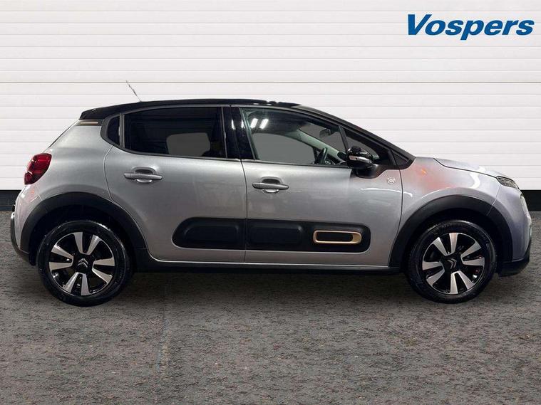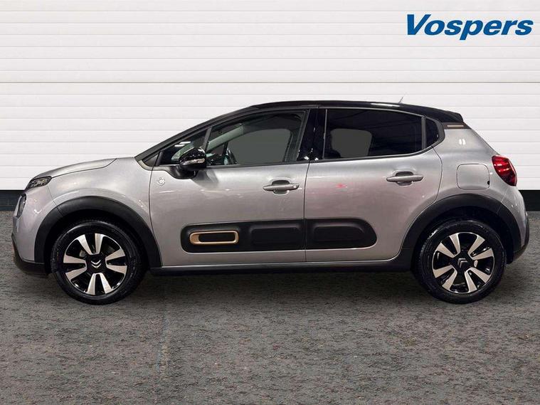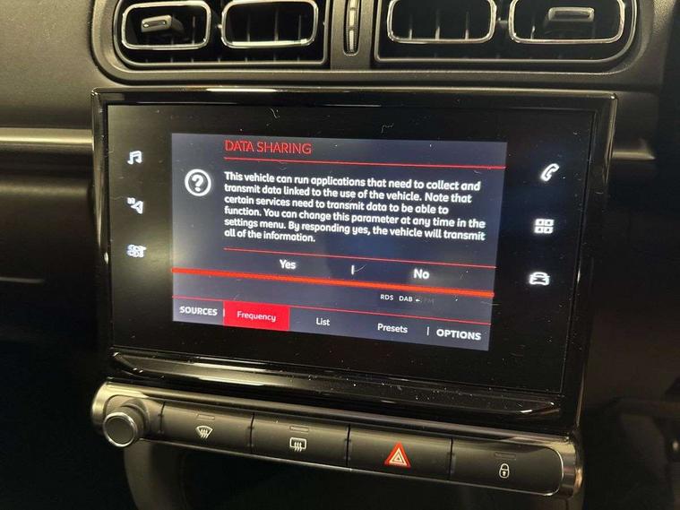 Coffee Break Alert, Cruise control + speed limiter, eCall emergency call system, Exterior temperature display, Instrument cluster with white LCD and analogue gauges, Multi function trip computer, Rear parking sensors, Reversing camera, Variable assistance power steering, USB connection, 3D rear light signature, Airbump on side door panel, Auto headlights, Automatic activation of hazard warning lights, Badge under exterior door mirrors, Body colour bumpers, Body colour door handles, C column sticker, C-Series Edition roof sticker, Chrome decoration on front face, under chevrons and around daytime running lights, Citroen illuminated signature in LED headlights and LED daytime running lights, Dark tinted tailgate and rear side windows, Electrically adjustable door mirrors, Electrically folding door mirrors, Fog lights integrated into front bumper, Front sequential electric windows with one-touch open/close and anti-pinch system, Heated door mirrors, LED Headlights, LED third brake light, Matt black finish B pillar, Perla nera black bi-tone roof, Rear sequential electric windows with one-touch open/close and anti-pinch system, Rear side wing doors, Rear windscreen wiper with intermittent mode linked to vehicle speed and automatic activation when reverse gear selected, Roof colour rear view mirror caps, Standard day night switchable interior rear view mirror, Variable front intermittent wipers, 1/3 to 2/3 split folding rear seat, 12V socket, Automatic air conditioning, Boot light, C-Series Edition carpet mats, Driver and passenger's sun visor with courtesy mirror, Driver's seat height adjustment, Front lighting panel with map reading lights, Front seats adjustable with forward back slide and adjustable backrest, Height adjustable front head restraints, Height/reach adjust steering wheel, ISOFIX mounting on outer rear seats with top tether and labels indicating fixing points, Mica cloth upholstery, Parcel shelf, Row 2 - Three seats with individually adjustable head rests, Seatbelt unfastened on the move audible and visual alert for front and rear seats, Single front passenger seat, Soft touch gear lever with leather effect gaiter and overstitching, Standard ambience, Steering wheel with satin chrome elements and audio/telephone controls, Three rear headrests, Upholstered armrest in front and rear doors, Anodised bronze colour pack - C3, C-Series Edition style pack - C3, Safety pack 1 - C3, Visibility pack with automatic lights - C3, ABS with Electronic brakeforce distribution and Emergency braking assistance, Driver and front passenger seatbelts with pyrotechnic pretensioners and force limiters, Driver's airbag, Electric child locks, ESP with anti skid system, Front passenger airbag, Front passenger airbag deactivation, Front side airbags + front/rear curtain airbags, Hill start assist, Manual parking brake with chrome finish button, Mono-tone horn, Outer rear seats with pretensioners and force limiters, Three rear 3-point seatbelts, Tyre pressure monitoring system, Anti theft alarm, Automatic door and boot locking when moving off with automatic unlocking in case of impact, Central locking with locked indicator and interior one touch lock button, Immobiliser, Remote control central locking with two plip keys, Soft touch leather effect dashboard finish with grey surround, 16" Matrix diamond cut alloy wheels, Tyre puncture repair kit,