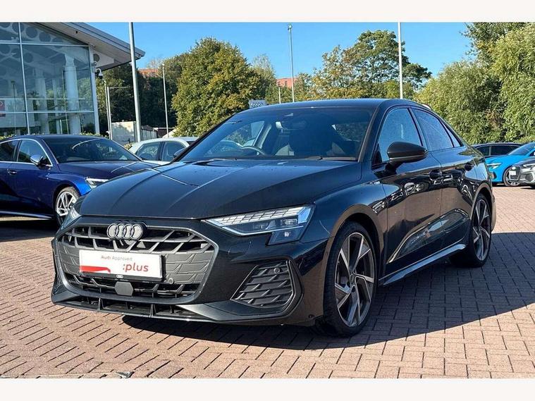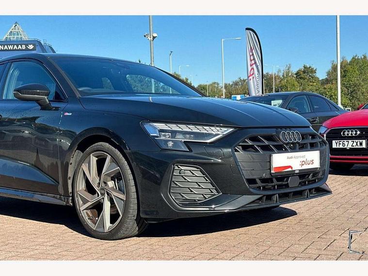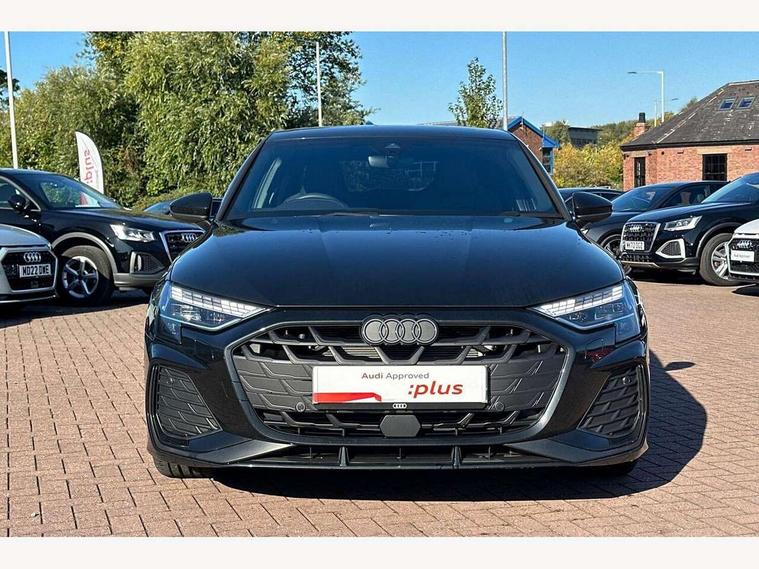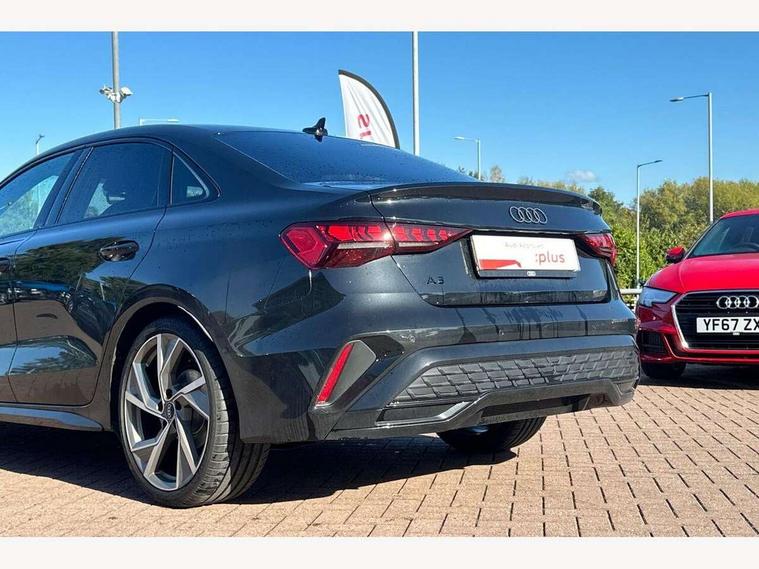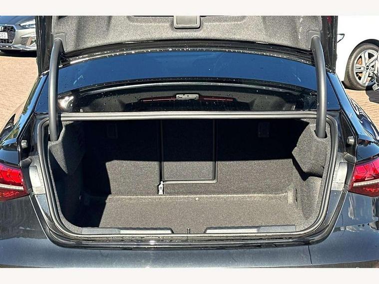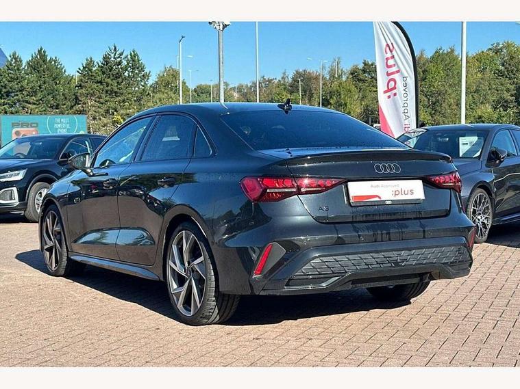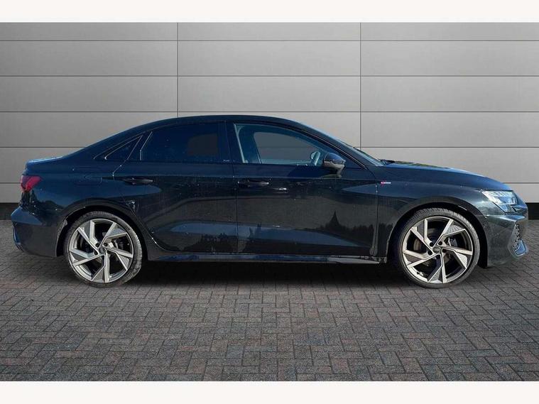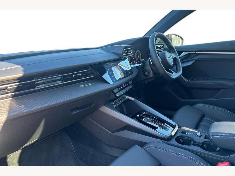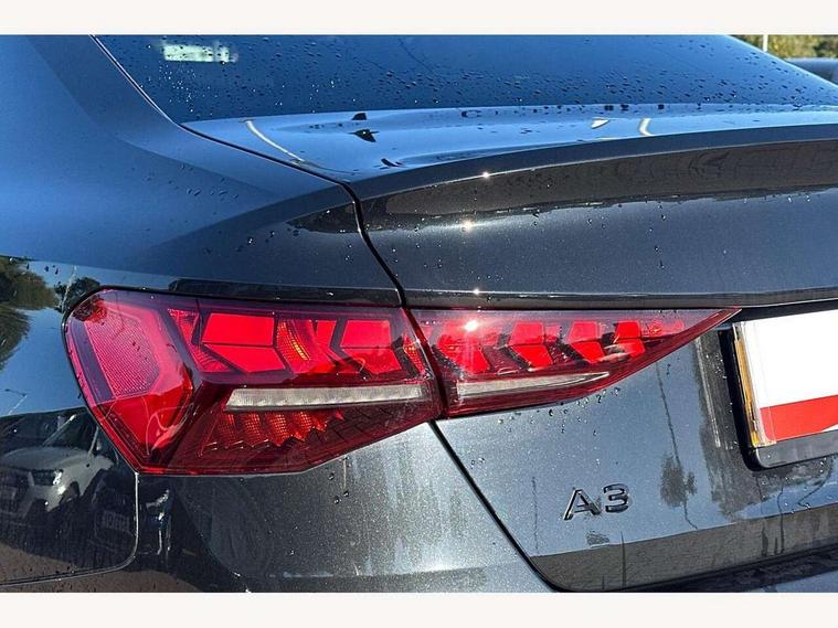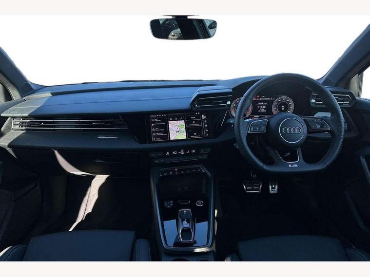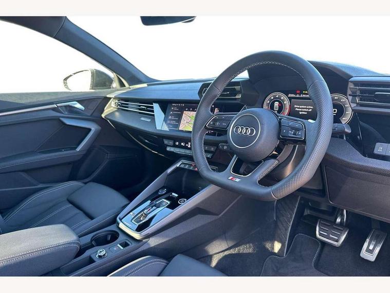Adjustable speed limiter, Audi drive select, Audi smartphone interface with app store includes wireless Apple carplay, Android auto and Amazon alexa integration, Audi virtual cockpit plus - 12.3" full HD resolution dynamic digital instrument cluster, Automatic start/stop system with recuperation, Bluetooth interface, Camera based traffic sign recognition, Collision avoidance assistant, Cruise control, Distraction and Fatigue warning, e-Call (emergency call), Electromechanical power speed sensitive steering, Lane departure warning system, MMI Navigation Plus with high resolution 10.1" colour touch screen display, Park Assist with parking system Plus, Service indicator, Trip computer, Voice control system with natural language interaction, Sports suspension, Audi Phonebox light with wireless charging, Audi sound system - 10 loudspeakers including centre loudspeaker and subwoofer, DAB Digital radio, USB ports with charging function in the rear, Acoustic glass windscreen, Anthracite grey Audi rings (front and rear), Audi beam uses LEDs to project the Audi logo onto the ground as you exit your A3, Auto dimming frameless rear view mirror, Black accents front and rear bumpers, Black accents in the area of the Audi single frame grille, Black accents window trims strips, Electrically adjustable/heated/folding/auto dimming door mirrors with integrated LED indications + kerb view function for passenger side, Exterior model badging, Front electric windows, Heat insulating glass windscreen, Illuminated door sills with aluminium inserts at the front with S logo, LED 3rd brake light, LED daytime running lights, LED headlights with LED rear lights and dynamic rear indicators, Light and rain sensors, Privacy glass - dark tinted rear window, rear door and side windows, Rear boot, Rear electric windows, Rear side wing doors, 12V socket and storage compartment in front centre console, 3 seat bench in 2nd row, 3 spoke flat bottomed leather multifunction sport steering wheel with gear shift paddles, 3-zone deluxe automatic air conditioning, 4 way electrically adjustable lumbar support for driver and front passenger, 40/20/40 split folding rear seat bench, Black cloth headlining, Front and rear centre armrest in artificial leather, Front and rear centre armrest in artificial leather with contrasting stitching on armrests and instrument panel, Front and rear headrests, Front/rear floor mats, Heated front seats, Height and reach adjustable steering wheel, Manual boot compartment lid, Manually adjustable front seats, Rear cup holders, S badging on the steering wheel, Seat side bolsters, Single front passenger seat, Stainless steel pedals and front footrest in black, Twin leather upholstery with front sports seats S embossed logo, Aluminium interior elements pack - A3, Multi-coloured LED interior lighting package - A3 Black Edition, 3x3 point rear seat belts, Driver and front passenger airbag with passenger airbag deactivation, Electronic Stabilisation Control (ESC) including ABS, ASR and EDL, First aid kit with warning triangle and 2 safety vests, Front side airbags with head airbags and interaction airbag, Hill hold assist, Pre-sense front with pedestrian and cyclist detection, Seatbelt monitoring, Tyre pressure loss indicator, Anti theft alarm, Anti-theft wheel bolts, Electronically operated child locks, Immobiliser, Remote central locking with safelock, Inlays in black Impressum woven textile,