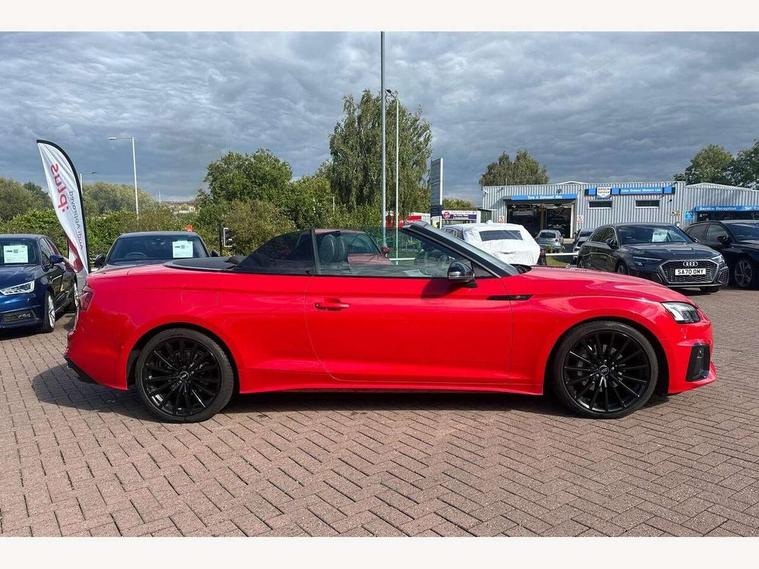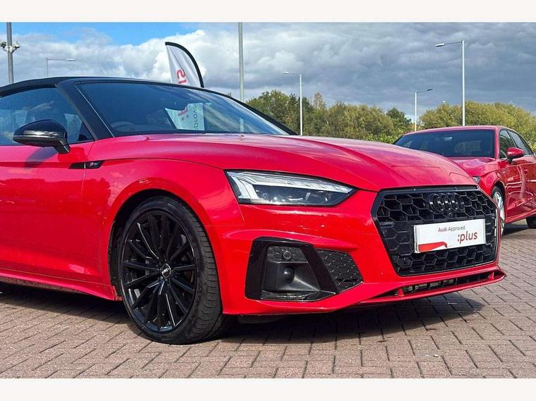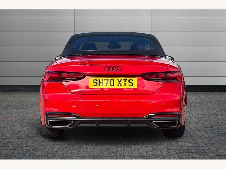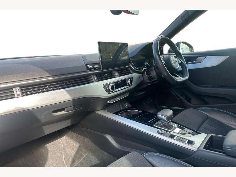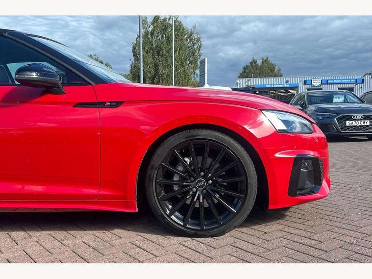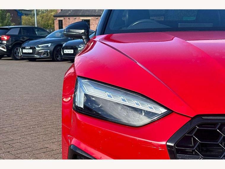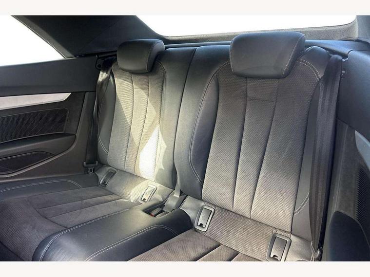 Audi connect safety and service (e-call), Audi drive select (Auto, Comfort, Dynamic, Efficiency and Individual), Audi parking system plus with front and rear sensors, Audi phone box with wireless charging, Audi smartphone interface, Audi virtual cockpit - 12.3" full colour digital instrument cluster, vehicle/engine speed, Radio/media information+Driver assistance systems, Automatic start-stop system with coasting functionality and efficiency programme, Bluetooth interface, Electric boot lid release, Electro-mechanical power steering, Email, calendar and text messages displayed via MMI, MMI nav+ with MMI touch - 10.1" high resolution MMI display, touch sensitive, 3D map, route/country info, dynamic route guide, personal route assist, Rear view camera, Service interval indicator, Voice control system, Sports suspension lowered by 23mm, 8 passive loudspeakers, CD player, DAB digital radio reception, Two additional USB ports for rear passenger in rear centre console, Two SDXC card slots, Audi matrix LED headlights with LED rear lights + dynamic front and rear indicators, Auto dimming rear view mirror, Body colour bumpers, Body colour door handles, Body colour front spoiler lip, Body colour side sill trim, Body coloured door mirrors, Electric adjustable heated door mirrors, Electric folding door mirrors, Electric front windows, Front fog lights, Honeycomb structure radiator grille in grained matt black, Matt aluminium silver tailpipe trim, Rain and light sensors, S line badges on front wings, S line front and rear bumpers with side skirts, S Line rear diffuser in matt titanium black with trim strip in matt aluminium silver, Side air inlets in grained matt black with matt aluminium silver inlay, Towbar preparation, Windscreen with acoustic glazing, 4 way electric lumbar support for driver and front passenger, 50/50 split folding 2 seater rear bench seat, Adjustable steering column, Black cloth headlining, Black perforated leather gearknob, Contrast stitching on seats, steering wheel and gear lever gaiter, Deluxe 3 zone electronic climate control, Front centre armrest, Front head restraints, Front/rear floor mats, Heated front seats, Illuminated door sill trim with S logo, ISOFIX child seat mounting and top tether, Luggage compartment mat, Manual seat adjustment, Rear headrests, Stainless steel pedals, Sunvisors with vanity mirrors, LED interior light pack - A5/RS5, 6 airbags - Driver, front passenger, curtain and side airbags, Electromechanical parking brake, Electronic Stabilisation Control (ESC) including ABS, ASR and EDL, Front passenger airbag deactivation, Height adjustable front seatbelts, Hill hold assist, Multi collision brake assist, Pop-up bonnet for pedestrian protection, Seatbelt monitoring, Tyre pressure warning, Variable restraint system, Warning triangle and first aid kit, Anti theft alarm system, Anti theft wheel bolts, Immobiliser, Keyless Go, Remote central locking, Matt brushed aluminium inlays, Tool kit, Tyre repair kit,