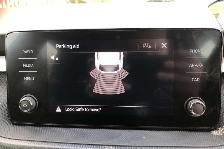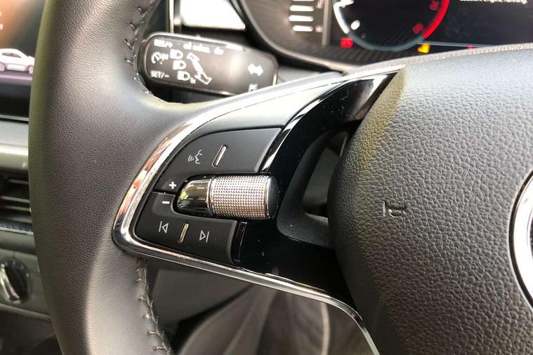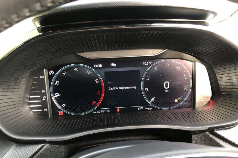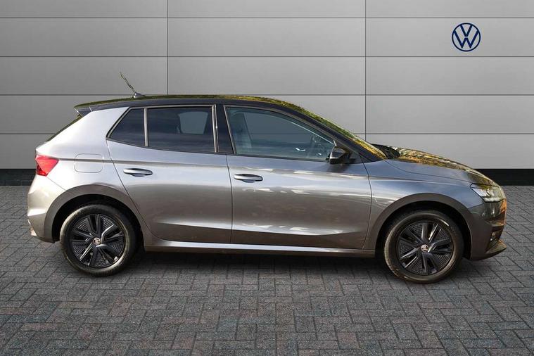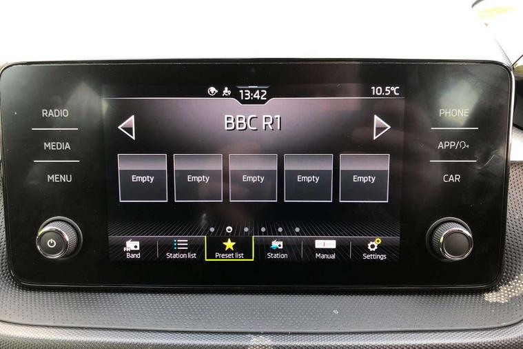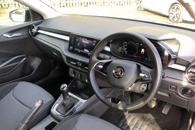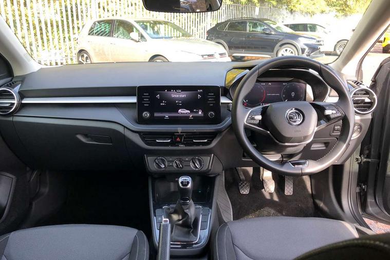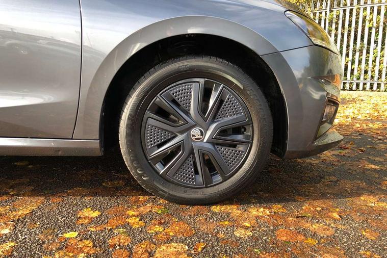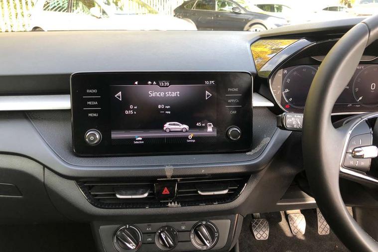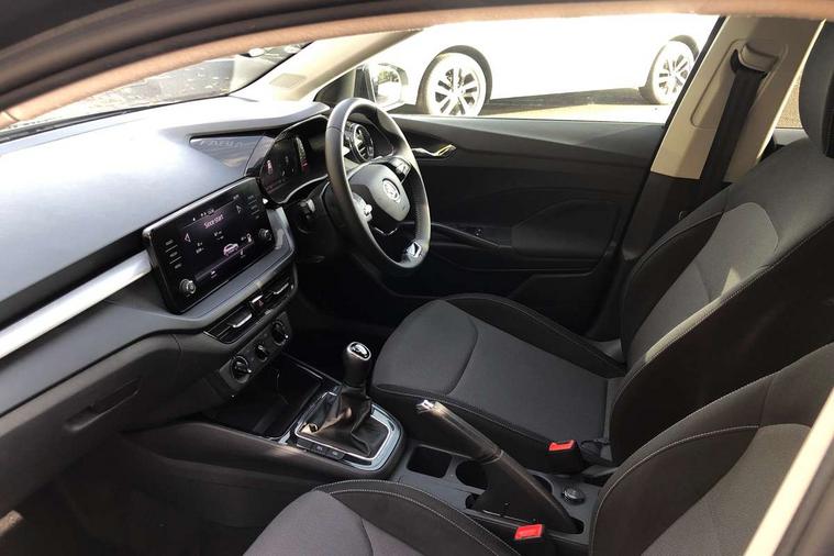Bluetooth connection, Driver alert system - DAS, Electromechanical power steering, Exterior temperature gauge, Lane assist including road edge detection, Service interval indicator, Virtual cockpit with 10.25" colour display, 2x USB-C in the front (for data transmission and charging), 6 Speakers (4 in front and 2 in rear), Auxiliary socket for external MP3 player, Bolero radio with 8" colour display, DAB digital radio reception, Basic rear lights, Body coloured bumpers, Dimming rear view mirror with black frame, Door mirror integrated indicators, Electrically adjustable and heated door mirrors, Electrically adjustable front windows with function auto up/down, Front window wiper intermittent control, Headlight range control - Automatic, Ice scraper in fuel cap, LED daytime running lights with coming and leaving home feature, Mechanical adjustable rear windows, Privacy glass, Rear LED fog light, Rear side wing doors, Rear window wiper with washing nozzles, Roof mounted spoiler, SKODA tailgate lettering in chrome, Third brake light, 3 rear headrests, Backrest split and folding, Central console with fixed cup holder and storage box, Chrome handbrake release button, Fabric upholstery, Gearshift knob/handle in leather, Grain satin black interior door handles, Hand brake lever handle in leather, Height adjustable front headrests, Height adjustable steering wheel, ISOFIX and TopTether anchorage points to the outer rear seats, ISOFIX and TopTether on the front passenger seat, Luggage compartment lighting, Pollen filter, Rear seat bench unsplit, Single front passenger seat, Storm grey headlining, Sun visors with mirror and airbag label on passenger side, Ticket holder, Umbrella in drivers door, 3-point height adjustable front seats belts with pretensioner and force limiter, Automatic warning lights in case of crash, Driver and passengers airbag with switch off function, e-Call+, ESC including ABS, MSR, ASR, EDS, HBA and XDS, Front and rear seat belt warning, FRONT ASSIST (AEB City and AEB Inter Urban), Front side airbags, Head airbags, One tone horn, Pedestrian protection, Three rear 3-points safety seat belts with pretensioner and force limiter including stop function for outer rear seat belts, Tyre pressure monitoring system, Anti-theft alarm system including immobiliser, interior monitoring, backup horn, and towing protection, Anodized cross line upper decorative trim, Colour Edition air vents, Grain satin black central console cover, Grain satin black lower decorative trim, Satin black door and side trim panel in front, Anti-theft wheel bolts protection, Super-low rolling resistance tyres,