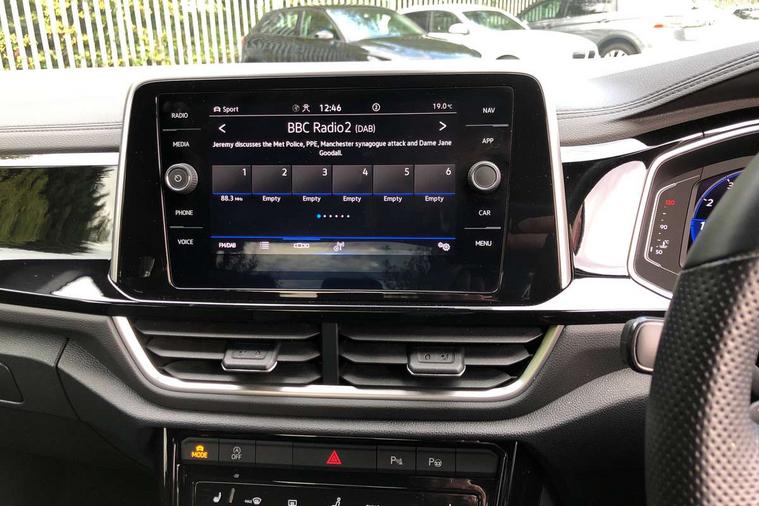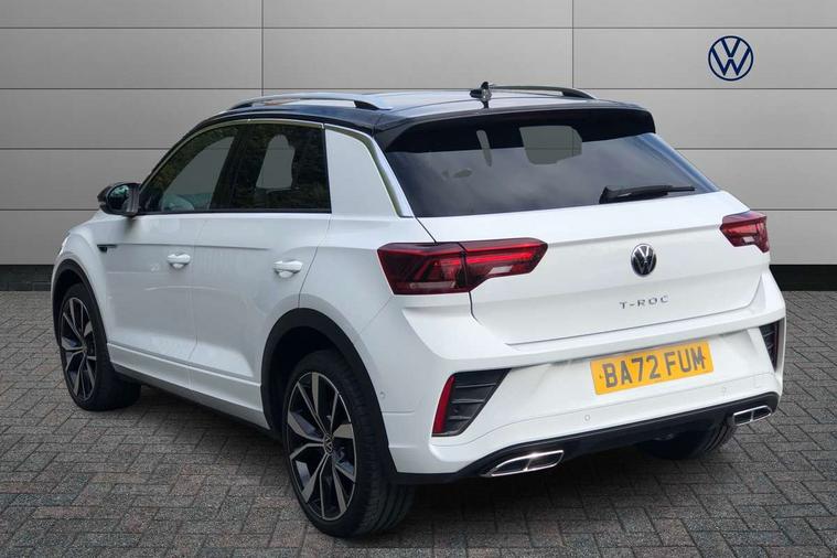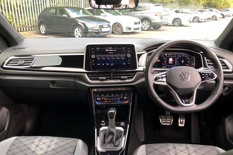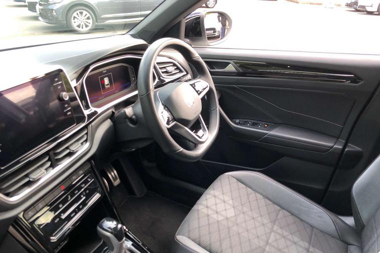 10.25" Digital cockpit pro, Bluetooth mobile phone interface, Driver alert system with fatigue detection, Driver tips and journey analysis, Emergency call service, Lane keeping system Lane Assist, Modified key software - reduce switch off time for key status change to Long no motion, Online services, Park assist including front and rear parking sensors, Service interval indicator, Tailgate/trunk lid release from outside, Think blue trainer driver tips and journey analysis, Warning sound and light for front seatbelts unfastened, Wireless app connect, Battery regeneration during braking, Start/stop function with battery regeneration, Diversity antenna for FM reception, Front and rear 6 speakers, Music playback - MP3, WMA and AAC files, Premium USB cable in choice of either Apple or Android smartphone compatibility, SD card slot, Simultaneous pairing of 2 compatible mobile devices, Title and cover art display, We Connect and We Connect Plus functionality, 3rd brake light, Auto dimming interior rear view mirror, Automatic hazard lights activation under emergency braking, Automatic headlight control with LED separate daytime running lights with coming/leaving home function, Extended roof spoiler, Exterior mirrors aspherical on driver side, convex on front passenger side, External USB type C socket and charging sockets, Front windscreen wiper with intermittent wipe and 4 position delay, Heated rear window, LED Plus headlamps, LED rear combination lamps, LED rear number plate lights, LED tail lamp rear comination lamps, Power windows with comfort operation and circuit breaker, R-Line design body coloured bumpers, Rain sensor, Rear exhaust tailpipe, Rear fog light on one side and reversing lights on both sides, Rear side wing doors, Rear wash/wipe with intermittent wipe setting, Remote electrically foldable door mirrors, puddle lights and reverse activated passenger's door mirror, 12V power socket in centre console, 3 rear head restraints, 3 seat bench in 2nd row, 4 load lashing points in luggage compartment, Air care climatronic air conditoning system with active combination filter and 2-zone temperature control, Black roof lining, Chrome plated radiator grille inserts, air vent surrounds and light switch surrounds, Door and side trim panel with leatherette insert, Drawer under drivers seat, Front + rear carpet mats, Front centre armrest, Front cupholders x 2, Front footwell illumination, Front reading light, Front scuff plates with R logo, Instrument lighting, white adjustable panel illumination, Interior ambient lighting and surround lighting, Interior light delay, Isofix child seat preparation, Leather gearshift handle, Load-through provision with cup holder when folded down ('Unsplit rear seat bench, split folding backrest, with centre armrest), Luggage compartment lighting, Single front passenger seat, Stainless steel pedals, Storage compartment in left and right luggage area, Storage compartment in rear doors, Storage compartments in driver and front passenger doors, Sunvisors with illuminated vanity mirrors, Variable boot floor, height adjustable and removable, Driver assistance pack without proactive passenger protection - T-Roc, 3 point height adj front seatbelts + pretensioners, 3 point seatbelts in outer rear with ECE label, ABS, Child locks on rear doors, Driver and front passenger airbag with front passenger airbag deactivation, Driver and front passenger safety-optimised head restraints, Drivers seatbelt reminder, Electronic parking brake, Electronic Stability Control (ESC) inc EDL (Electronic Differential Lock) and ASR (Traction Control), Front and rear passengers curtain airbag system including front side airbags, Front assist with city emergency braking and pedestrian monitoring, Front seat side impact airbags, Hill start assist, Predictive pedestrian protection, Rear disc brakes, Single tone horn, Tyre pressure loss indicator, Volkswagen roadside assistance, Alarm with interior protection, Anti-theft alarm system with interior monitoring, backup horn, and towing protection, Remote central locking with SAFELOCK, radio remote control with 2 remote control folding keys, Trims for alloy wheels,
