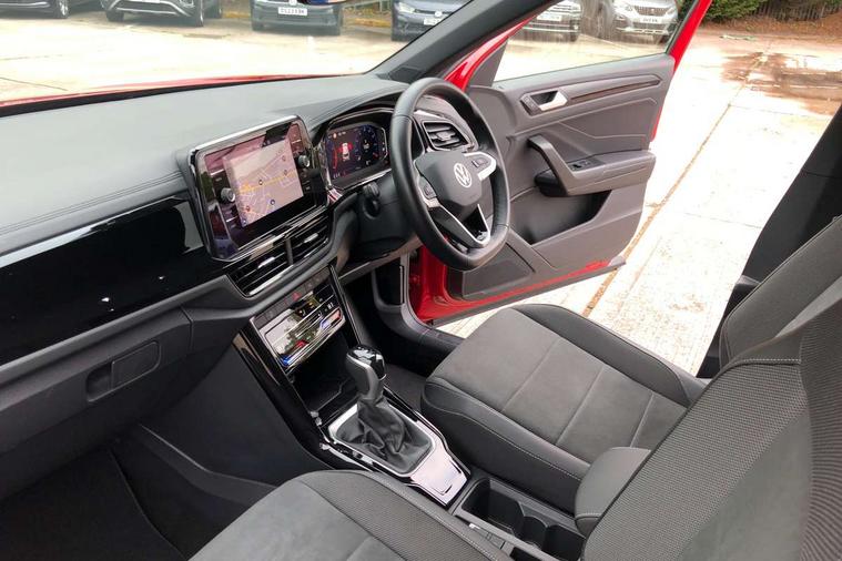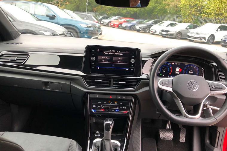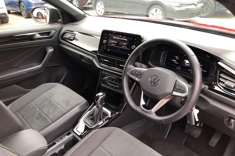 10.25" Digital cockpit pro, Bluetooth mobile phone interface, Driver alert system with fatigue detection, Driver tips and journey analysis, Emergency call service, Lane keeping system Lane Assist, Modified key software - reduce switch off time for key status change to Long no motion, Online services, Park assist including front and rear parking sensors, Service interval indicator, Tailgate/trunk lid release from outside, Think blue trainer driver tips and journey analysis, Warning sound and light for front seatbelts unfastened, Wireless app connect, Battery regeneration during braking, Start/stop function with battery regeneration, Diversity antenna for FM reception, Front and rear 6 speakers, Music playback - MP3, WMA and AAC files, Premium USB cable in choice of either Apple or Android smartphone compatibility, SD card slot, Simultaneous pairing of 2 compatible mobile devices, Title and cover art display, We Connect and We Connect Plus functionality, 3rd brake light, Auto dimming interior rear view mirror, Automatic hazard lights activation under emergency braking, Automatic headlight control with LED separate daytime running lights with coming/leaving home function, Body colour sports bumpers with silver metallic underbody fascia, Dynamic headlight range control with self adjusting whilst driving, Extended roof spoiler, Exterior mirrors aspherical on driver side, convex on front passenger side, External USB type C socket and charging sockets, Front windscreen wiper with intermittent wipe and 4 position delay, Heated rear window, LED Plus headlamps, LED rear combination lamps, LED rear number plate lights, LED tail lamp rear comination lamps, Light mode for poor weather, rain, fog or snow, Power windows with comfort operation and circuit breaker, Rain sensor, Rear exhaust tailpipe, Rear fog light on one side and reversing lights on both sides, Rear side wing doors, Rear wash/wipe with intermittent wipe setting, Remote electrically foldable door mirrors, puddle lights and reverse activated passenger's door mirror, 12V power socket in centre console, 3 rear head restraints, 3 seat bench in 2nd row, 4 load lashing points in luggage compartment, Air care climatronic air conditoning system with active combination filter and 2-zone temperature control, Chrome plated radiator grille inserts, air vent surrounds and light switch surrounds, Door and side trim panel with leatherette insert, Drawer under drivers seat, Front + rear carpet mats, Front centre armrest, Front comfort sports seats, Front cupholders x 2, Front footwell illumination, Instrument lighting, white adjustable panel illumination, Interior ambient lighting and surround lighting, Interior light delay, Isofix child seat preparation, Leather gearshift handle, LED interior light with switch off delay/dimmer and 2 front/rear LED reading lights, Load-through provision with cup holder when folded down ('Unsplit rear seat bench, split folding backrest, with centre armrest), Luggage compartment lighting, Non-folding front passenger seat backrest, Single front passenger seat, Storage compartment in left and right luggage area, Storage compartment in rear doors, Storage compartments in driver and front passenger doors, Sunvisors with illuminated vanity mirrors, Variable boot floor, height adjustable and removable, Driver assistance pack without proactive passenger protection - T-Roc, 3 point height adj front seatbelts + pretensioners, 3 point seatbelts in outer rear with ECE label, ABS, Child locks on rear doors, Driver and front passenger airbag with front passenger airbag deactivation, Driver and front passenger safety-optimised head restraints, Drivers seatbelt reminder, Electronic parking brake, Electronic Stability Control (ESC) inc EDL (Electronic Differential Lock) and ASR (Traction Control), Front and rear passengers curtain airbag system including front side airbags, Front assist with city emergency braking and pedestrian monitoring, Front seat side impact airbags, Predictive pedestrian protection, Rear disc brakes, Single tone horn, Tyre pressure loss indicator, Volkswagen roadside assistance, Alarm with interior protection, Anti-theft alarm system with interior monitoring, backup horn, and towing protection, Remote central locking with SAFELOCK, radio remote control with 2 remote control folding keys, Trims for alloy wheels,