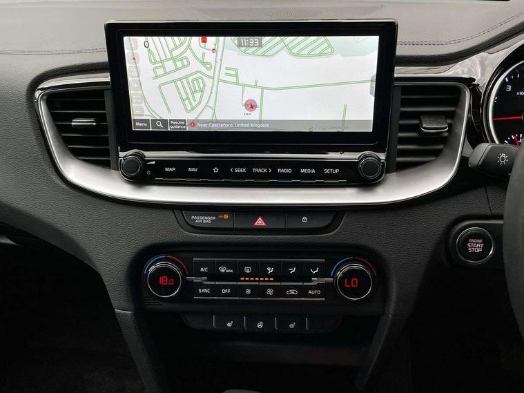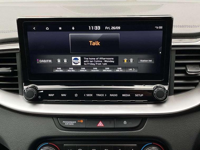 10.25" touchscreen satellite navigation, 4.2" supervision colour cluster display, Apple car play/Android Auto with voice control, Bluetooth with Voice Recognition & Music Streaming, Drive mode select (Normal and Sport), Driver attention warning + (DAW) with leading vehicle departure warning, Emergency call service, Emergency stop signalling system, Forward Collision-Avoidance Assist (FCA) - City/Pedestrian/Cyclist, Kia connect UVO, Lane Following Assist (LFA), Lane keep assist, Manual speed limit assist, Motor driven power steering, Rear parking sensor, Reversing camera system with dynamic guidelines (Integrated into centre fascia screen), Smart cruise control with stop/go functionality, Trip computer, Intelligent Stop and Go, 6 speaker audio system, DAB Radio with MP3, Illuminated USB ports, Steering wheel mounted controls, USB Fast Charger in Front Centre Console, USB type A port, All-round Electric Windows with Front Auto Up & Down Function, Auto dimming rear view mirror, Automatic defog system, Automatic headlights control, Body colour bumpers, Body colour door mirrors, Body colour exterior door handles, Body colour rear roof spoiler, Chrome window surround, Electric adjustable/heated/folding door mirrors with LED Indicators, Heated rear window with timer, High beam assist, High gloss black and white chrome coated radiator grille, LED daytime running lights, LED front fog lights, LED Headlights, LED High-mounted Brake Light, LED rear combination lights, Privacy glass (rear side windows and tailgate), Rain sensing front wipers, Rear side wing doors, Rear wash/wipe, Roof rails, Tinted glass, Wide view drivers door mirror, Windscreen Washer Level Warning, 1 x Front 12V socket, 12V power socket in luggage compartment, 3 seat bench in 2nd row, 3 x passenger assist grips, 60/40 split folding rear seat, All-round height adjustable headrests, Centre console storage box/armrest, Cloth upholstery with faux leather bolsters, Cupholders in centre console, Cupholders in rear armrest, Dash illumination dimmer switch, Door courtesy lamps, Driver & Front Passenger Sunvisors with Vanity Mirror Illumination & Ticket Holder, Driver + front passenger electric lumbar support, Driver's seat height adjuster, Dual Height Luggage Area Floor, Dual zone automatic air conditioning, Faux leather door centre trim, Front and rear door storage, Front cabin map light with sunglasses case, Front Passenger Seat Height Adjuster, Front seat back pockets, Heated front seats, Heated steering wheel, Interior door lock/unlock function, ISOFIX Child seat top tethers and anchor fixings, Leather handbrake, Leather trimmed steering wheel, Luggage area light, Luggage area parcel shelf, Luggage hooks, Rear centre armrest, Rear coat hooks, Single front passenger seat, Tilt/telescopic adjustable steering wheel, All round 3-point seatbelts, Anti-lock braking system (ABS), Brake assist system, Dual front side airbags, Dual horn, EBD - Electronic brakeforce distribution, Electronic parking brake, Electronic stability control (ESC) and vehicle stability management (VSM), Front passenger airbag cut-off switch, Height adjustable front seatbelts, Hill start assist control (HAC), Impact sensing auto door unlocking, Rear door child safety locks, Seatbelt reminder warning, Twin curtain airbags, Twin front airbags, Tyre pressure monitoring system, Alarm system, Engine Immobiliser & Deadlocks, Engine Start/Stop Button with Smart Entry System, Locking wheel nuts, Speed sensitive auto door locking, Satin Chrome Fascia Trim, 17" Alloy wheels, Tyre mobility kit,