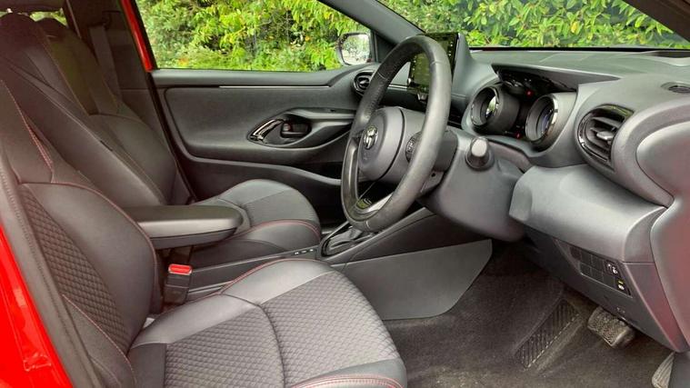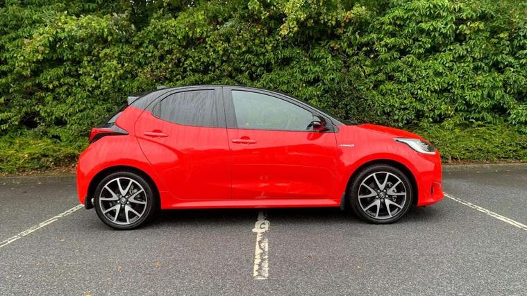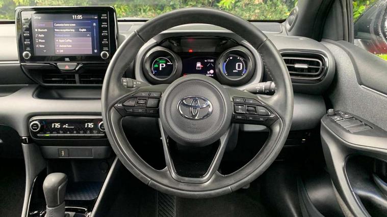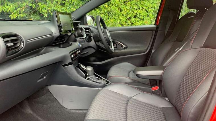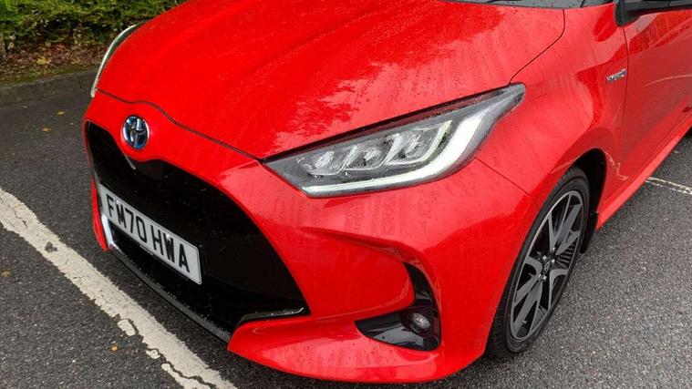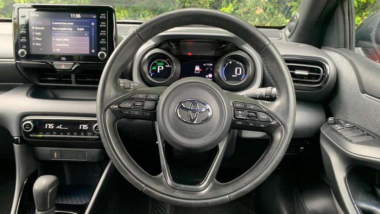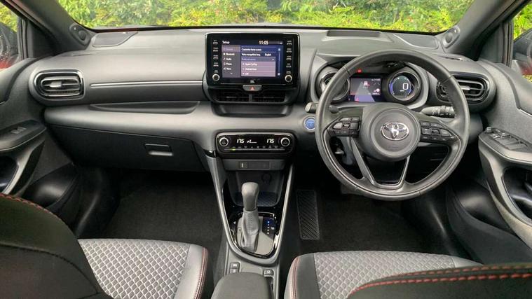 10" full colour head up display, Adaptive cruise control, Adjustable speed limit with speed warning, Blind spot monitoring, Bluetooth connectivity, Colour binocular inspired displays with digital speedometer, E-call, Electric power steering, Hybrid energy display, Multi information display switches on steering wheel, Reversing camera, Smartphone integration with Apple CarPlay and Android auto, Vehicle Stability Control (VSC), 8" Multimedia display touch screen, JBL Premium sound system with 8 speakers, Toyota Touch 2 with DAB, USB connection, Acoustic windscreen glass, Auto dimming rear view mirror, Auto windscreen wipers, Automatic headlights, Automatically retractable door mirrors, Black contrasting colour door mirrors, Electric adjustable heated door mirrors, Follow me home headlights, Front auto power windows with anti jam protection, Full LED rear lights, LED daytime running lights, LED front fog lights, LED Headlights, LED High mounted stop lamp, Painted front grille, Pearlescent bi-tone paint, Rear auto power windows with anti jam protection, Rear privacy glass, Rear spoiler, Shark fin antenna, Turning signal integrated indicators in door mirrors, 3 adjustable rear headrests, 3 spoke leather steering wheel, 60/40 split folding rear seat, Active headrests, Adjustable boot height, Ambient lighting, Coat hooks in rear grab handles, Cup holders (2 front & door), Data Communication Module (DCM) connected services, Dual zone automatic air conditioning, Fabric seat with partial synthetic leather upholstery, Front armrest, Front sport seats, Glovebox, Height adjustable driver's seat, Height adjustable passenger seat, Isofix seat fixing, Leather gearshift, Map pockets on the backs of the front seats, Pollen filter, Shopping bag hooks, Tilt/telescopic steering column, 3 point seatbelts on all rear seats, ABS+EBD+Brake assist, Electronic parking brake, Emergency brake light system (EBS), Front passenger airbag on/off switch, Front seatbelt reminder, Hill start assist control (HAC), Rear child proof door locks, Rear seat belt reminder, Supplemental Restraint System (SRS) 8 airbags: Driver & passenger's airbags, dual side curtain airbags, side impact airbags, front centre airbag, Toyota Safety Sense 2, Precollison + Night time Pedestrian & Cyclist Detection, Lane Trace Assist, Auto High Beam, Intelligent ACC & Road Sign Assist, Tyre pressure warning system, Alarm/immobiliser, Keyless smart entry with push button start, Remote powered central double locking doors, Piano black interior trim, Soft touch instrument panel, Space saver spare wheel,