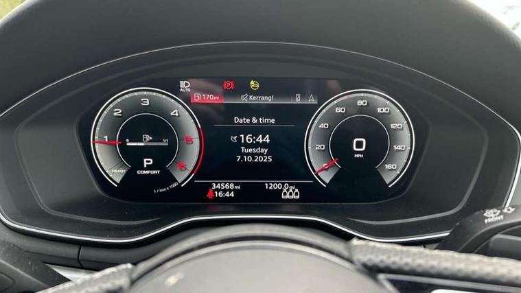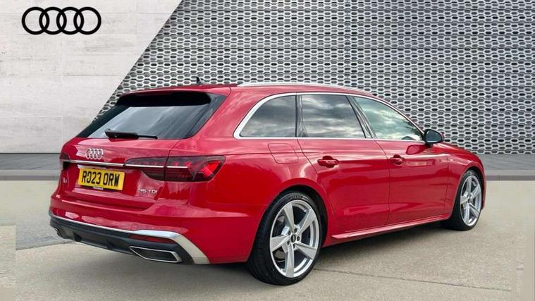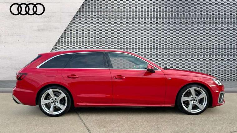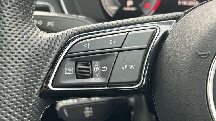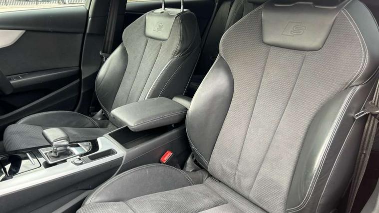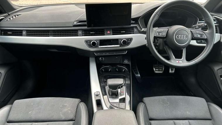 Audi connect safety and service (e-call), Audi connect with Amazon Alexa Integration, Audi drive select, Audi smartphone interface, Audi virtual cockpit, Automatic start-stop system with coasting functionality and efficiency programme, Bluetooth interface, Electromechanical power steering, Email, calendar and text messages displayed via MMI, MMI Navigation plus with MMI touch includes 10.1" high resolution colour MMI display, 3D map, Power operated tailgate, Voice control system, Sports suspension lowered by 23mm, 2 USB charging ports, 8 passive loudspeakers, DAB digital radio reception, Aluminium roof rails, Auto dimming rear view mirror, Body colour door handles, Body colour front spoiler lip, Body colour side sill trim, Body coloured door mirrors, Electrically folding auto dimming/adjustable/heated door mirrors with LED side indicators and kerb view function for passenger side, Grained matt black side air inlets with matt aluminium silver inlay, High beam assistant, Honeycomb structure radiator grille in grained matt black, LED headlights with LED rear lights + dynamic rear indicators + headlight adjustment and high beam, turning light + LED daytime running lights, LED third brake light, Matt aluminium silver tailpipe trim, Privacy glass, Rain and light sensors, Rear side wing doors, Rear wiper, S Line badges on the front wings, S line front and rear bumpers with side skirts, S Line rear diffuser in matt anthracite black with trim strip in matt aluminium silver, S Line roof edge spoiler, Variable intermittent front wash/wipe, Windscreen with acoustic glazing, 3 spoke high multi-function sports leather steering wheel grips in perforated leather with S badging including paddle shift, 4 way electric lumbar support for driver and front passenger, 40/20/40 split folding 3 rear seat bench in 3 parts with rear centre armrest, Black cloth headlining, Black perforated leather gearknob, Contrast stitching on seats, steering wheel and gear lever gaiter, Deluxe 3 zone electronic climate control, Door sill trims with aluminium inlay, Electric load area cover, Front and rear head restraints, Front centre armrest, Heated front seats, Illuminated door sill trims with S logo, ISOFIX child seat mounting and top tether, Manual seat adjustment, Single front passenger seat, Stainless steel pedals and foot rest, High gloss package - A4, LED Interior light pack - A4/S4, 3 rear seatbelts, 6 airbags - Driver, front passenger, curtain and side windows, Electronic Stabilisation Control (ESC) including ABS, ASR and EDL, Hill hold assist, Multi collision brake assist, Pop-up bonnet for pedestrian protection, Pre sense city, Rear door child safety locks, Seatbelt monitoring, Warning triangle and first aid kit, Anti theft alarm, Anti theft wheel bolts, Central locking, Keyless Go, Matt brushed aluminium inlays, Tool kit, Tyre repair kit,