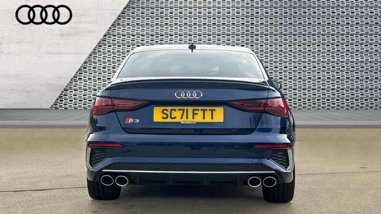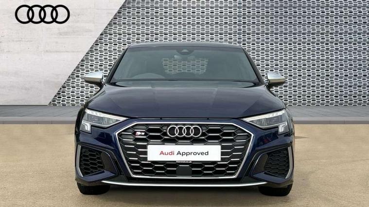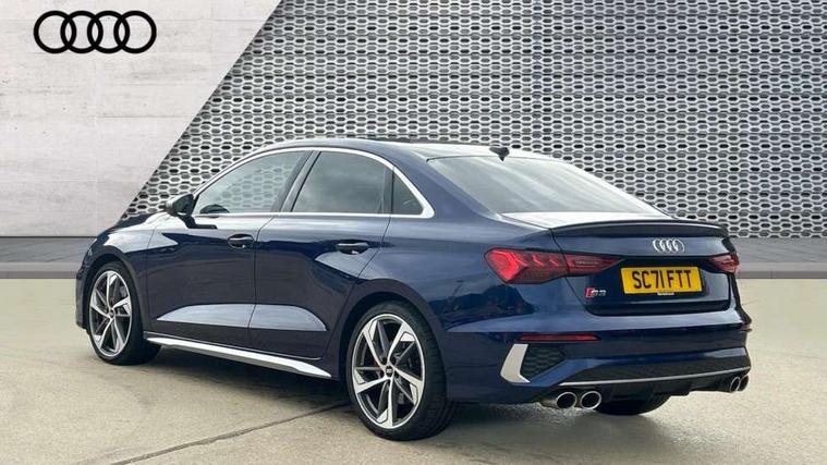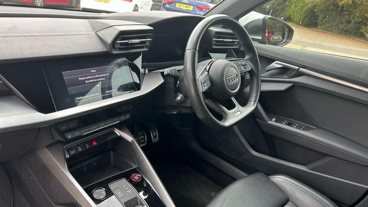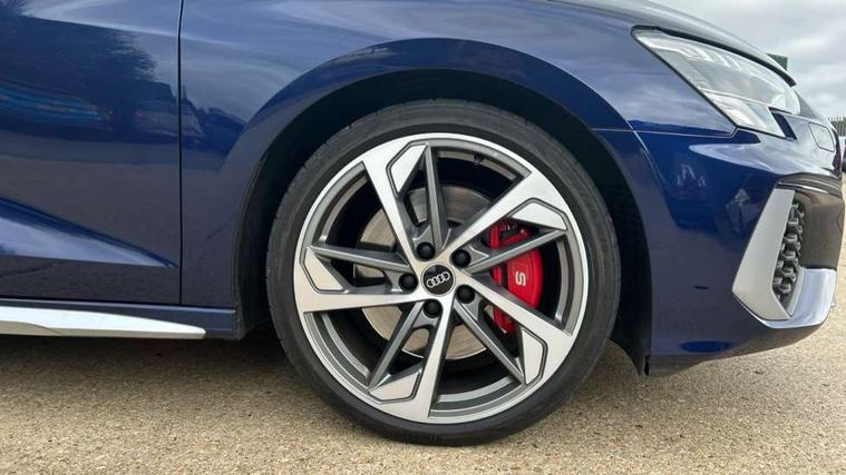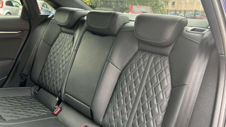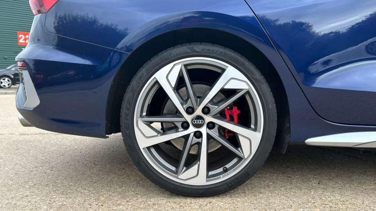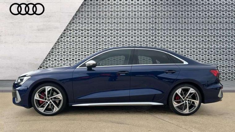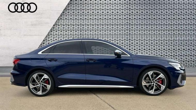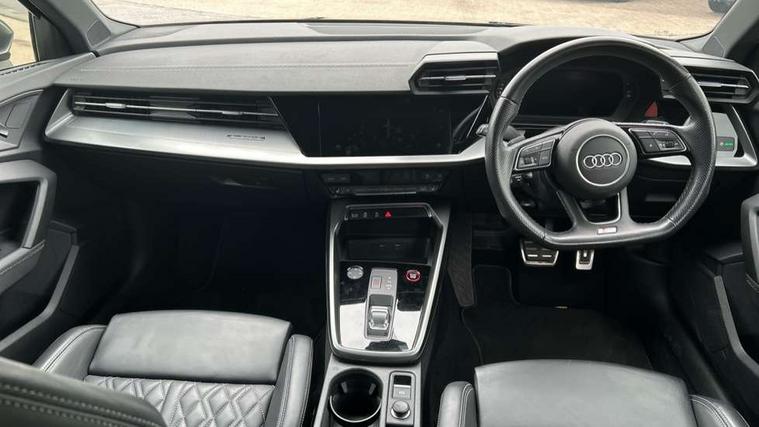 Audi connect emergency call and service, Audi drive select (Auto, Comfort, Dynamic, Efficiency and Individual), Audi smartphone interface, Audi Virtual Cockpit - 10.25" digital and colour instrument cluster, Automatic start/stop system with recuperation, Bluetooth interface, Collision avoidance assistant, Lane departure warning system, MMI Navigation Plus with high resolution 10.1" colour touch screen display, Progressive steering, Service indicator, Voice control system with natural language interaction, Quattro permanent all wheel drive, S sport suspension with spring damper adjustment and lowering by 15mm, 2x USB Type C ports (for charging and data transfer), 6 passive loudspeakers, CD player, DAB Digital radio, 3rd brake light, Acoustic glass windscreen, Audi Beam uses LEDs to project the Audi logo onto the ground as you exit your S3, Auto dimming frameless rear view mirror, Electrically adjustable/heated/folding/dimming door mirrors with kerb view includes integrated LED indications + kerb view function for passenger side, Front electric windows, Headlight washers, Illuminated door sills with aluminium inserts at the front with S logo, LED daytime running lights, LED headlights with LED rear lights and dynamic rear indicators, Light and rain sensors, Model and engine designation badges at rear, Privacy glass - dark tinted rear window, rear door and side windows, Rear electric windows, 12V socket and storage compartment in front centre console, 40/20/40 split folding rear seat bench with cupholder, Black cloth headlining, Dual zone electronic climate control, Front and rear centre armrest in leather, Front and rear headrests, Front/rear floor mats, Heated front seats, Height and reach adjustable steering wheel, Interior lighting - glove compartment light and right hand side, Luggage compartment floor covering, Seat side bolsters, Stainless steel pedals and front footrest in black, Body styling design pack - S3, Storage pack - A3/S3 Saloon, 3x3 point rear seat belts, Driver and front passenger airbag with passenger airbag deactivation, Electronic Stabilisation Control (ESC) including ABS, ASR and EDL, First aid kit with warning triangle and 2 safety vests, Front side airbags with head airbags and interaction airbag, Hill hold assist, Pre-sense front with pedestrian and cyclist detection, Seatbelt monitoring, Tyre pressure loss indicator, Anti theft alarm, Anti-theft wheel bolts, Electronically operated child lock, Immobiliser, Remote control central locking, Aluminium air vent surrounds, Aluminium trim elements, Dark spectrum aluminium inlays, accent surfaces in the dashboard and centre console in platinum grey silk effect paint finish,