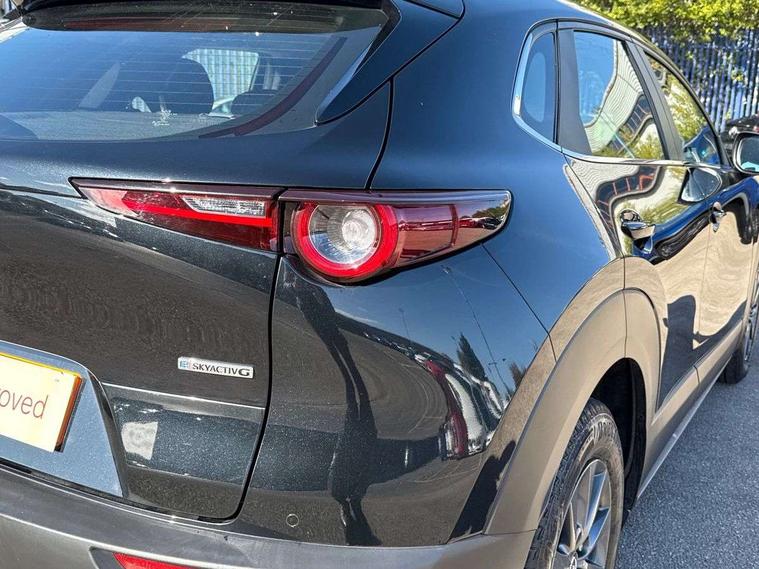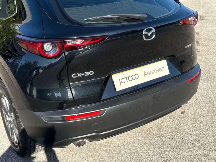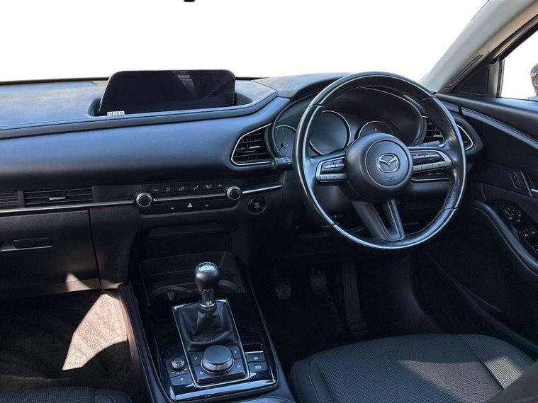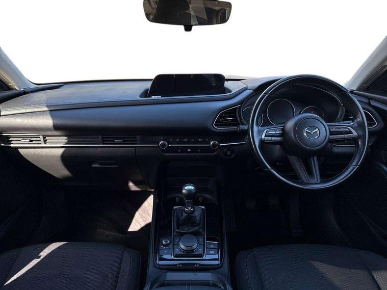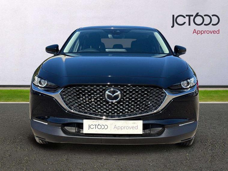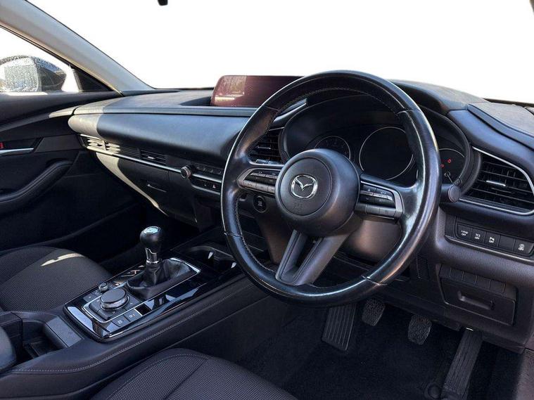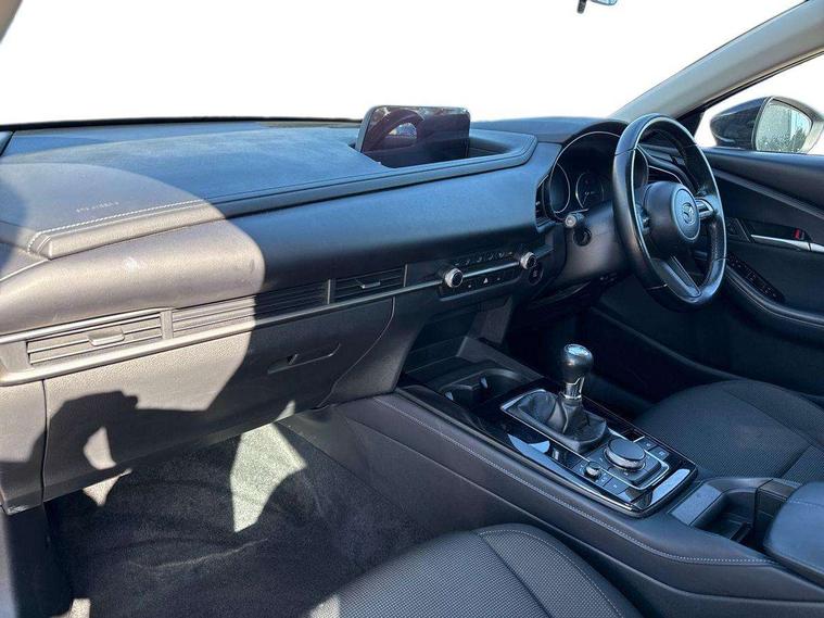 7" TFT Colour driver instrument panel display, 8.8" Colour centre touch screen display with Mazda Connect infotainment, Adaptive cruise control (Mazda radar cruise control), Apple car play/Android Auto, Blind spot monitoring with rear cross traffic alert, Driver attention alert system, E-call with GPS, Emergency stop signalling system, Engine start/stop button, Integrated bluetooth, Integrated Mazda navigation system, Intelligent speed assist, Lane keep assist system (LAS) with Lane departure warning system (LDWS), Mazda connected services, PAS, Rear parking sensor, Service indicator, Traffic sign recognition, Trip computer, Cylinder Deactivation, i-stop, 2 USB charging ports in front inner central armrest, AM / FM / DAB radio with 8 speakers, Multimedia Commander including separate volume dial, Steering wheel mounted audio/bluetooth controls, B-pillar and C-pillar garnishes in satin black finish, Auto headlight levelling, Body coloured, electrically adjustable, heated auto power folding door mirrors with integrated indicators, Chrome finish signature wing in front grille, Coming/leaving home lighting function, Dual chrome exhaust, Dusk sensing headlights, Electric front/rear windows with one touch auto up/down, Front kodo turn signal, Gloss black rear roof spoiler, LED headlights with halogen daytime running lights and high beam control, LED rear combination lights, Rain sensing front wipers with adjustable speed and intermittent wipe, Rear fog lights, Rear side wing doors, Rear wiper, Satin black front grille, Third brake light, 12V power outlet in centre console, 3 seat bench in 2nd row, 60/40 split fold down rear seats, Cloth upholstery with interior accents, Dark cloth door panel inserts, Dashboard, door cards and front centre armrest in black cloth, Driver and front passenger visors with covered vanity mirror and driver ticket holder, Driver seat manual slide, recline, height and seat tilt adjust, Driver, front passenger and two rear door storage, Driver, Front passenger and two rear grab handles with coathooks, Folding rear centre armrest with two cup holders, Front and rear (x3) head restraints, Front and rear LED lighting, Front armrest, Front centre storage with two cupholders, Front passenger seatback pockets, Front passengers seat manual slide, recline and height adjustment, Gear shift indicator, Glovebox illumination, ISOFIX child seat anchorage points attached on outer rear seats, Leather wrapped gear shift knob, Leather wrapped steering wheel with telescopic and tilt adjustment, LED luggage compartment lighting, Light roof headlining and pillars, Manual air conditioning, Roof mounted sunglasses holder, Single front passenger seat, 3 point ELR front seat belts x2 with pretensioners, 3 point ELR rear seat belts, Anti-lock braking system (ABS), Drivers knee airbag, DSC - Dynamic Stability Control, Electronic parking brake with auto disengage function and auto hold function, Front and rear curtain airbags, Front dual stage driver and single stage front passenger airbags, Front passenger airbag cut-off switch, Front side airbags, Front smart city brake support, G-Vectoring control plus, Hill launch assist, Manual child lock in rear doors, Mild Hybrid system with regenerative braking, Seatbelt reminder for driver/front passenger and rear seats, Traction control system (TCS), Tyre pressure monitoring system (TPMS), Remote central locking with deadlocking and automatic door lock when driving, Thatcham accredited alarm and immobiliser, 16" Grey alloy wheels, Emergency tyre repair kit,