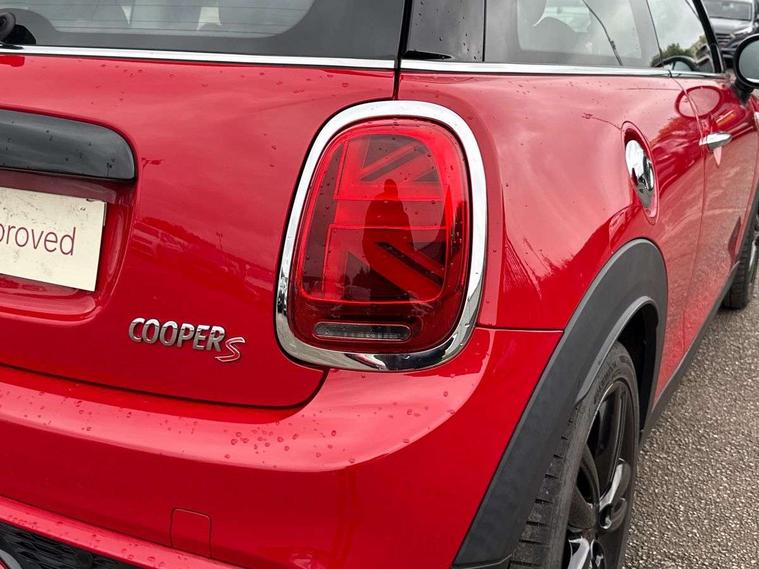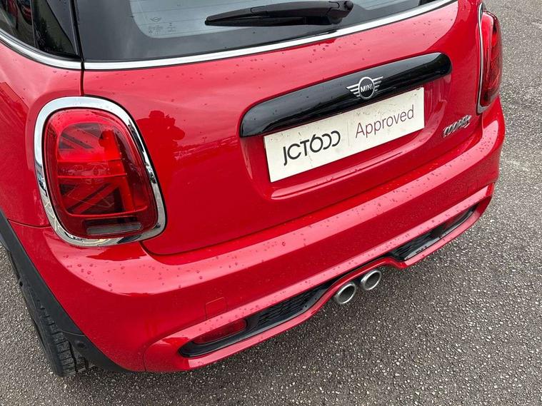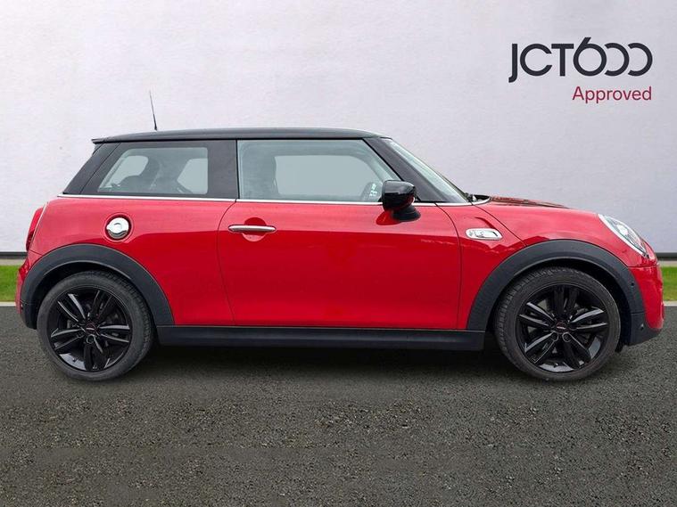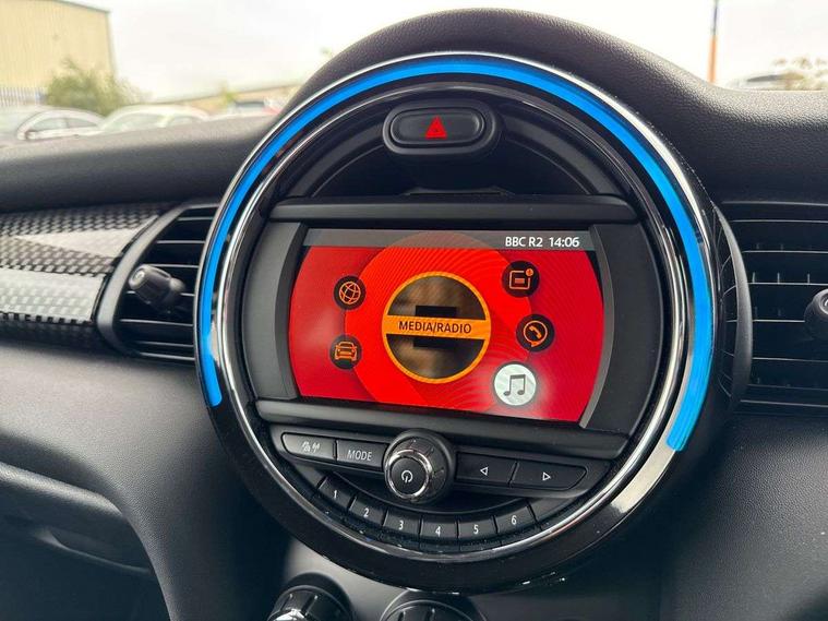 Automatic start/stop function with brake energy recuperation, Compatible mobile phone bluetooth with audio streaming, Electro-mechanical speed dependant steering assistance, Instrument cluster, MINI Driving Modes - centre toggle switch to control driving setting (sport, mid and green), Mini E-call, MINI TeleServices, On board computer, Service interval indicator, Double Vanos system, Fully variable valve control, Gear change indicator display, High precision injection, Performance Control, Steptronic transmission with double clutch, 6.5" touchscreen with LED ring, FM tuner and DAB digital radio, Automatic headlight activation switch, Bonnet scoop, Chrome border honeycomb structure radiator grille with S badge, Chrome plated fuel cap, Dynamic brake lights, Electric front+rear windows, Heated rear window, Heated windscreen washer jets, LED headlight with closed ring and daytime driving lights, Metal door sill strips with Cooper S imprint, Model logo Cooper S on right of tailgate, Rain sensor window wipers, Rear fog lights, Rear LED lights with union jack design, Rear window wiper, Side scuttle panel with integrated indicator, Sun/heat protection glass, Two central exhaust tailpipes with chrome finisher, White indicator lenses, 12V Accessory socket in centre console, 4 lashing eyes in luggage compartment, 60/40 split folding rear seat, Carbon Black colour line, knee roll and door armrests, Chrome interior highlights, Colour line - Carbon black, Cupholders, Front and rear head restraints, Front and rear isofix with front passenger airbag deactivation, Glove compartment, Height and length steering column adjustment, Interior lighting with 12 basic colours selectable via toggle switch in roof, Leather gearshift lever and handbrake gaiters, LED reading lights, vanity mirror lights, front foot well light and spotlight on front seats, Manual air conditioning, Mechanical seat adjustment, driver seat height adjust, forward/back and front seats backrest, Mini logo projection on floor from drivers exterior mirror, Multifunction steering wheel, Satellite grey headlining, Storage compartments in doors, Storage pocket on back of front seats, Sunvisors with vanity mirrors, 3 point seatbelts on all four seats, 6 Airbags - front, side, head and seat belt tensioners, Anti-lock braking system (ABS), DSC - Dynamic Stability Control, Front and rear disc brakes, Hill start assist, Two tone horn, Tyre pressure monitoring system, Alarm system with tilt sensor, monitoring doors, bonnet interior and tailgate, Electronic vehicle immobiliser, Start/stop toggle with keyless go, Tool kit, Tyre repair kit,